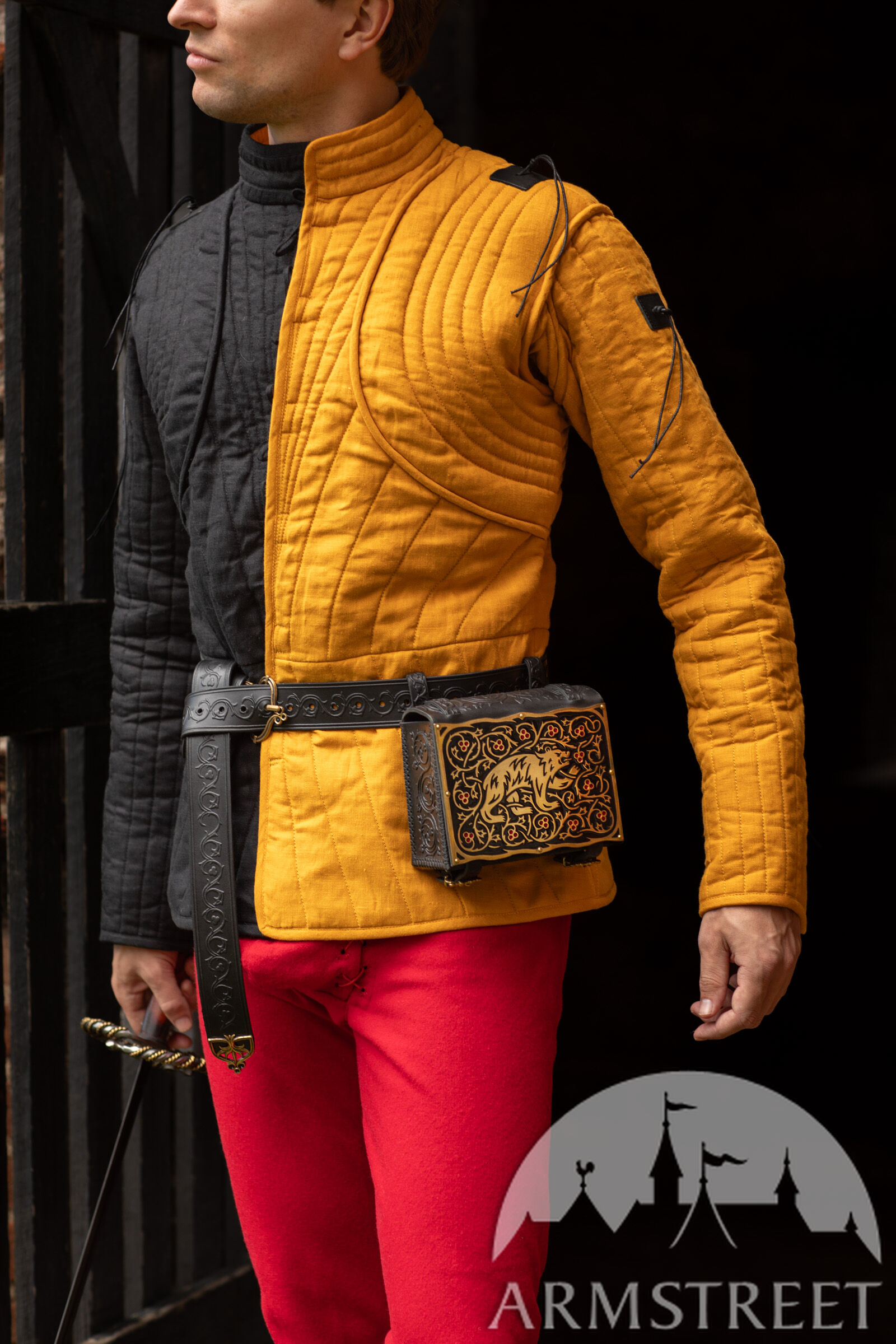 Ein ausgewogener mittelalterlicher Look ohne Tasche oder Beutel ist kaum vorstellbar. In der Zeit der Kleidung ohne Taschen spielten sie im Alltag eine zentrale Rolle, unabhängig von sozialer Schicht oder Beruf. In dieser geräumigen Tasche können Sie alles Wichtige stilvoll transportieren! Dank der rechteckigen Form mit Zwickel finden die meisten Handys, Schlüssel und ein kleines Portemonnaie bequem Platz.