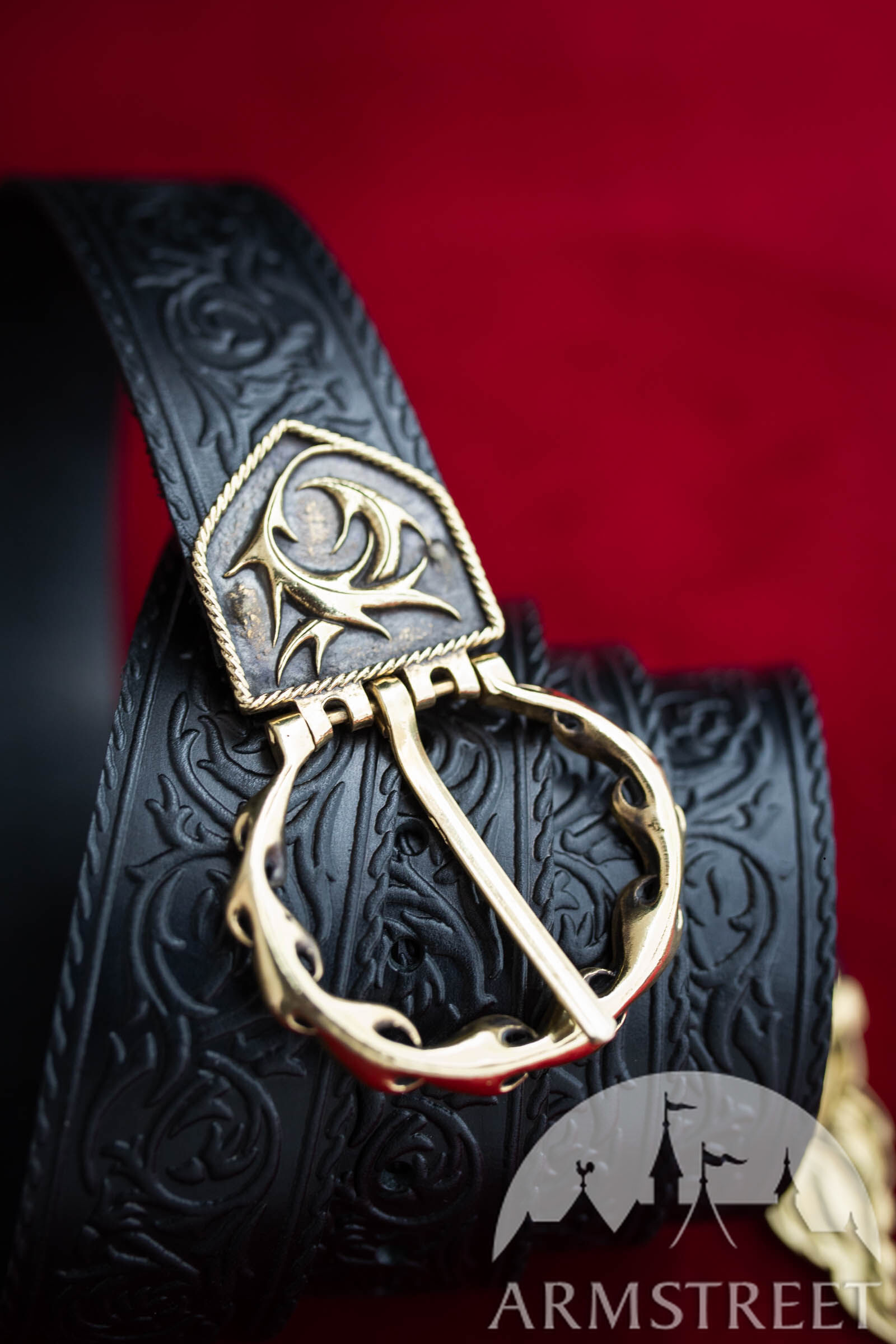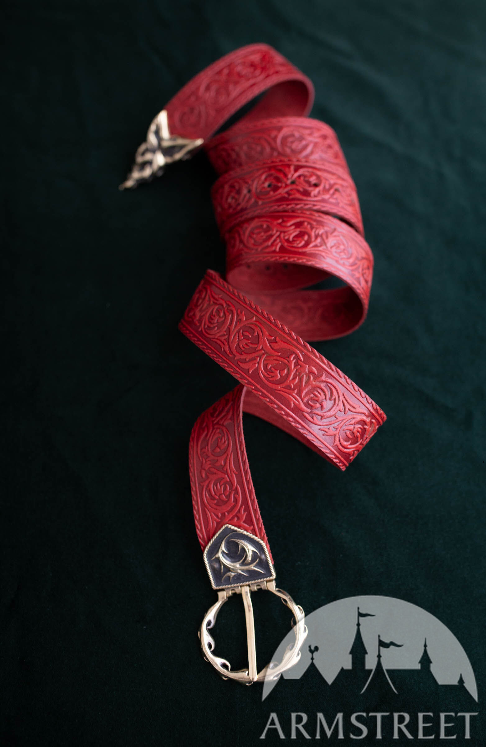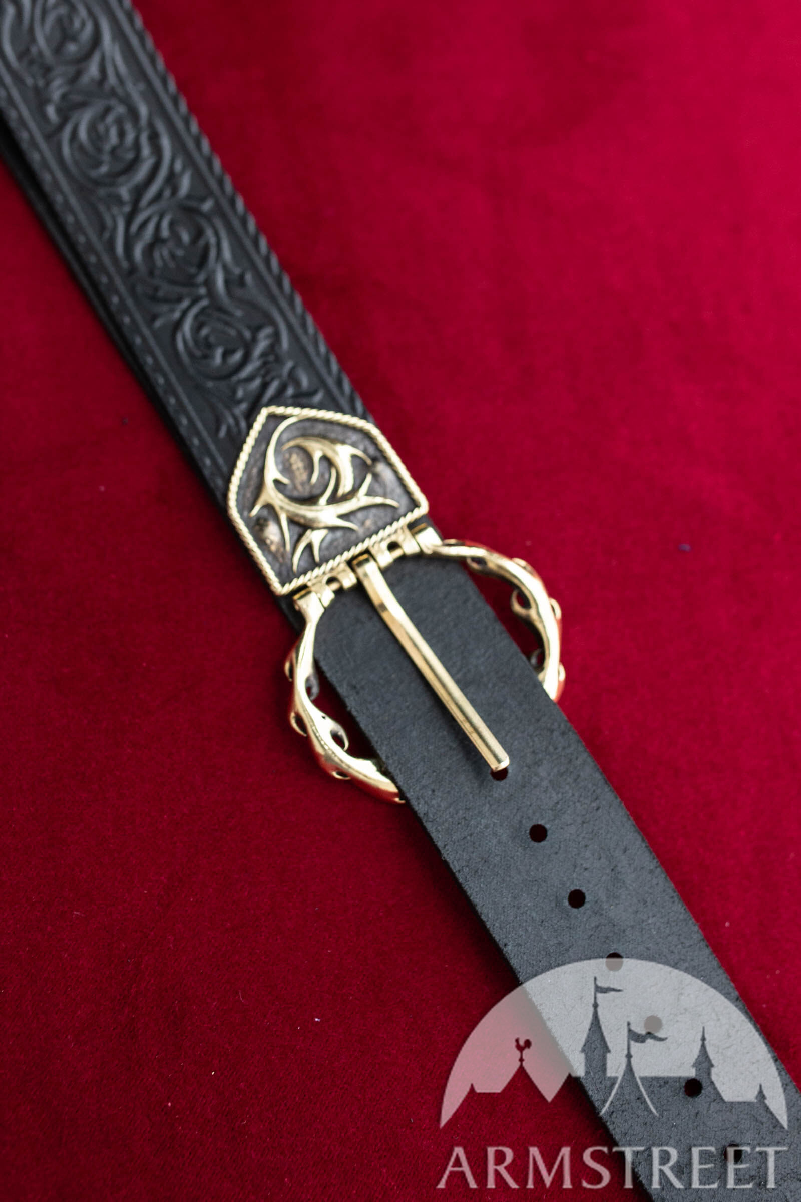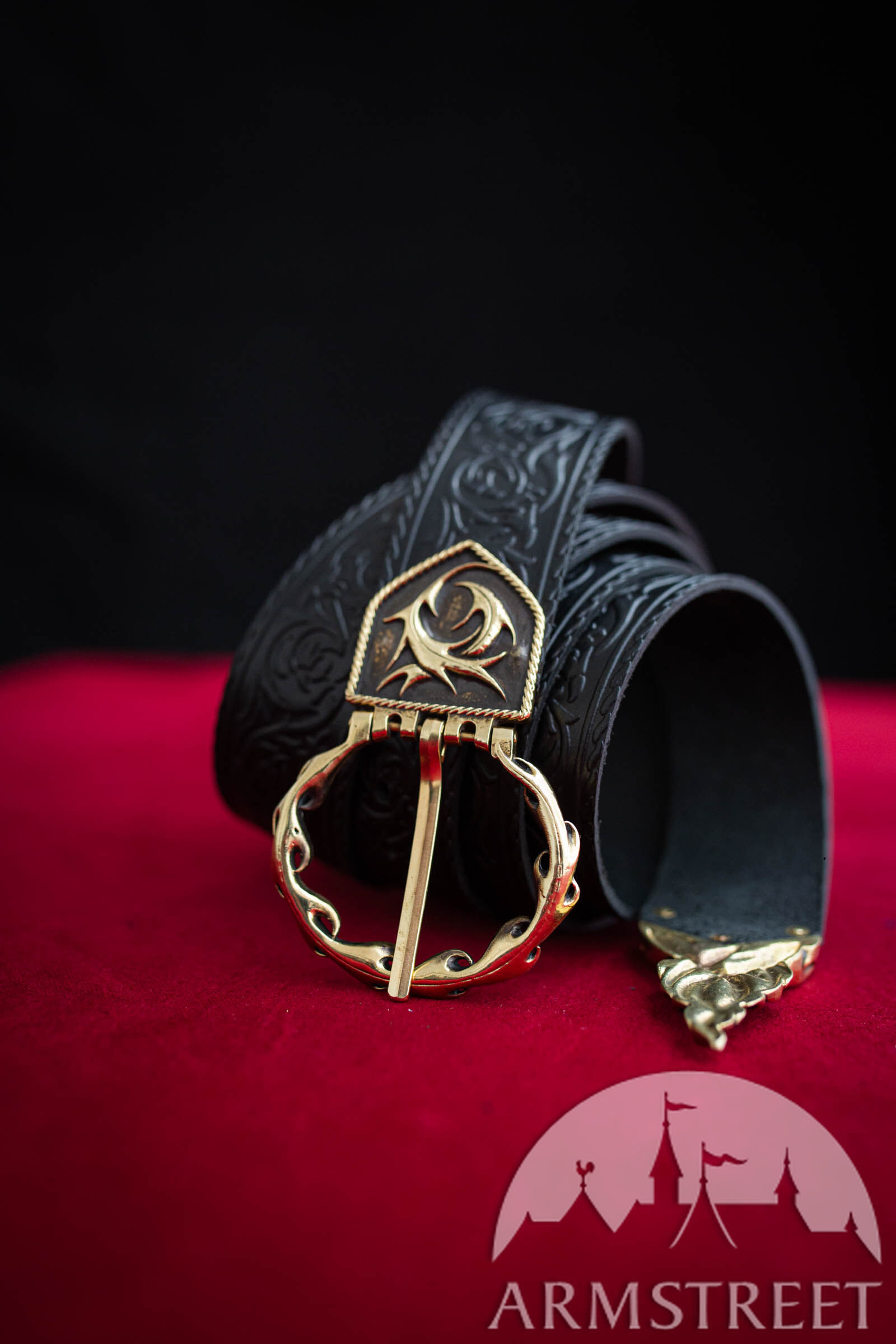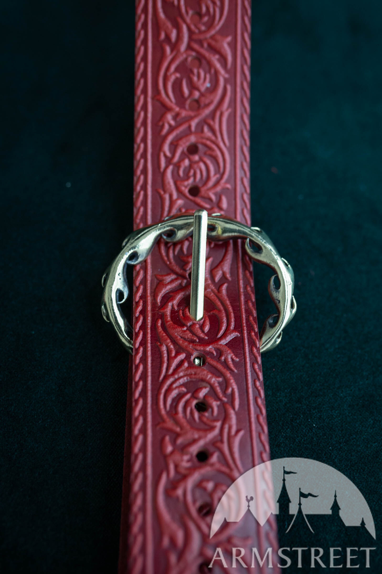 Das Schönste an diesem Gürtel sind die Details aus Messingguss. Das Gürtelende und die Schnalle sind passend zur geprägten Kunst gefertigt und absolut atemberaubend. Sie sind ziemlich schwer und perfekt für diese Art von Accessoire. Von Anfang bis Ende wurde jeder Aspekt dieses Gürtels von ArmStreet-Handwerkern entworfen und gefertigt, sodass Sie wissen, dass Sie ein mit Sorgfalt hergestelltes Produkt von höchster Qualität erhalten.