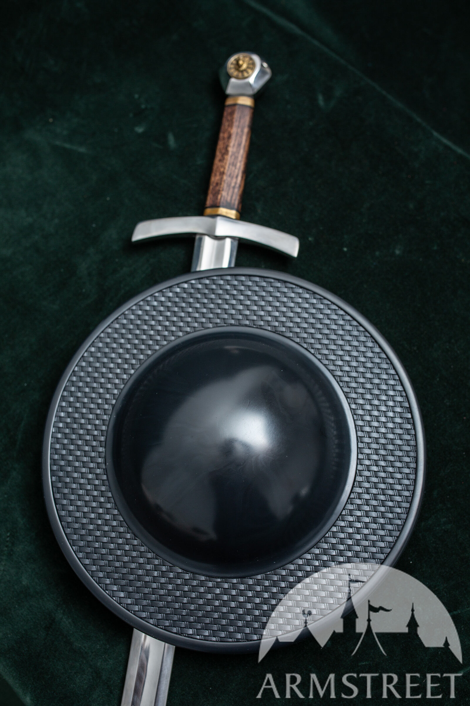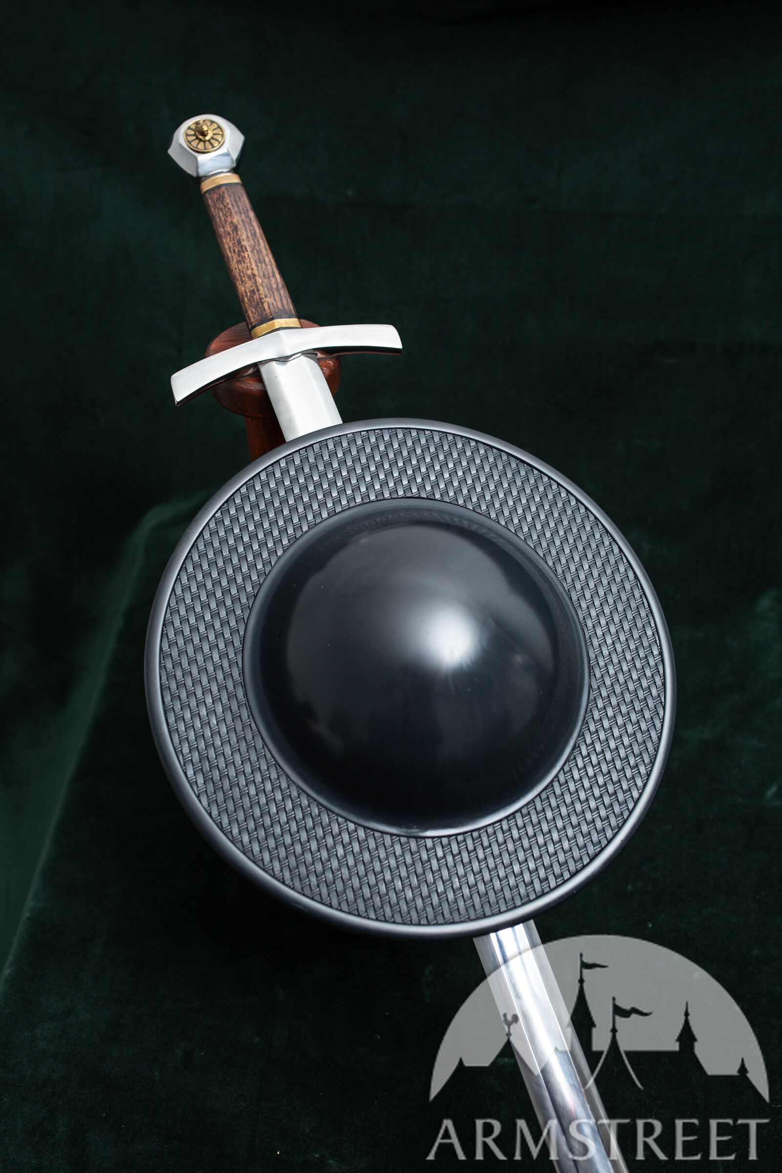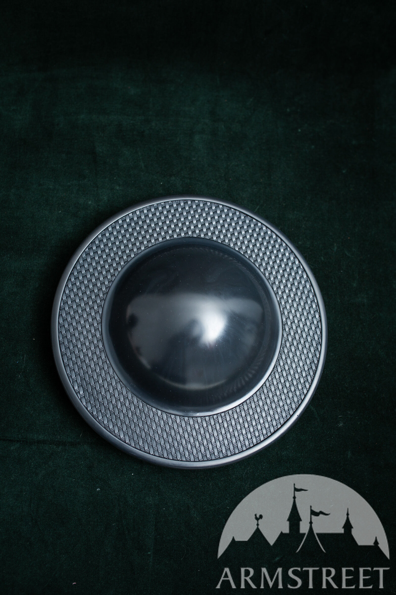 Dies ist ein Schild in Standardgröße (31 cm) mit einem großen Schildbuckel, der für praktisch jeden HEMA-Handschuh geeignet ist. Er ist leicht und besteht aus faserverstärktem Kunststoff.
