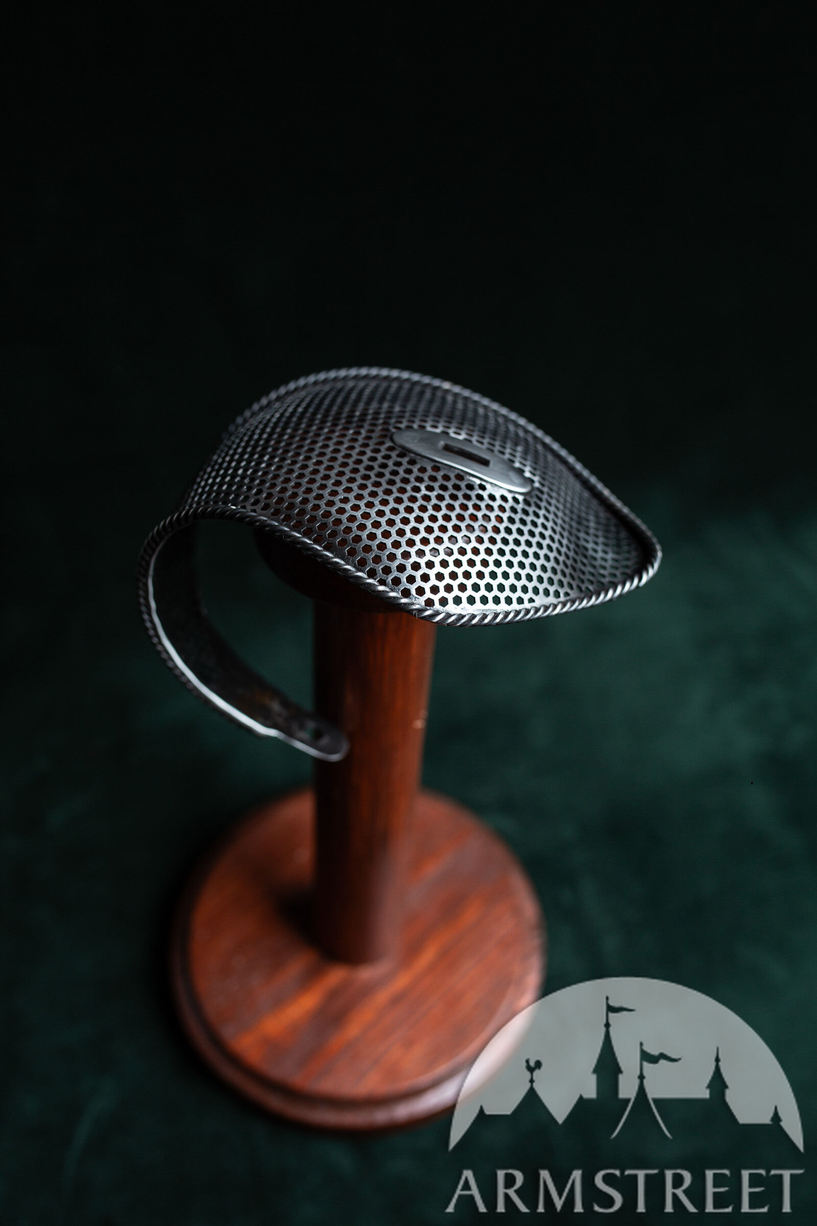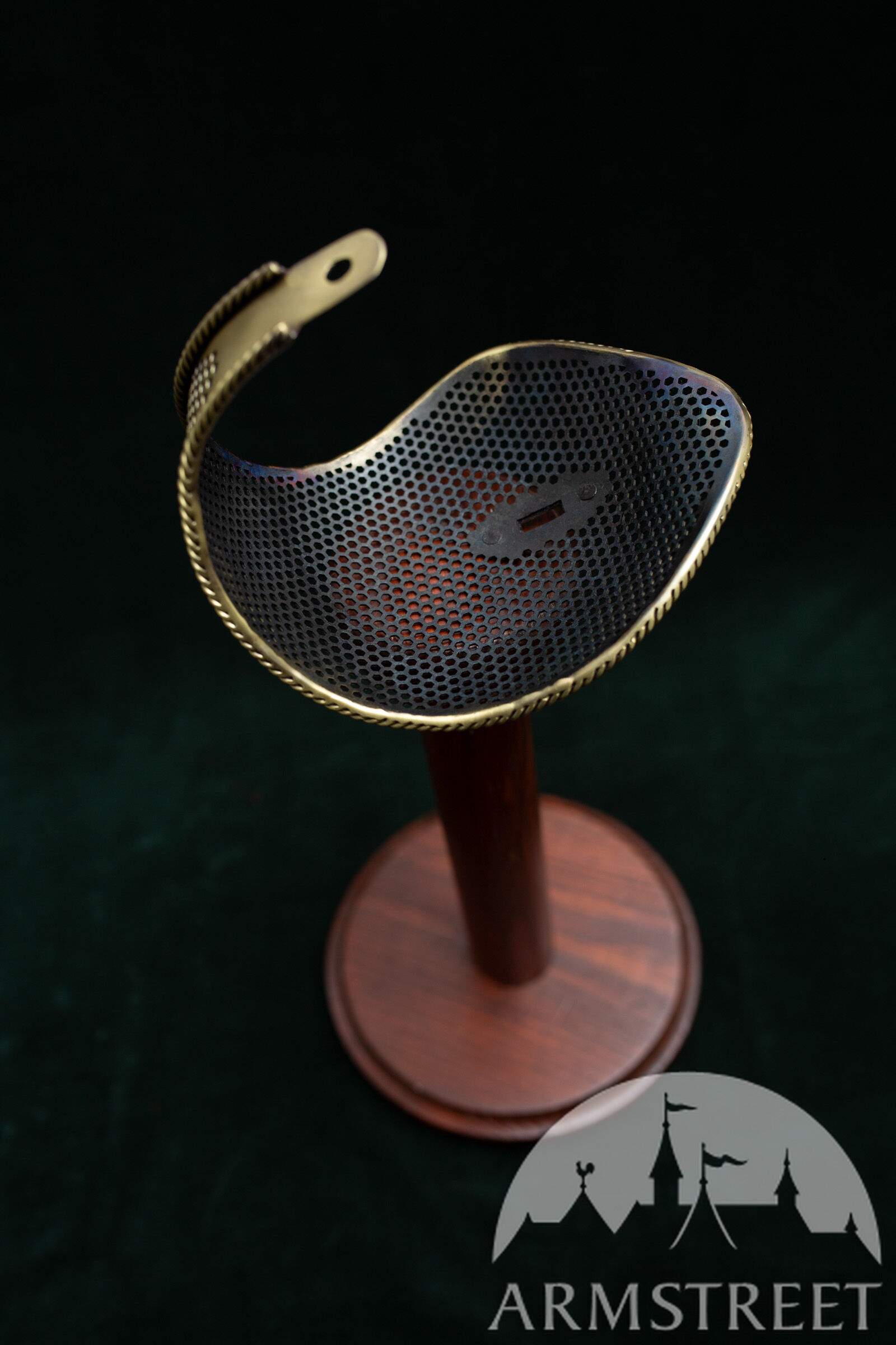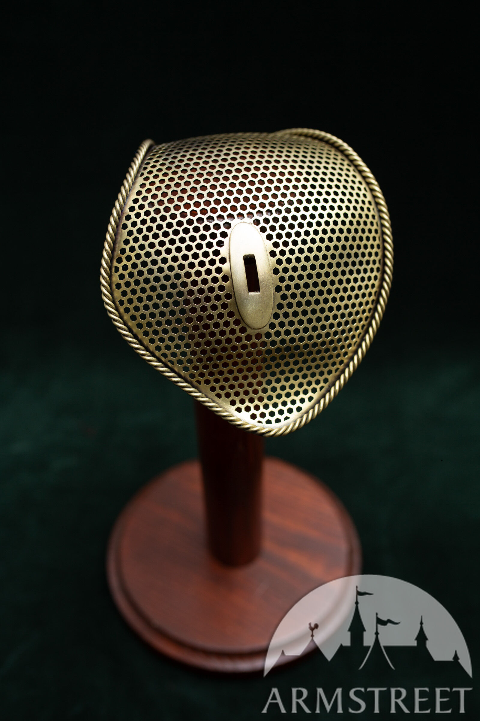 Dieser elegante Schutz liegt genau zwischen unserem „Massiven Sparring-Schutz“ und dem leichten perforierten Schutz. Er vereint somit die Vorteile beider Varianten: Er ist 30–40 g leichter als der massive Schutz und gleichzeitig deutlich robuster als der perforierte Hochleistungs-Schutz ohne Einfassung. Zudem besticht er durch sein sportliches Design mit perforiertem, gehärtetem Stahlkorpus und der Seilkanteneinfassung, die an die Zeit des gepanzerten Kampfes und frühe Experimente mit kunstvollen Säbelschutzvorrichtungen erinnert.