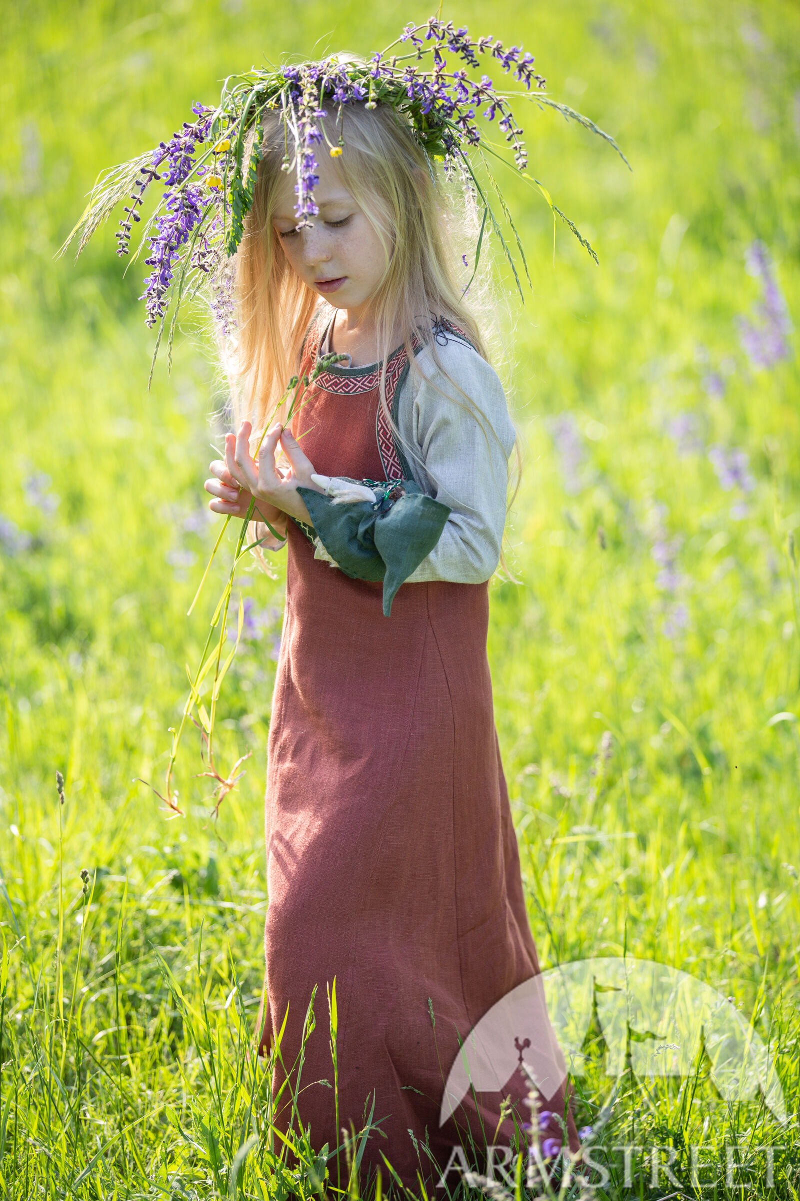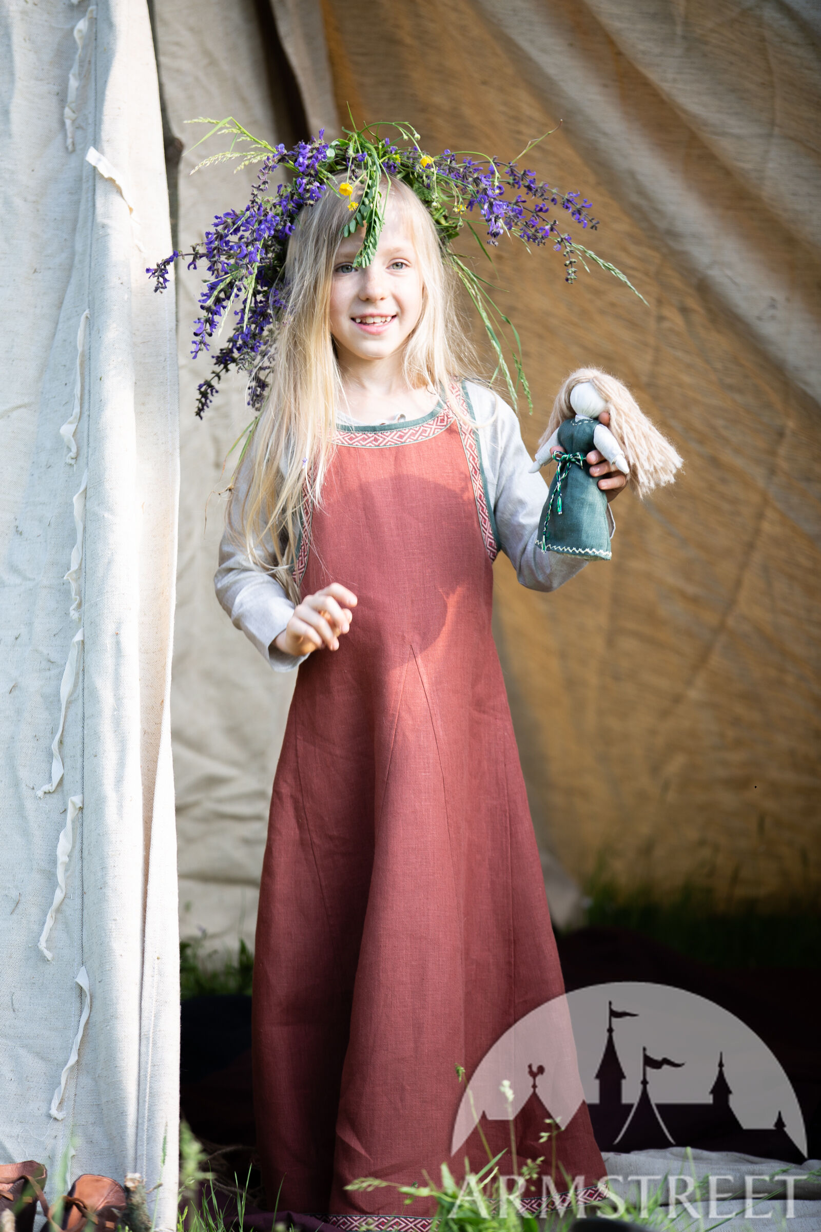 Wir haben viel Wert auf Details gelegt, um unsere Gewänder für Kinder bequem zu machen, aber Sie müssen sich dennoch daran erinnern, dass traditionelle antike Kleidung etwas anderes ist und sich am Anfang seltsam anfühlen kann. Wir haben diese Gewänder an unseren eigenen Kindern getestet und sie haben sie gerne den ganzen Tag getragen, nachdem sie sich daran gewöhnt hatten. Für diese spezielle Tunika haben wir eine Schnürung an der Schulter (eine oder beide – je nach Größe) hinzugefügt, um einem Kind das An- und Ausziehen zu erleichtern.