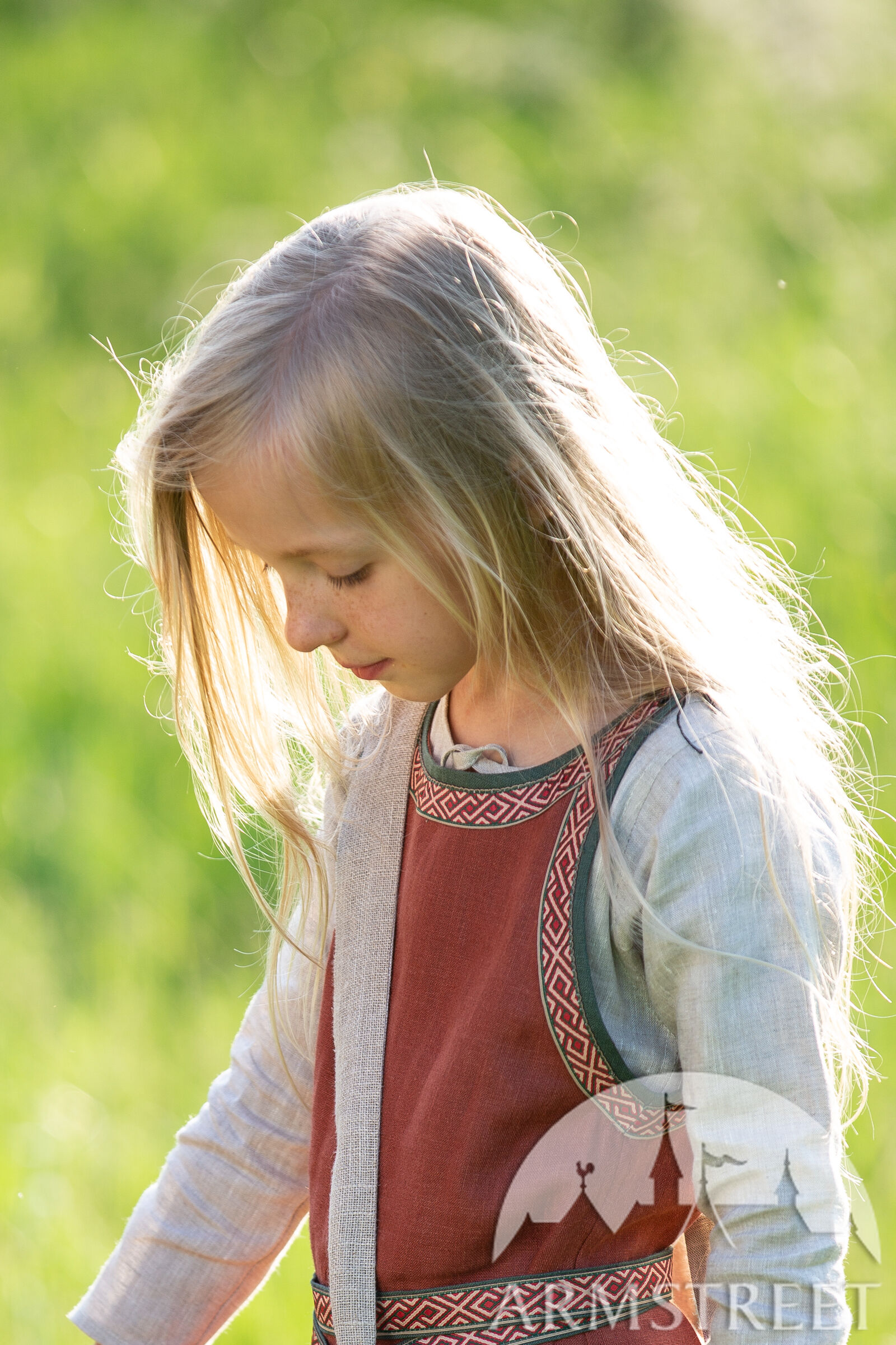 Die Borte, die Sie auf den Artikeln der gesamten Kollektion sehen können, imitiert das traditionelle Brettchenweben und funktioniert für traditionelle mittelalterliche Charaktere vom europäischen mittelalterlichen Stil des XI.-XII. Jhdt. Es ist auch sehr vielseitig, was den Status des Charakters angeht, und deckt die gesamte Bandbreite von wohlhabenden Bauern und Kleinstadtbewohnern bis hin zu noblen Persönlichkeiten ab, die inkognito reisen. Und natürlich passt es perfekt zur restlichen Kleidung für Kinder und Erwachsene aus der Kollektion „Mittelalter Familie”, egal ob es sich um eine echte Familie oder eine mittelalterliche Band handelt, die durch eine gemeinsame Sache vereint ist.