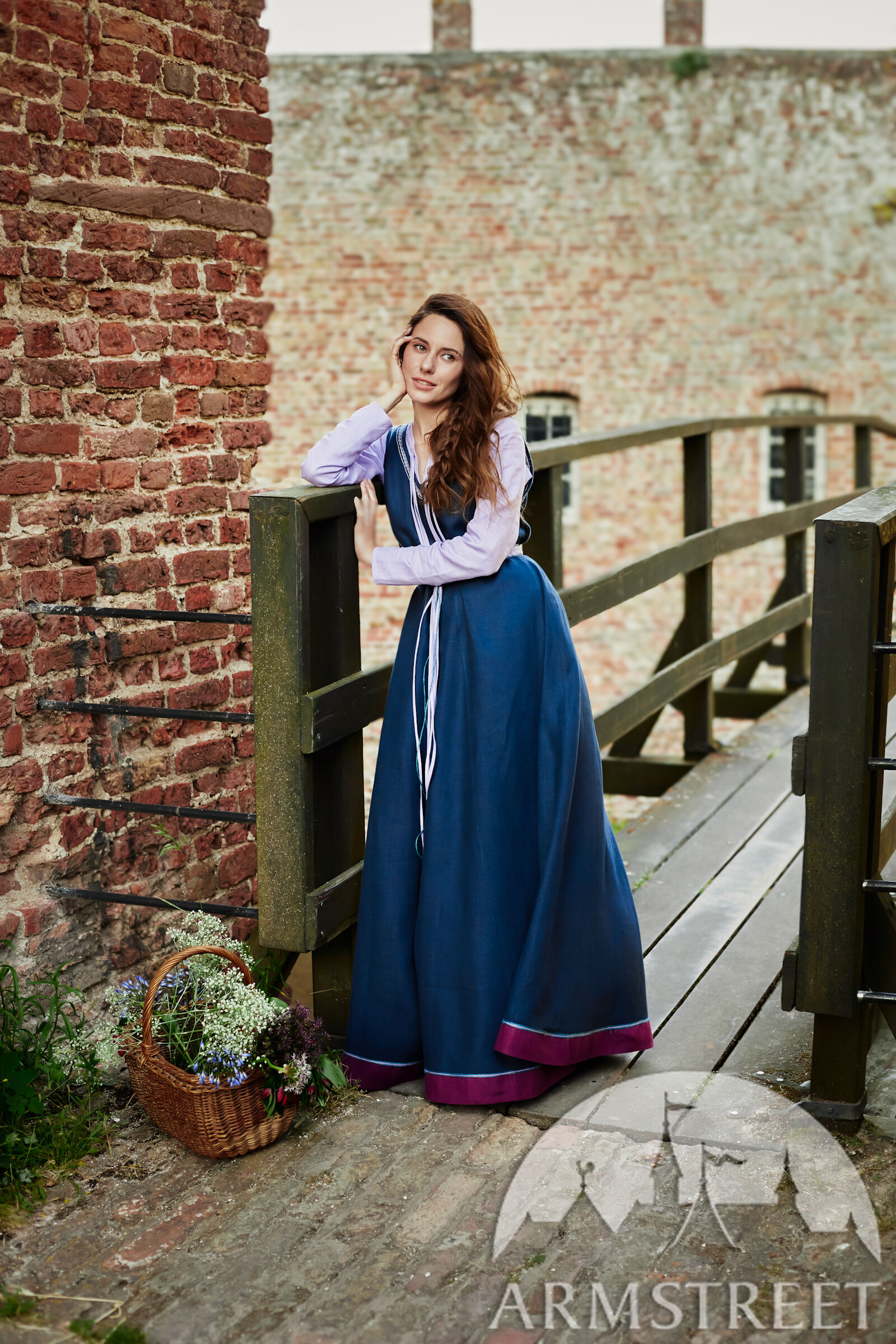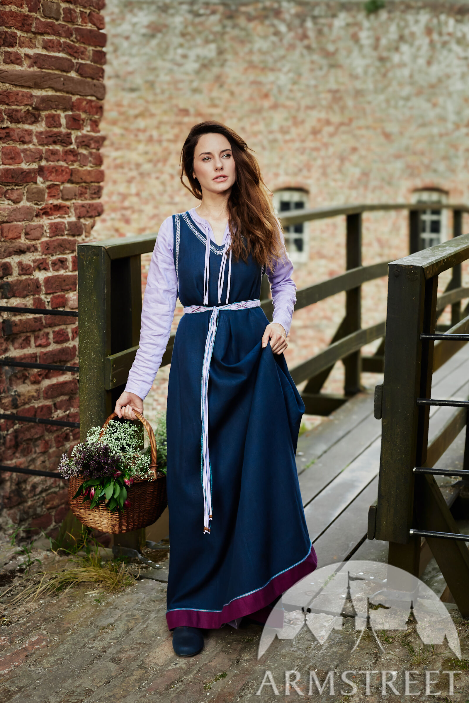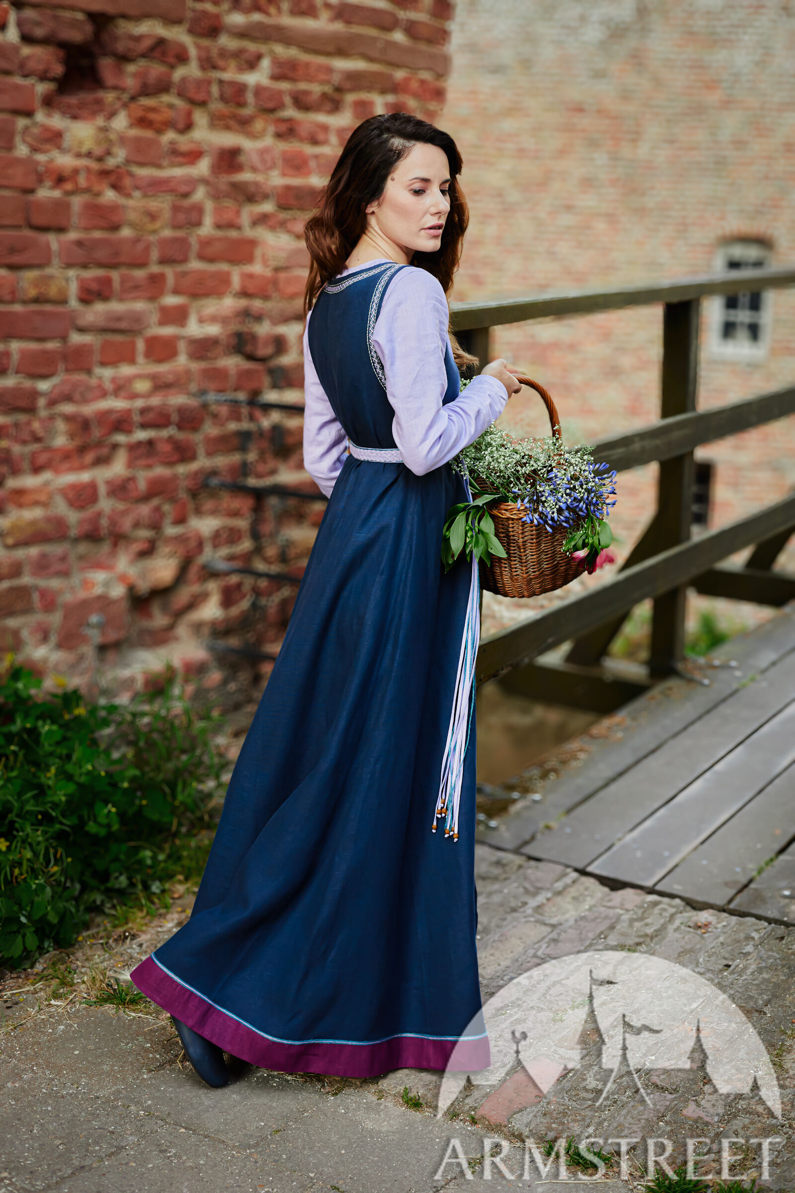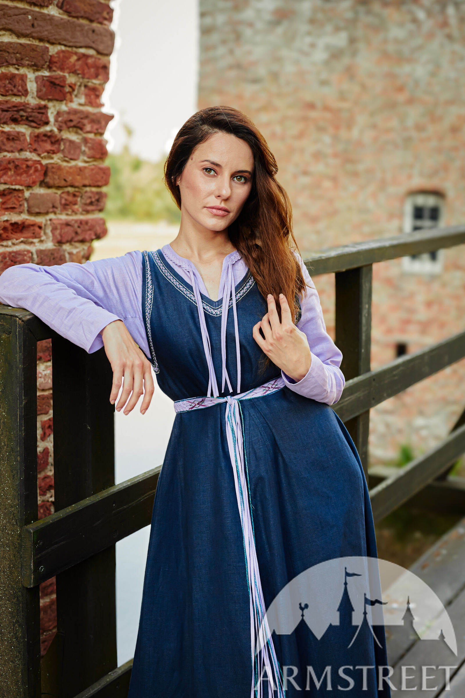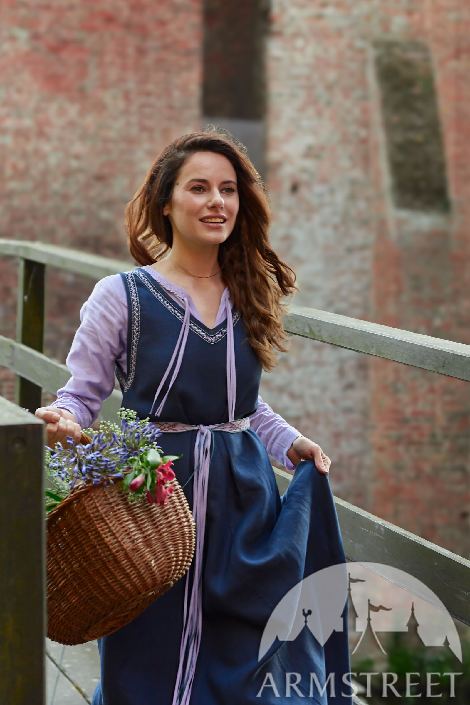 100 % Leinen, das wir für dieses wunderschöne Überkleid im mittelalterlichen Stil verwendet haben, ist weich, atmungsaktiv und hält dem Test der Zeit stand, egal in welchem Klima Sie es tragen werden. Ziehen Sie dieses ärmellose Kleid über das Hemdchen und die Tunika und fühlen Sie sich selbst in feuchten und kühlen Nächten im frühen Herbst wohl. Oder tragen Sie es an heißen Sommertagen über dem feinen Leinenhemdchen und bleiben Sie kühl, während Sie trotzdem perfekt zeitgemäß aussehen. Das charakteristische Merkmal mittelalterlicher Kleider von ArmStreet ist, dass wir gerne so viel Stoff verwenden, wie für die Rockbreite und Bodenlänge nötig ist, um das schlichte Muster in eine fließende Silhouette zu verwandeln.