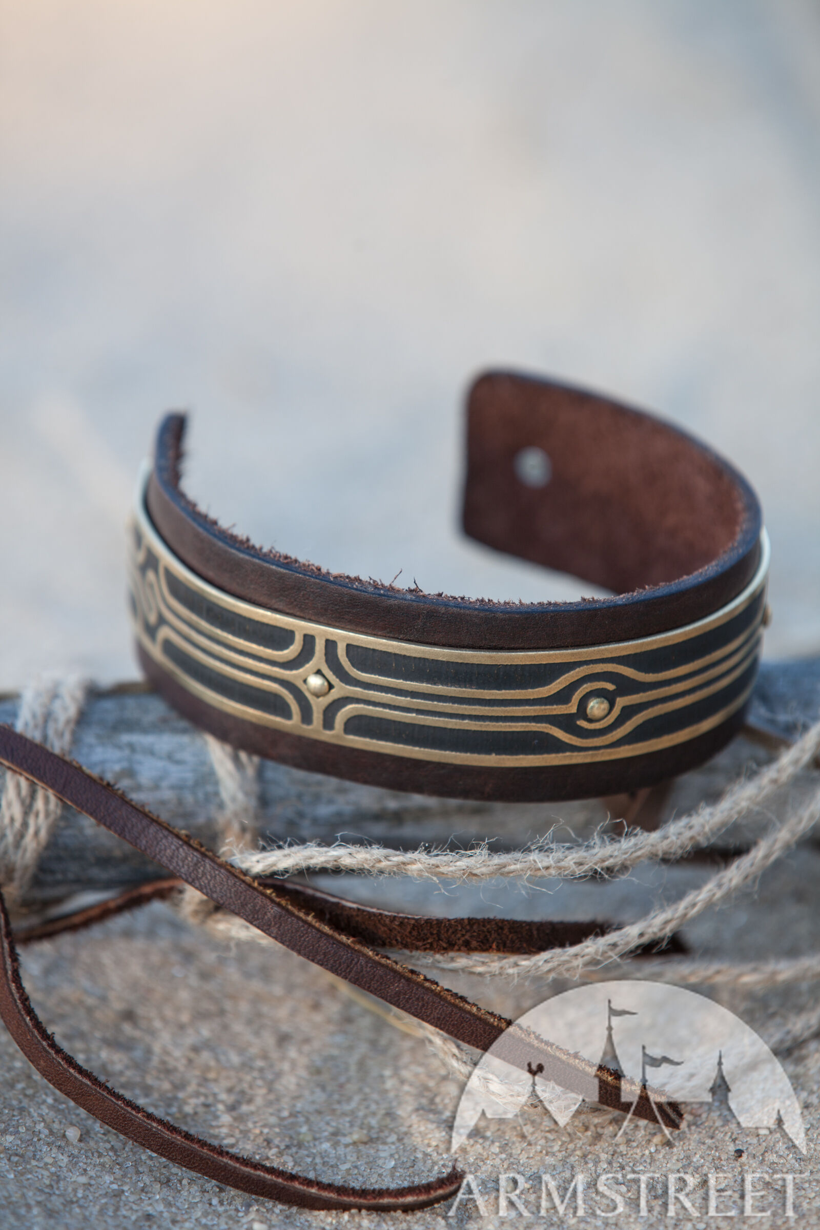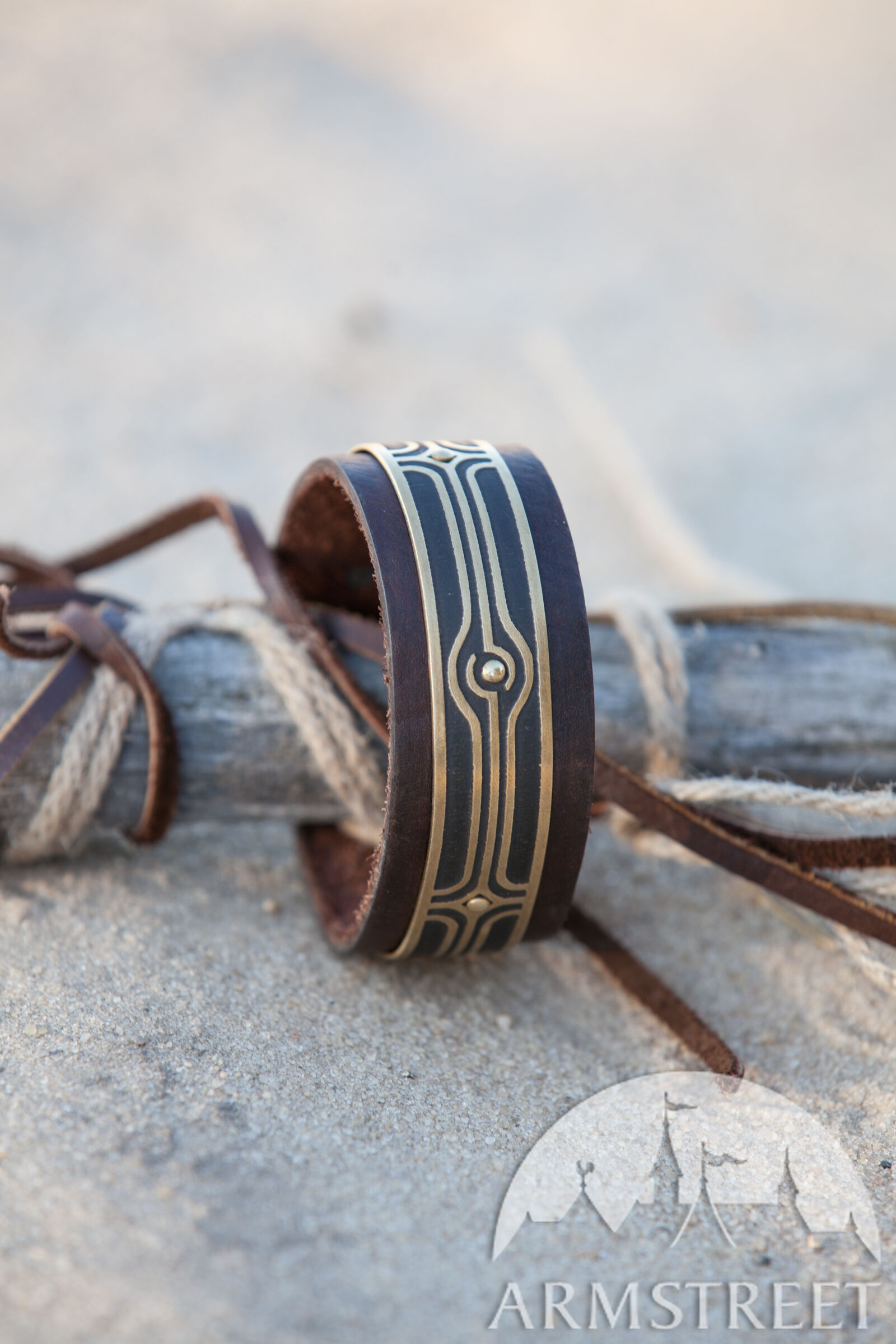 Dieses Fantasy Armband ist Teil unserer Kollektion „Das Labyrinth“ - es sieht toll aus, da es aus echtem Leder gefertigt und mit Akzenten aus Messing verziert wird. Rostfreier Stahl ist auch möglich.