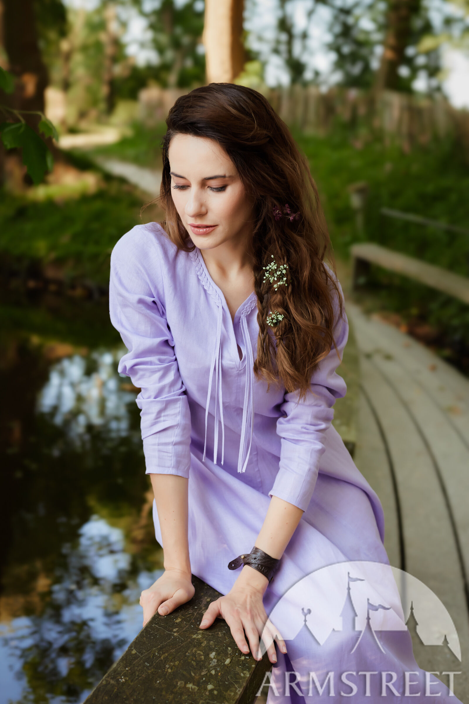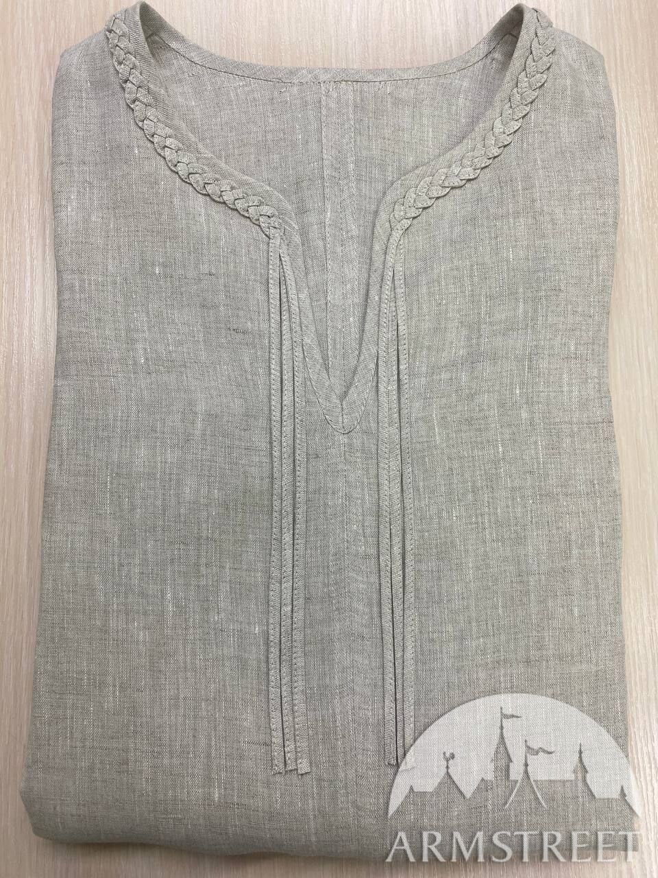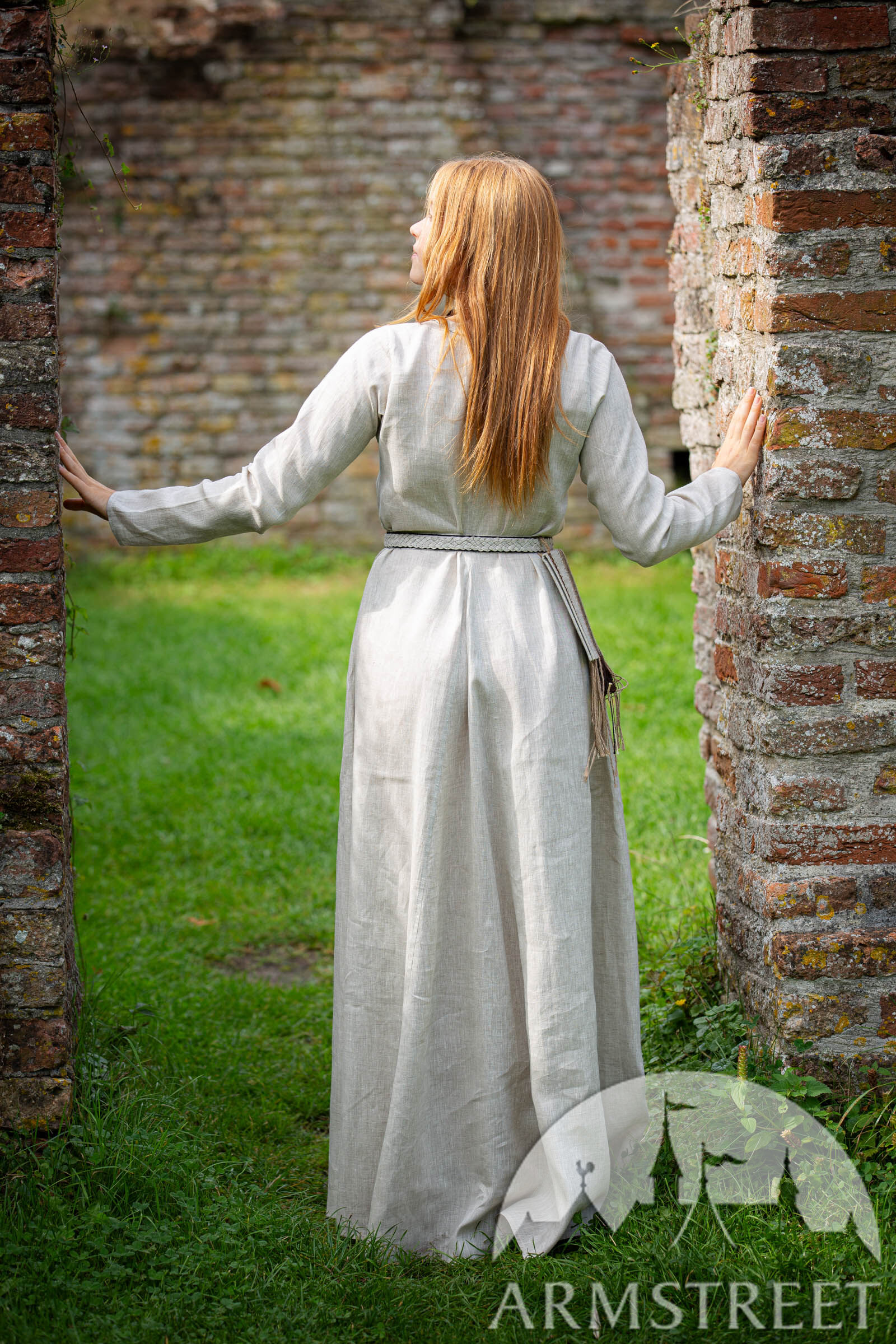 Unsere Kollektion „Mittelalter Familie“ entstand aus dem Verständnis der Nachfrage nach allgemeiner frühmittelalterlicher Kleidung. Mit Fokus auf Schlichtheit und erstklassiger Qualität haben wir ein einfaches Hemd entworfen und es mit den hübschen Zöpfen entlang des Ausschnitts verfeinert. Diese verwobenen Akzente bestehen aus feinen Flachsleinenstreifen. Das Unterkleid ist ein unglaublich vielseitiges Stück mit viel Raum für Personalisierung und Lagenkombinationen, um einen einzigartigen Look zu kreieren.