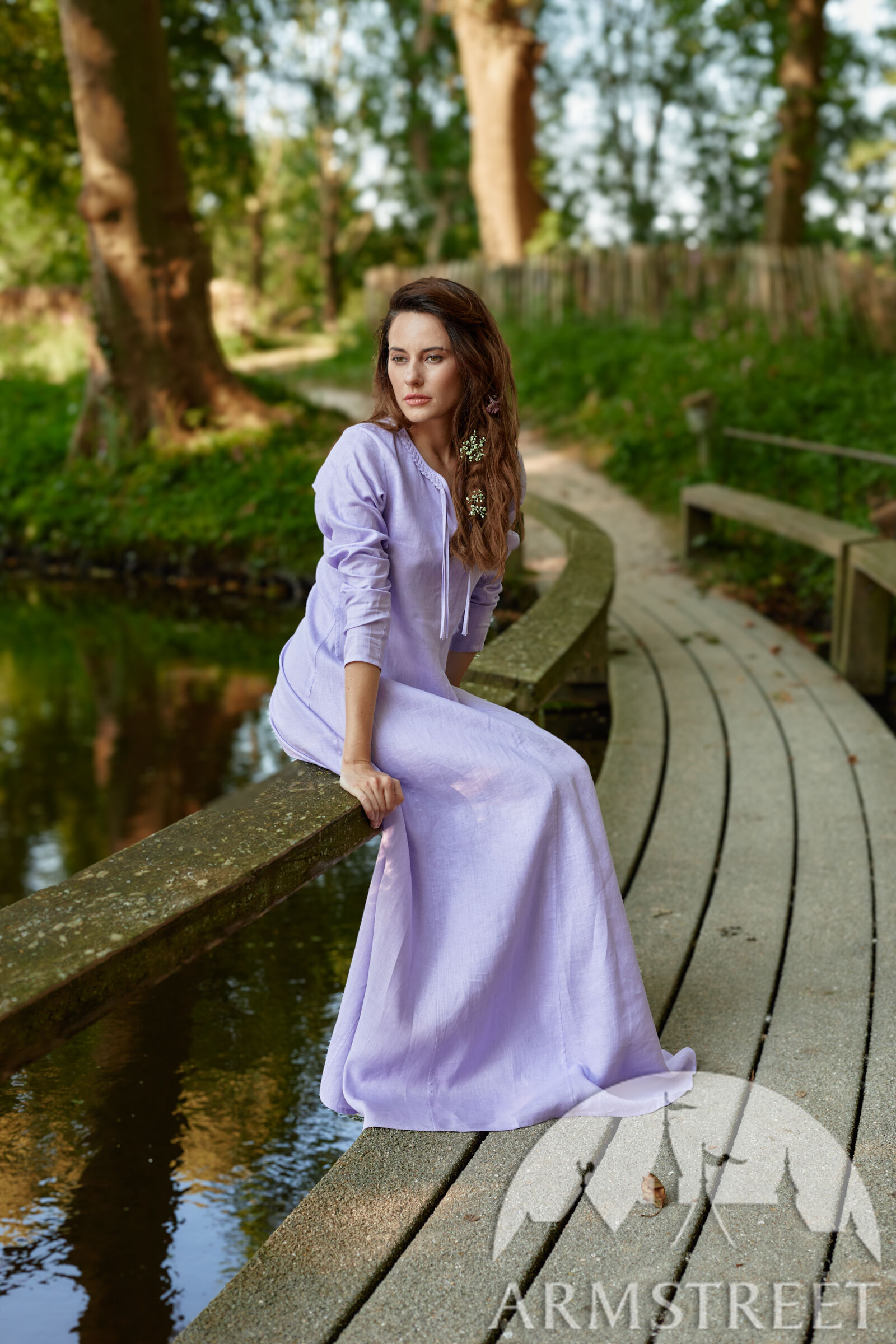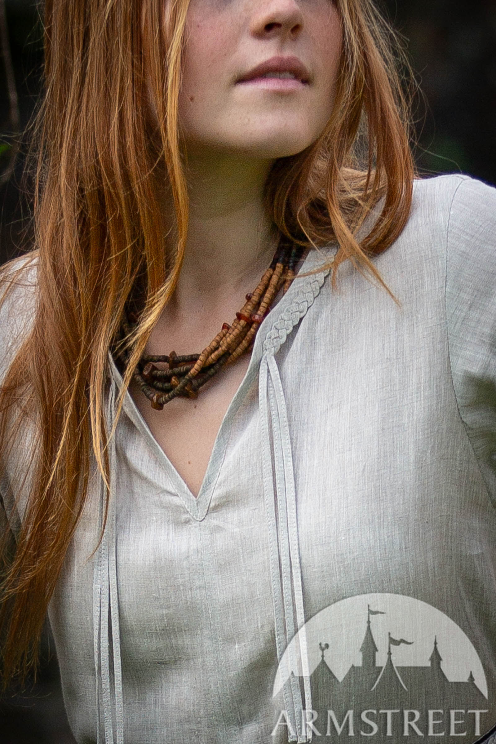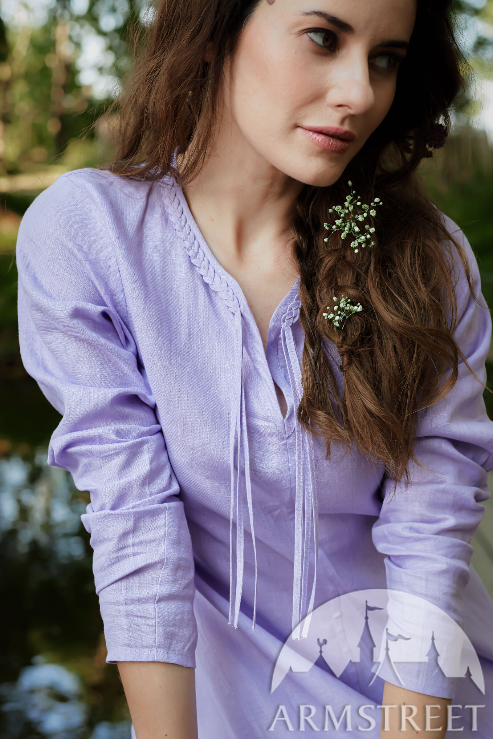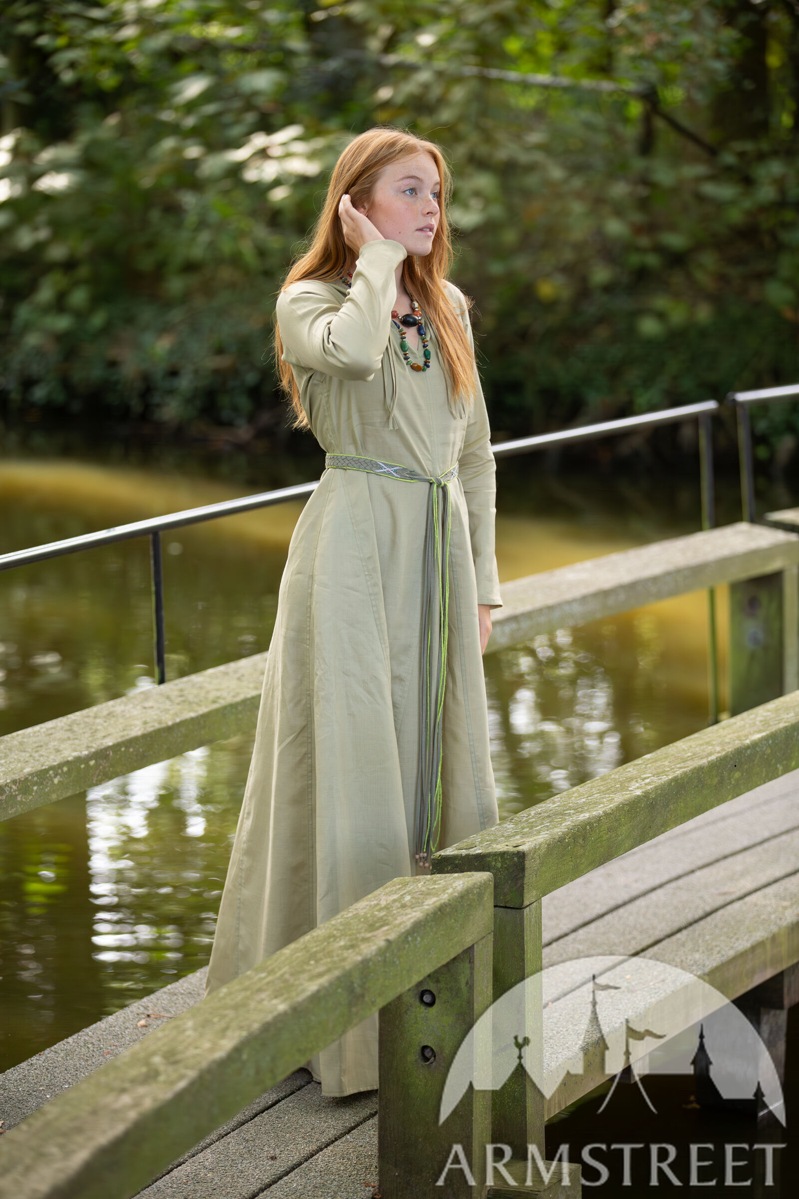 Unsere Kollektion „Mittelalter Familie“ entstand aus dem Verständnis der Nachfrage nach allgemeiner frühmittelalterlicher Kleidung. Mit Fokus auf Schlichtheit und erstklassiger Qualität haben wir ein einfaches Hemd entworfen und es mit den hübschen Zöpfen entlang des Ausschnitts verfeinert. Diese verwobenen Akzente bestehen aus feinen Flachsleinenstreifen. Das Unterkleid ist ein unglaublich vielseitiges Stück mit viel Raum für Personalisierung und Lagenkombinationen, um einen einzigartigen Look zu kreieren.