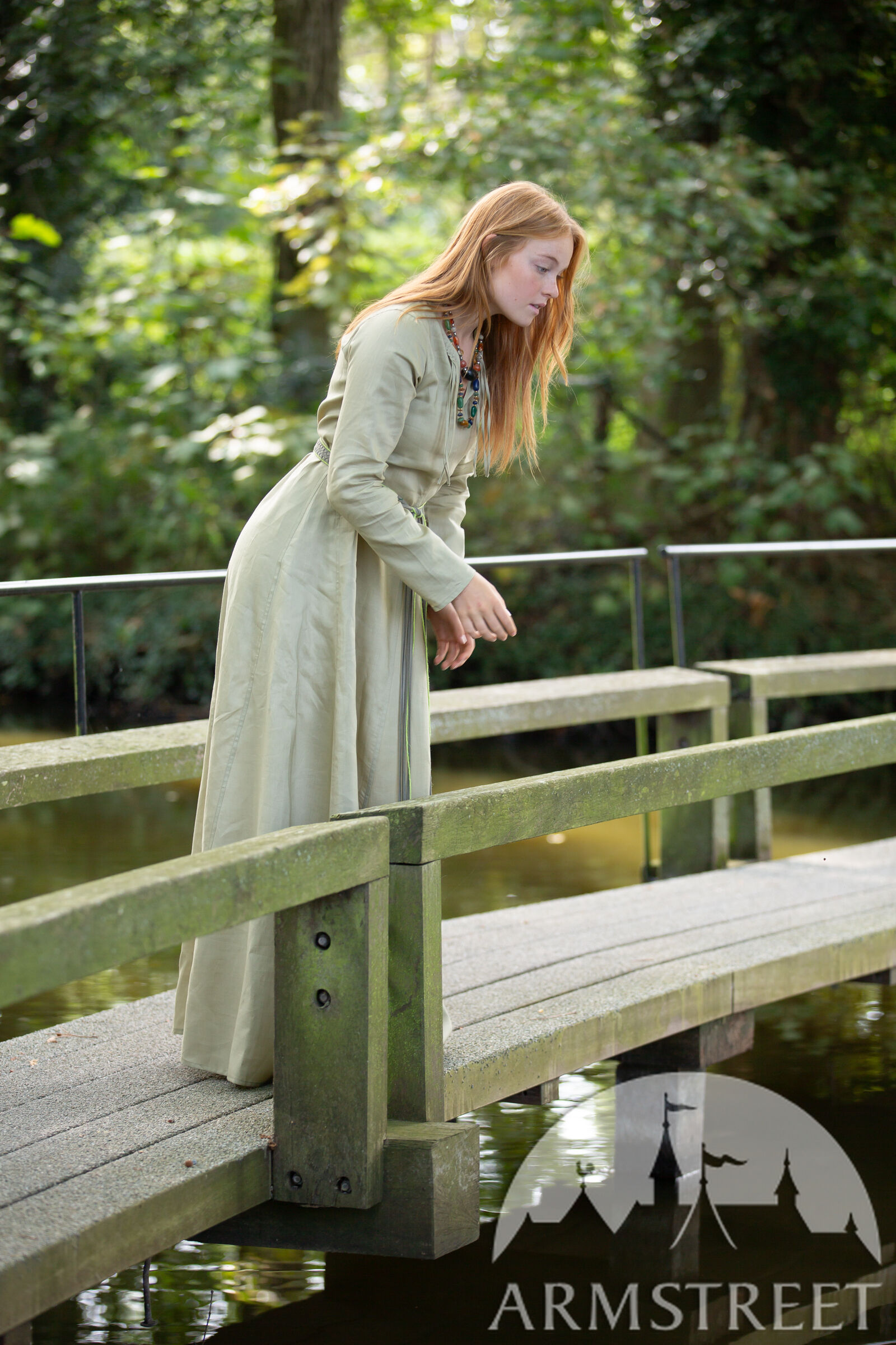 Die Untertunika ist ein wesentlicher, aber dennoch diskreter Bestandteil Ihres frühmittelalterlichen Ensembles. Es besteht aus feinem Naturleinen und dient als Grundschicht für Ihr Kostüm und erinnert an die Unterkleidung der damaligen Zeit. Ähnlich wie die anderen ArmStreet-Produkte bietet es mehr, als man auf den ersten Blick sieht, und schafft eine perfekte Balance zwischen dem anmutig weiten Rock und dem leicht enganliegenden Oberkörperbereich. Seine hochwertigen französischen Nähte und der dezente Ausschnitt machen es zur idealen Untertunika für eine Vielzahl mittelalterlicher Charaktere und erinnern auf subtile Weise an den Stil des 11. und 12. Jhdt, auf dem die gesamte Kollektion basiert.
