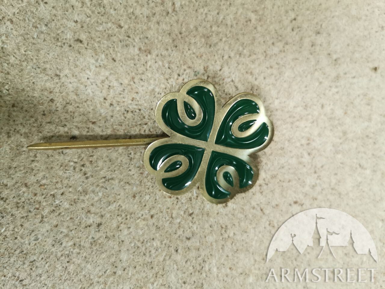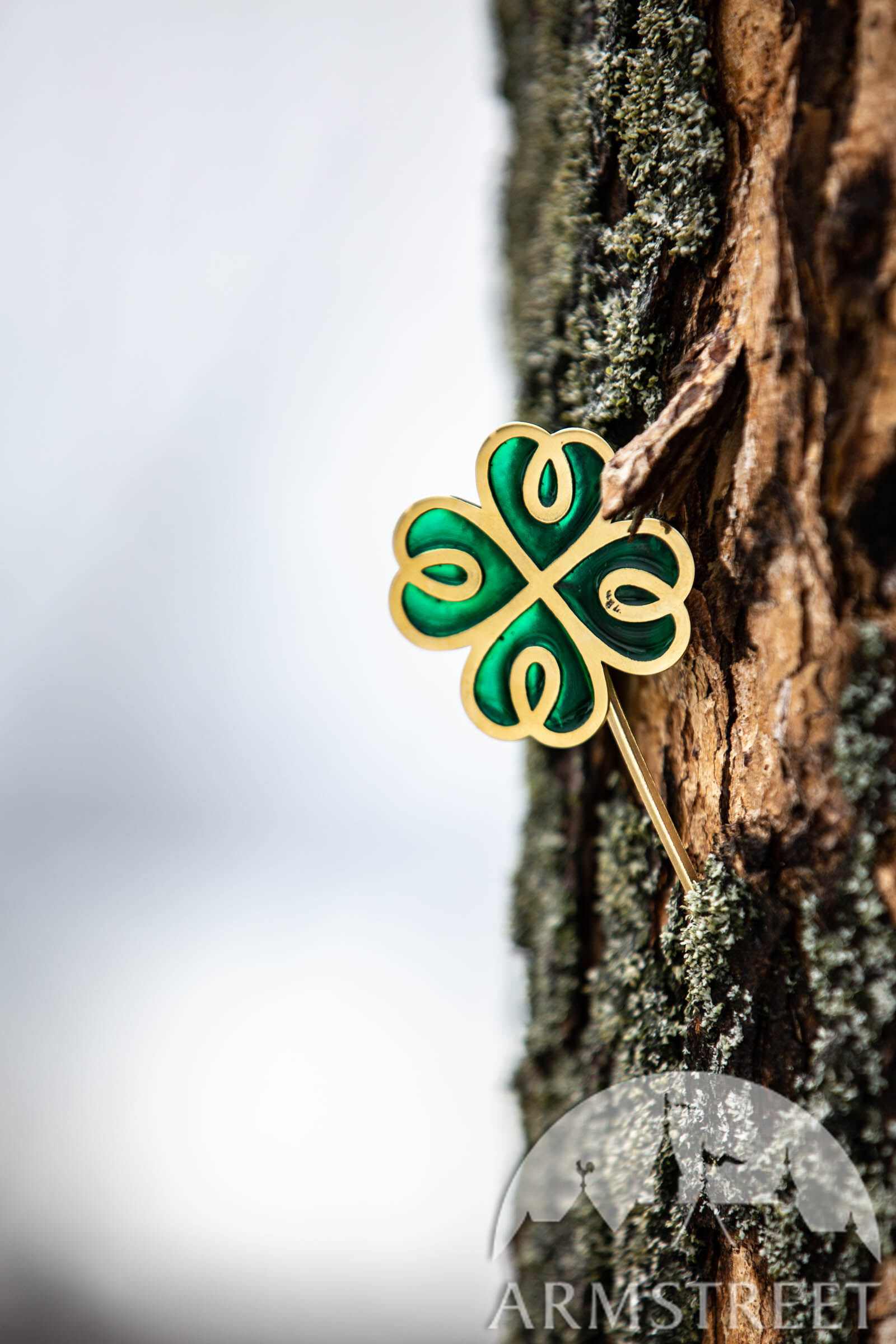 Die Form dieser Fibula erinnert an die eines Klees. Vierblättrige Kleeblätter sind seit Jahrhunderten mit Aberglauben und Glück verbunden. Sie sind viel schwieriger zu finden und wir wissen, dass sich viele Menschen erinnern werden, als Kinder nach ihnen zu suchen. Mit dieser Anstecknadel können Sie dieses Glück überallhin mitnehmen! Dieses Design ist exklusiv für ArmStreet und wurde von einem unserer Künstler nach der Erforschung der Formen und Muster in der keltischen Knotenmuster hergestellt.