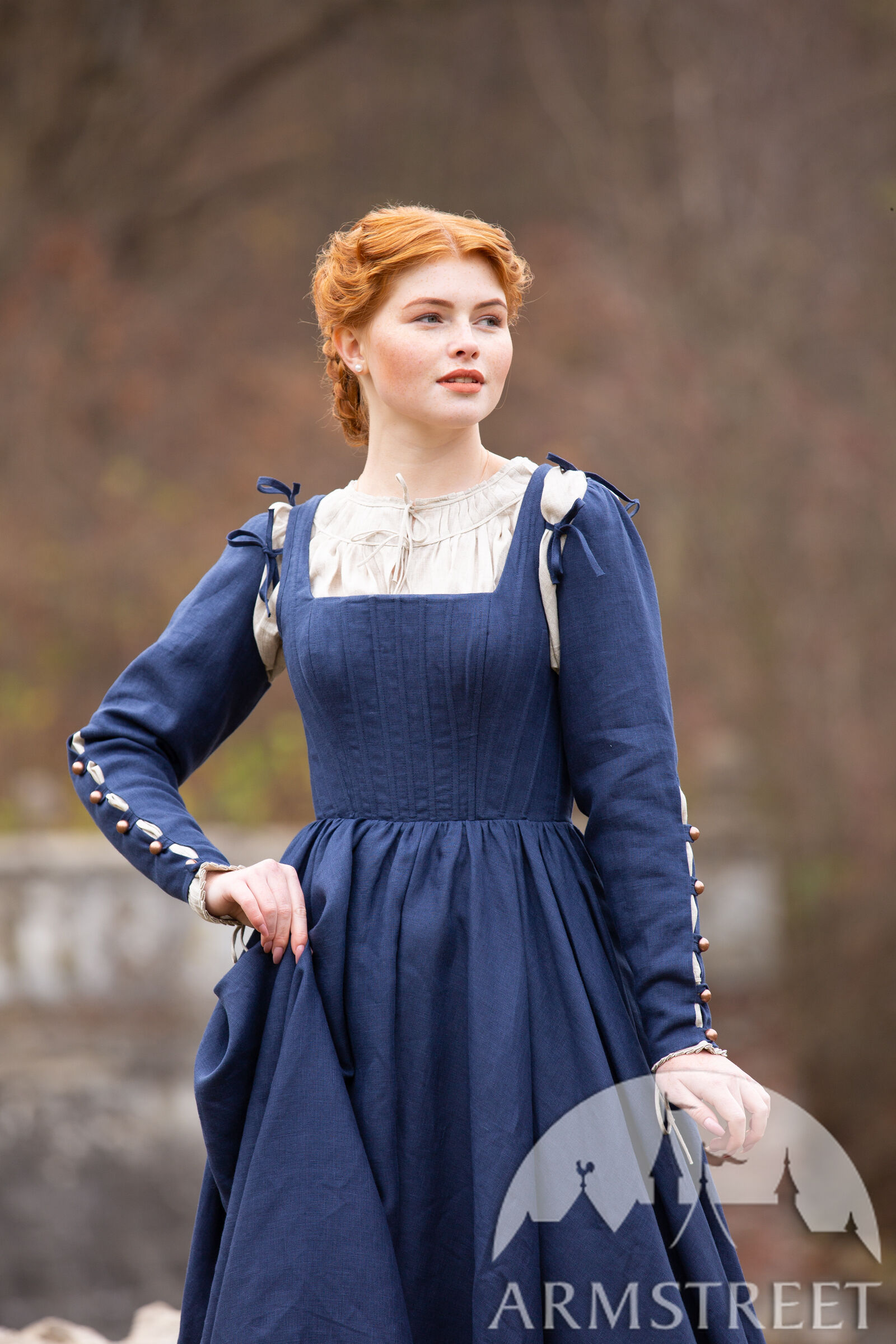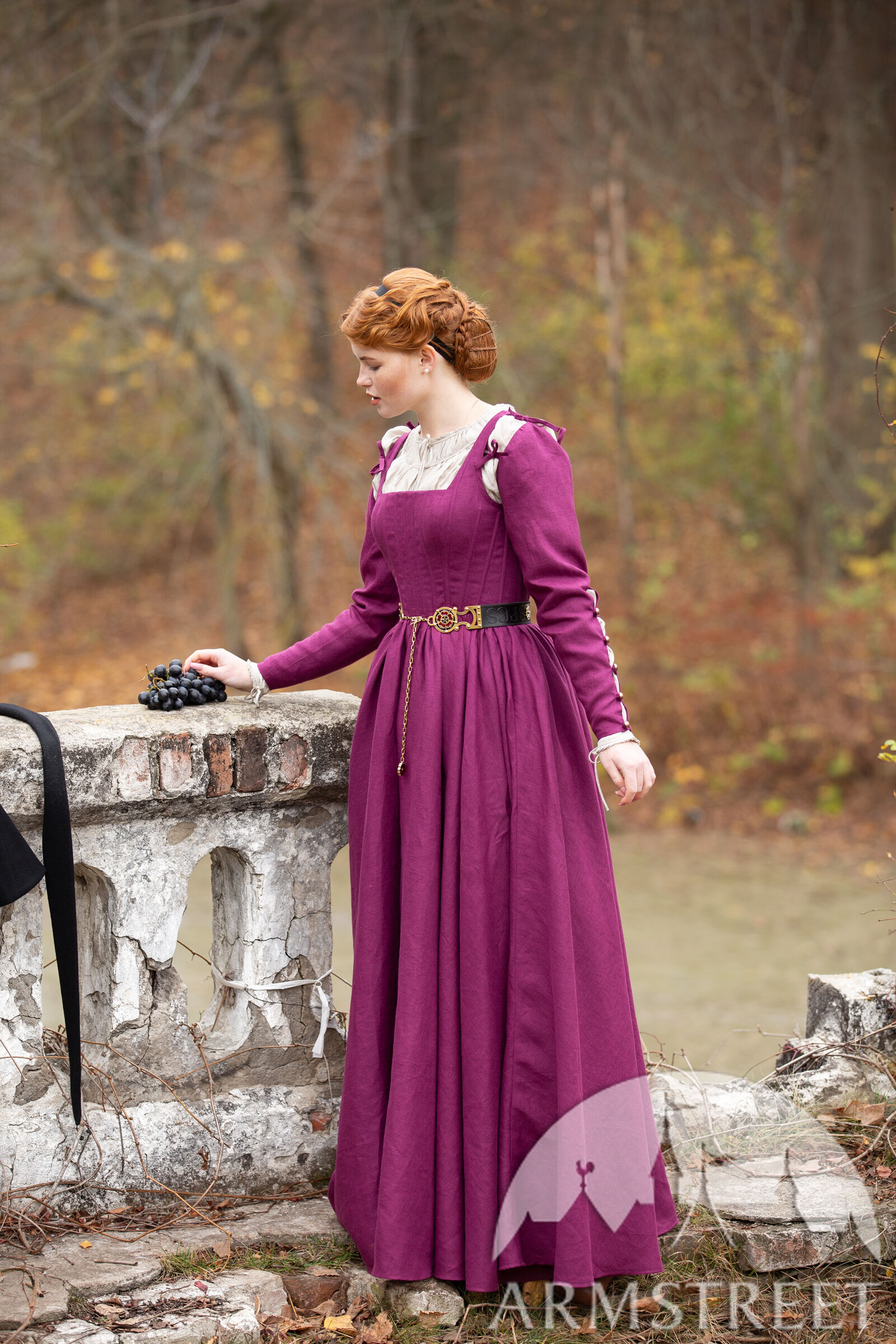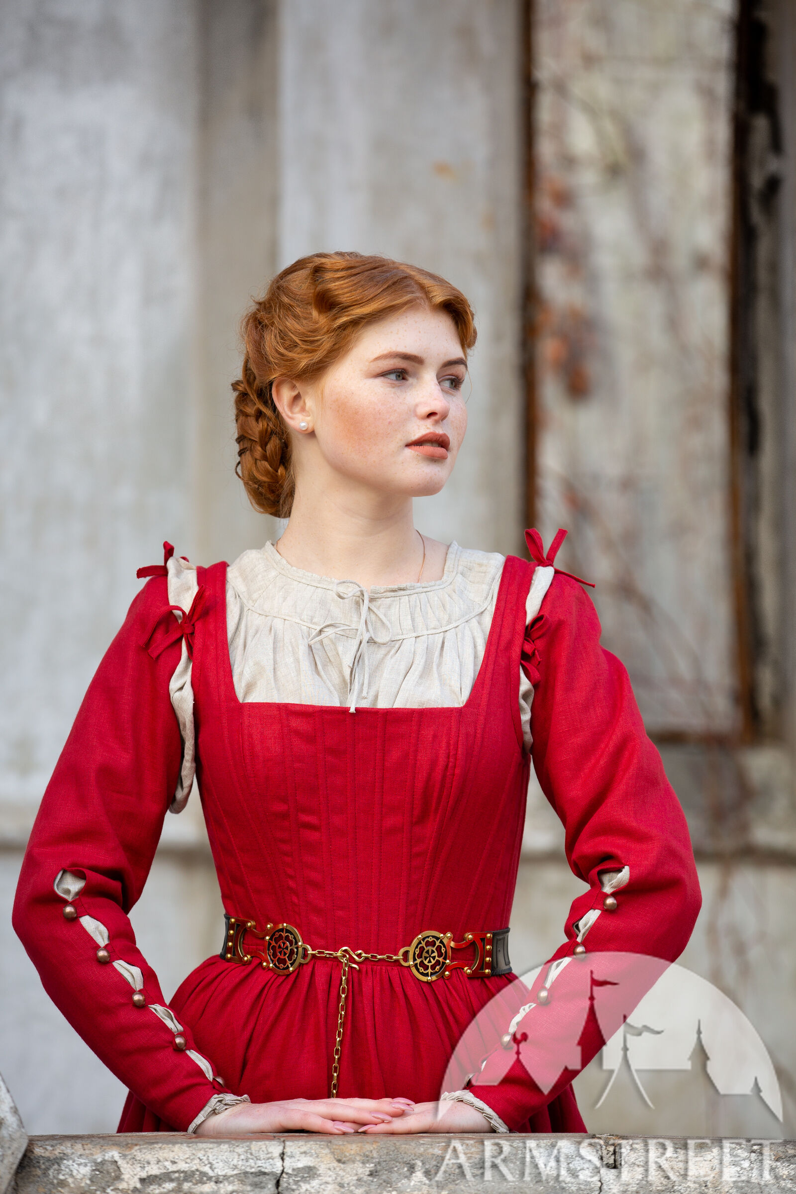 Wenn Sie nach einem kompletteren Outfit suchen, schauen Sie sich unser komplettes Set an, das auch das Hemd, dieses Kirtle Kleid und das Überkleid enthält.