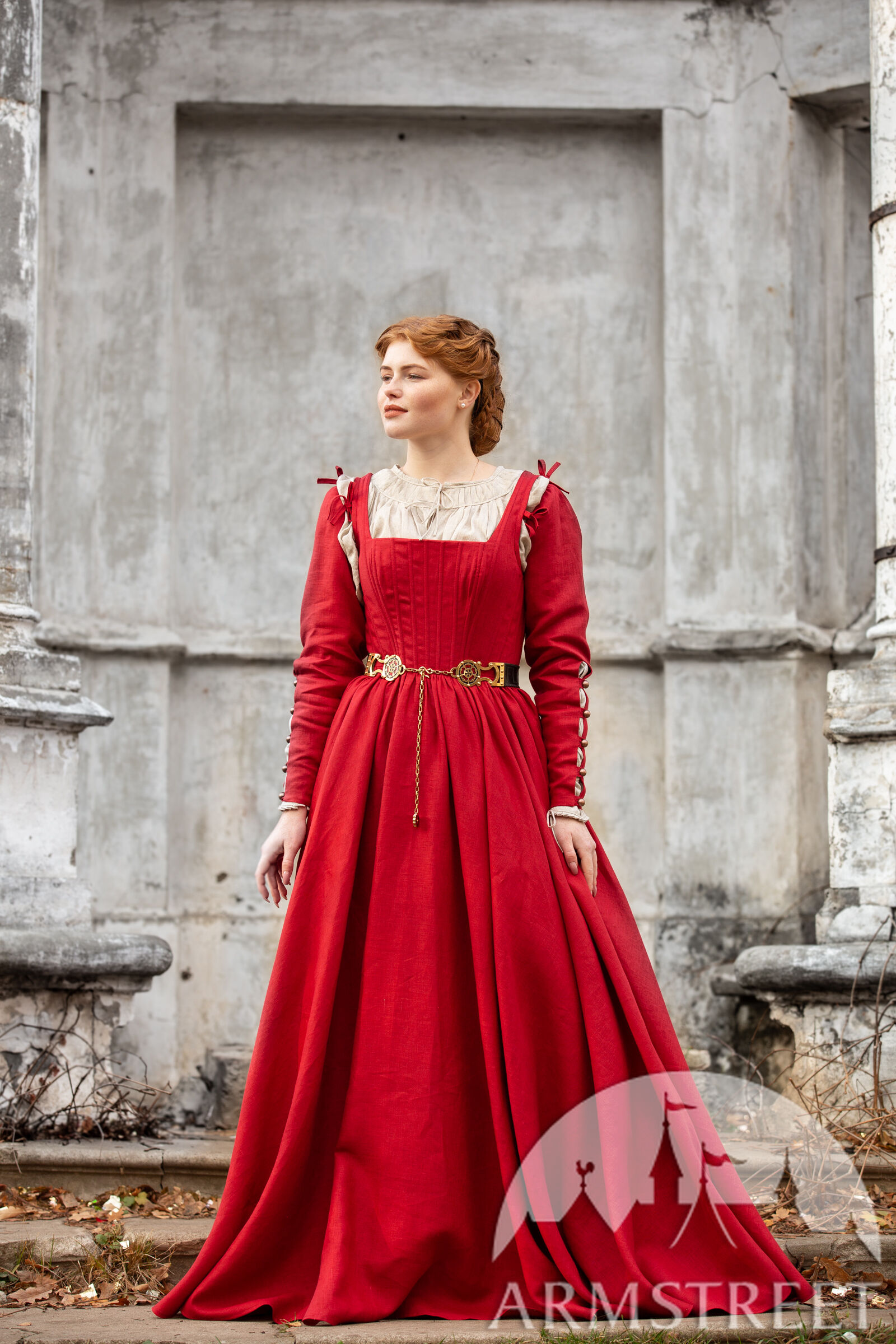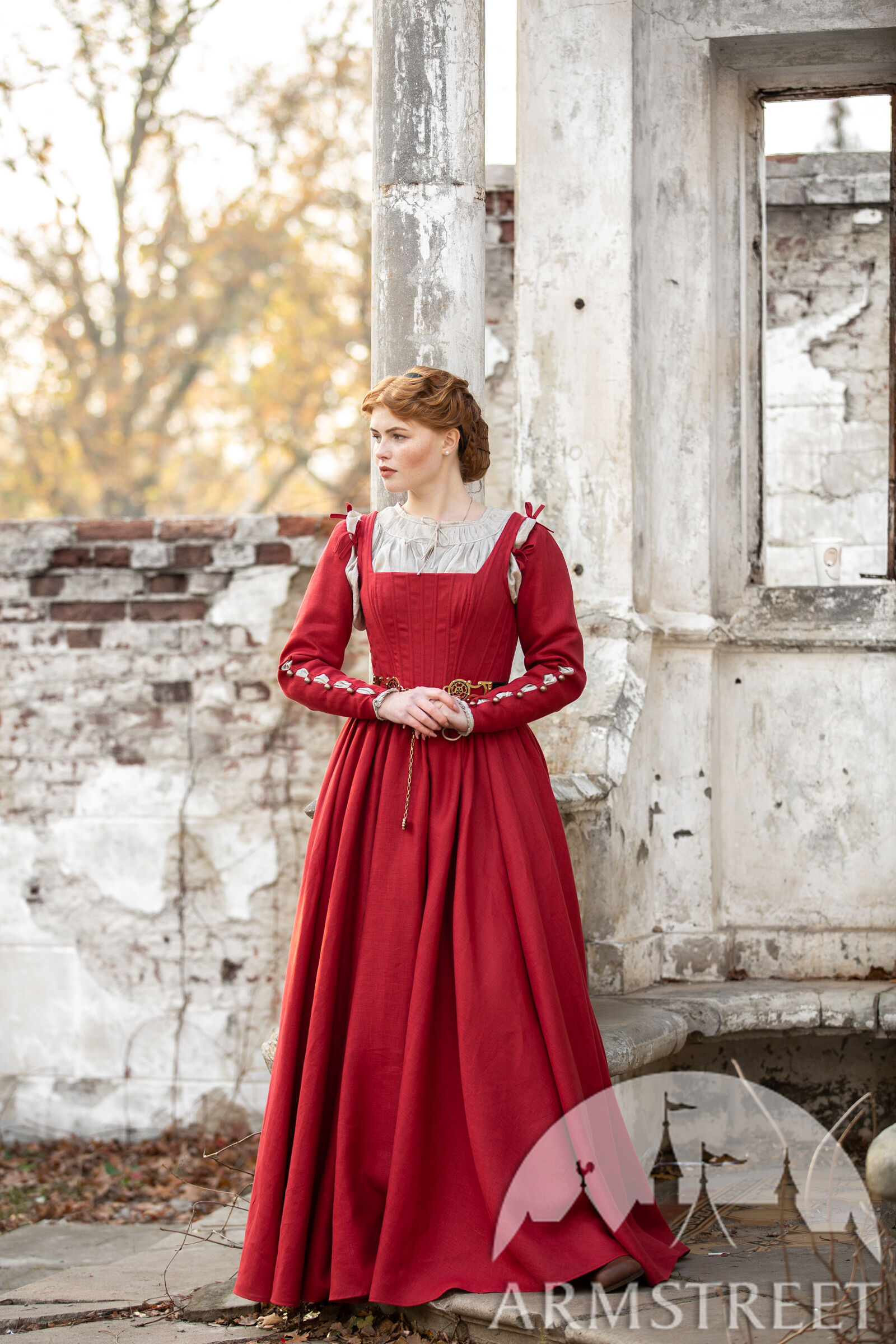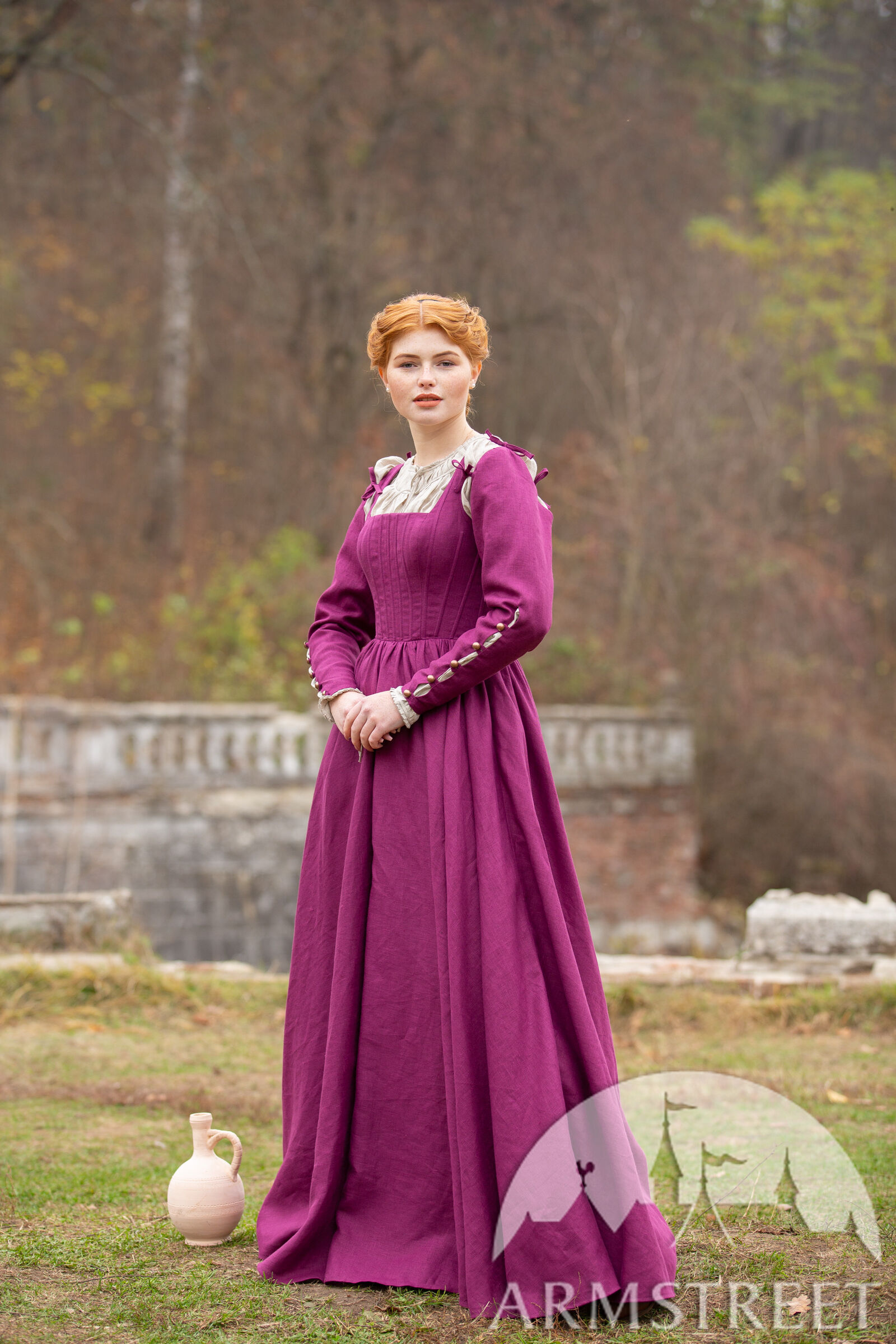 Wenn Sie nach einem kompletteren Outfit suchen, schauen Sie sich unser komplettes Set an, das auch das Hemd, dieses Kirtle Kleid und das Überkleid enthält.