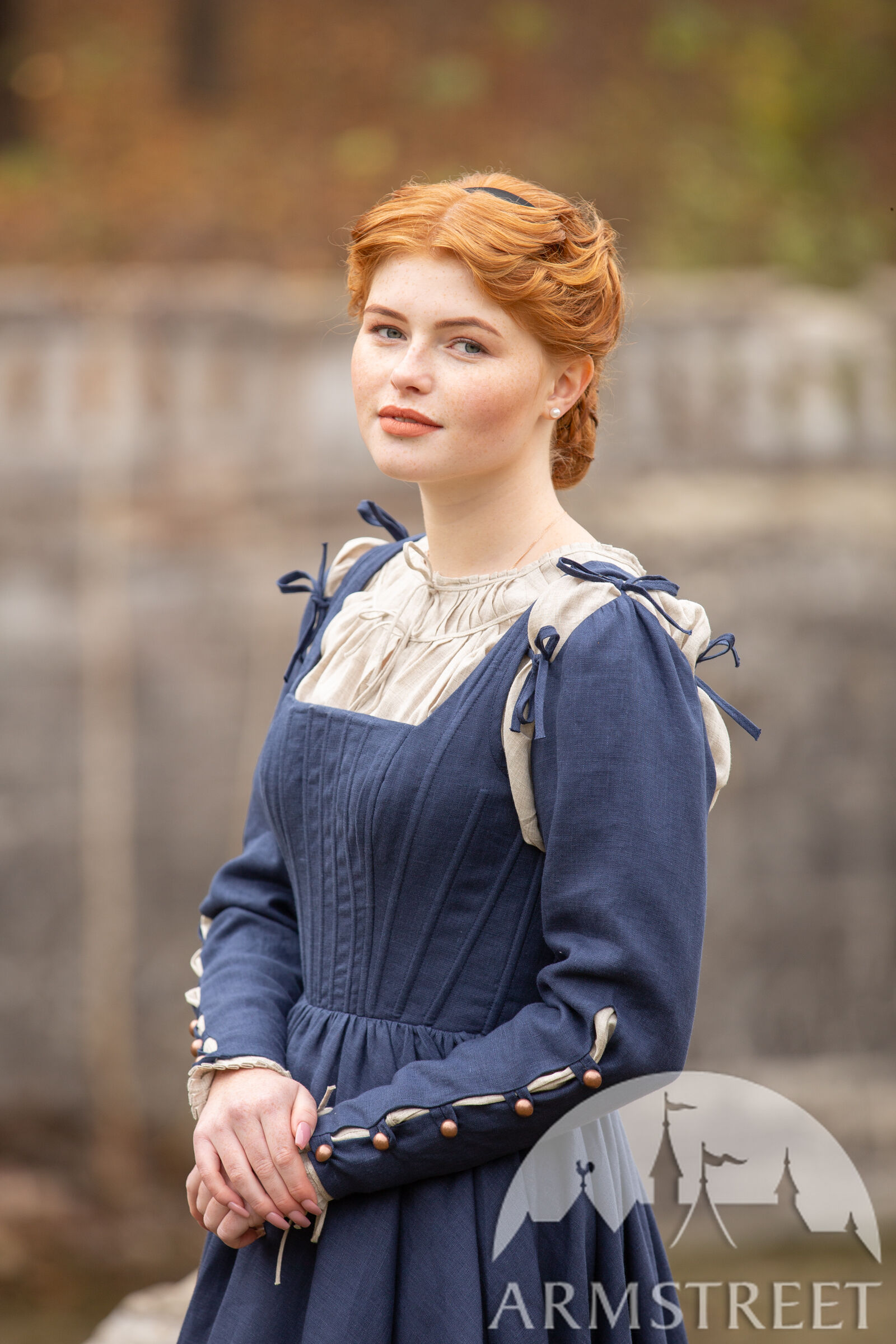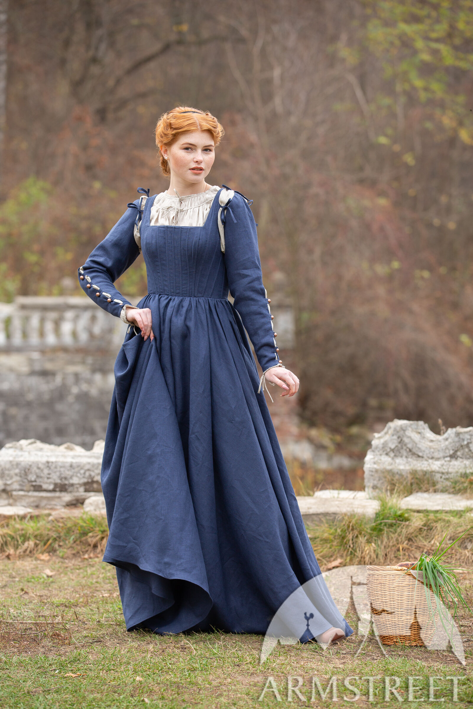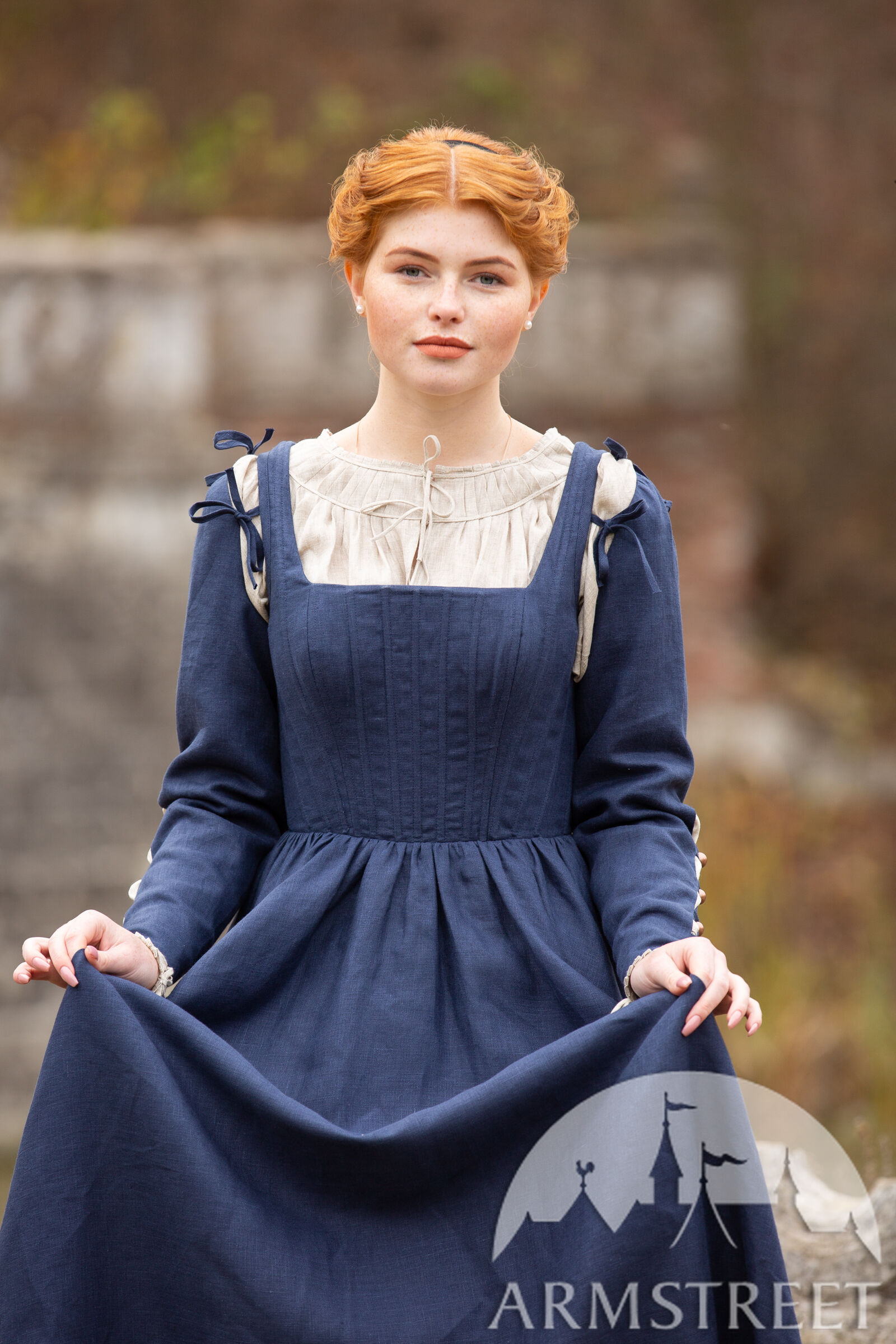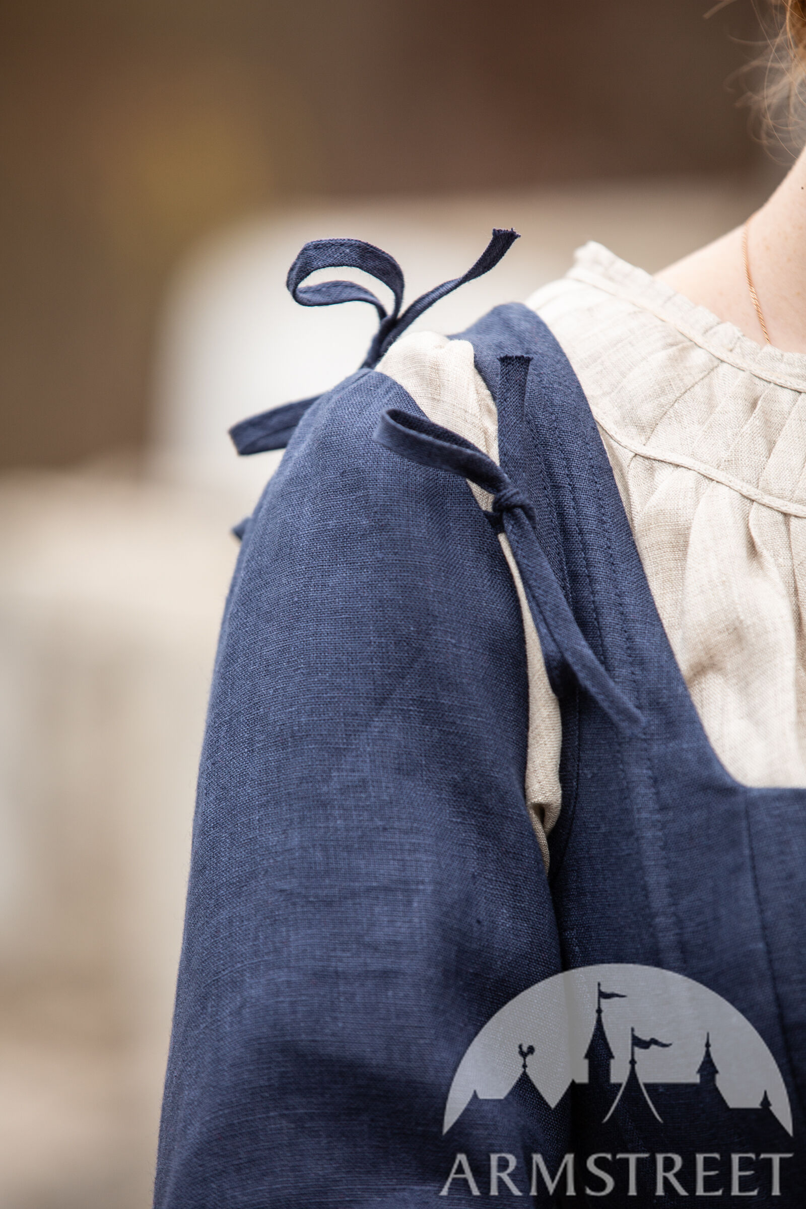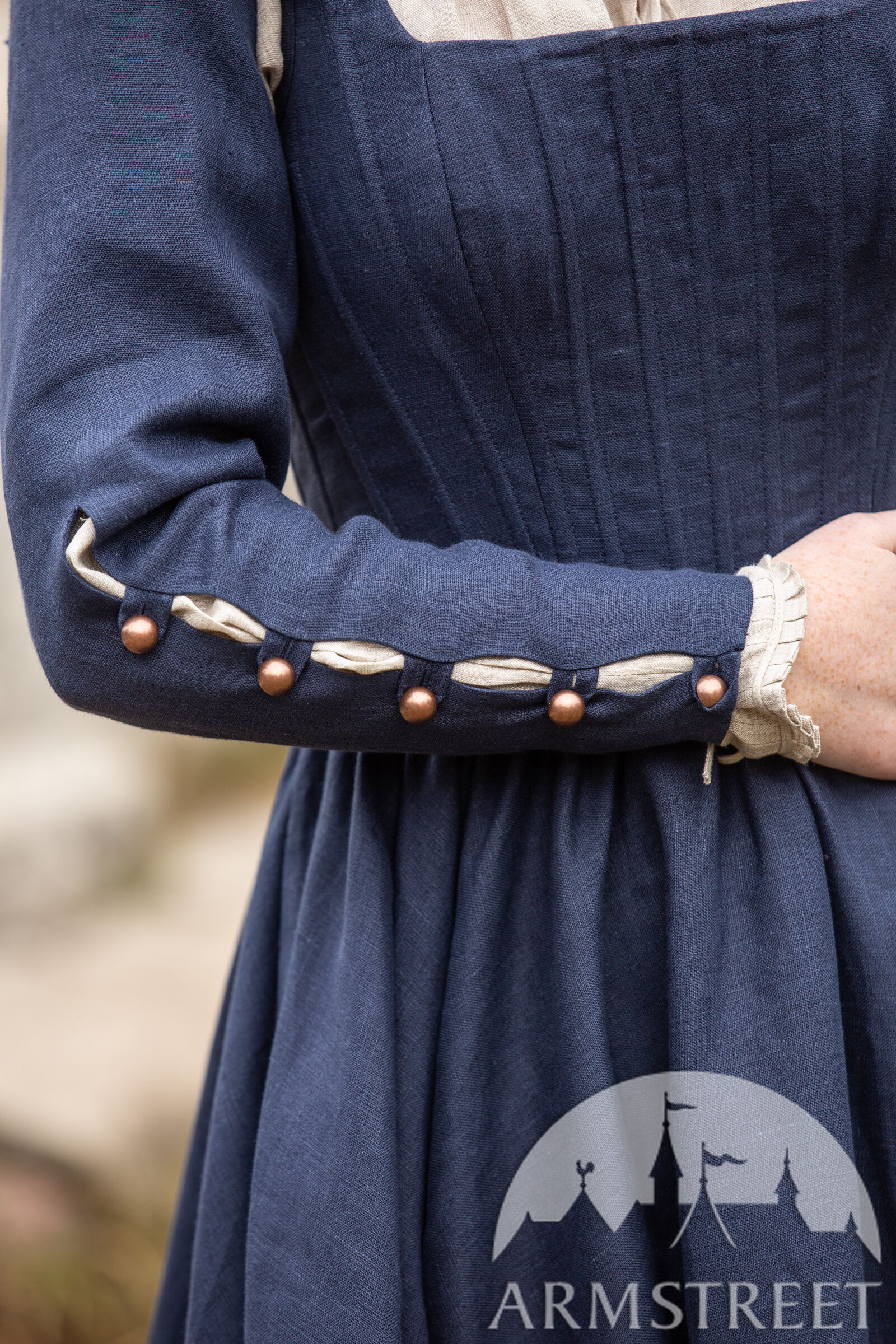 Echtes Leinen wäre nicht traditionell für diese Art von Kleid verwendet worden (eher Wolle), aber wir kreieren gerne Artikel, die für unsere Kunden, die in der heutigen Zeit existieren, bequem sind! Leinen hat ein schönes Gewebe, so dass es sehr gut atmet und ein perfekter Allwetterstoff ist. Die Ösen auf der Rückseite des Kleides sind aus Metall, was bedeutet, dass Sie die Schnürung schön festziehen können, ohne das Kleid zu beschädigen.