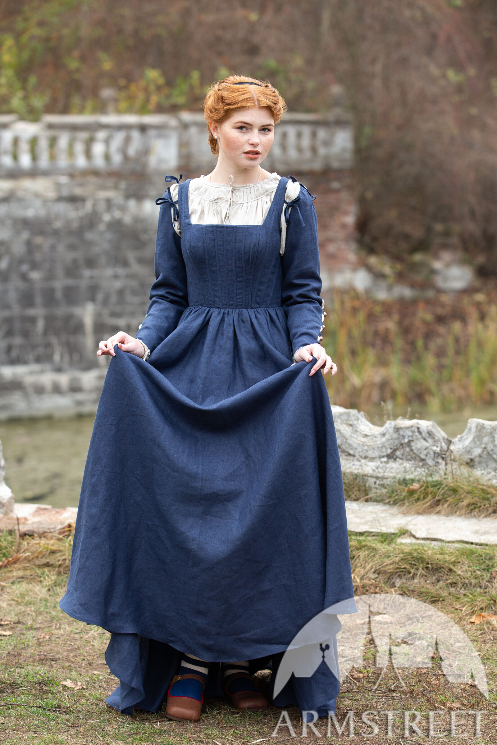Wenn Sie nach einem kompletteren Outfit suchen, schauen Sie sich unser komplettes Set an, das auch das Hemd, dieses Kirtle Kleid und das Überkleid enthält.