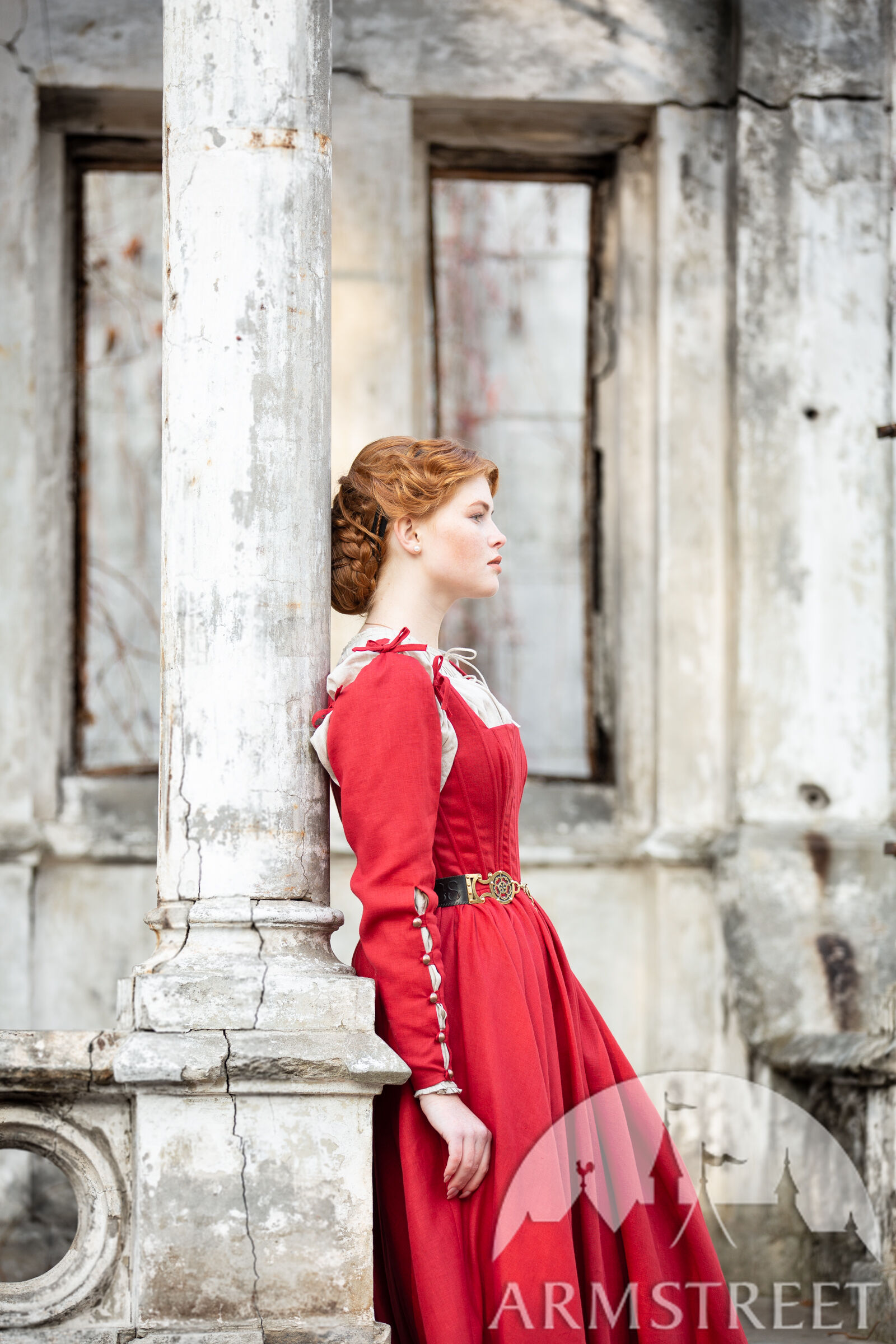 Dieses elegante und schlichte Kleid lässt Ihre natürliche Schönheit für sich selbst sprechen und wertet an den richtigen Stellen all unsere Stärken auf. Dieses Modell des Kirtle-Kleides ist seit vielen Jahren eines unserer meistverkauften Kleider. Obwohl es nicht so verschönert ist wie einige unserer anderen Kollektionen oder mit Verzierungen versehen ist, besitzt es eine schlichte, respektvolle Schönheit, die schwer zu leugnen ist. Hochwertiges Leinen wird mit einer schmeichelnden Silhouette, einem engen Oberteil und einem elegant drapierten Rock kombiniert. Binden an den Ärmeln verleiht ein bisschen Eleganz, mit ein paar kräftigen Knöpfen entlang des Unterarms für eine funktionelle Dekoration.