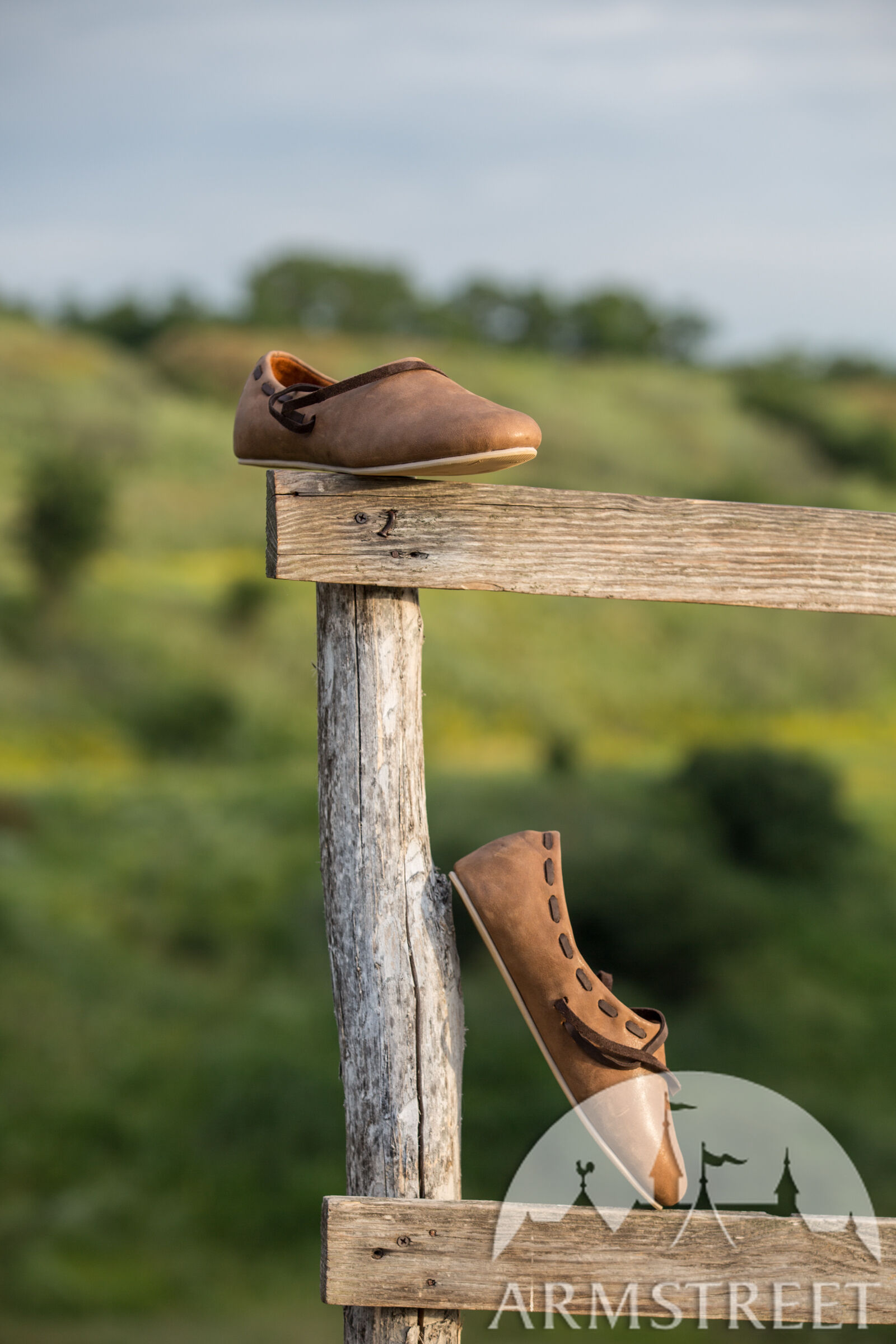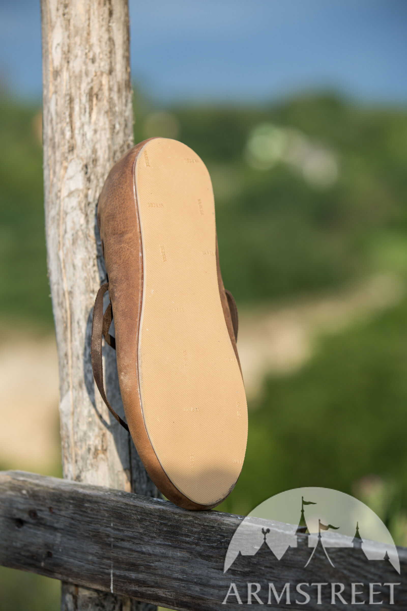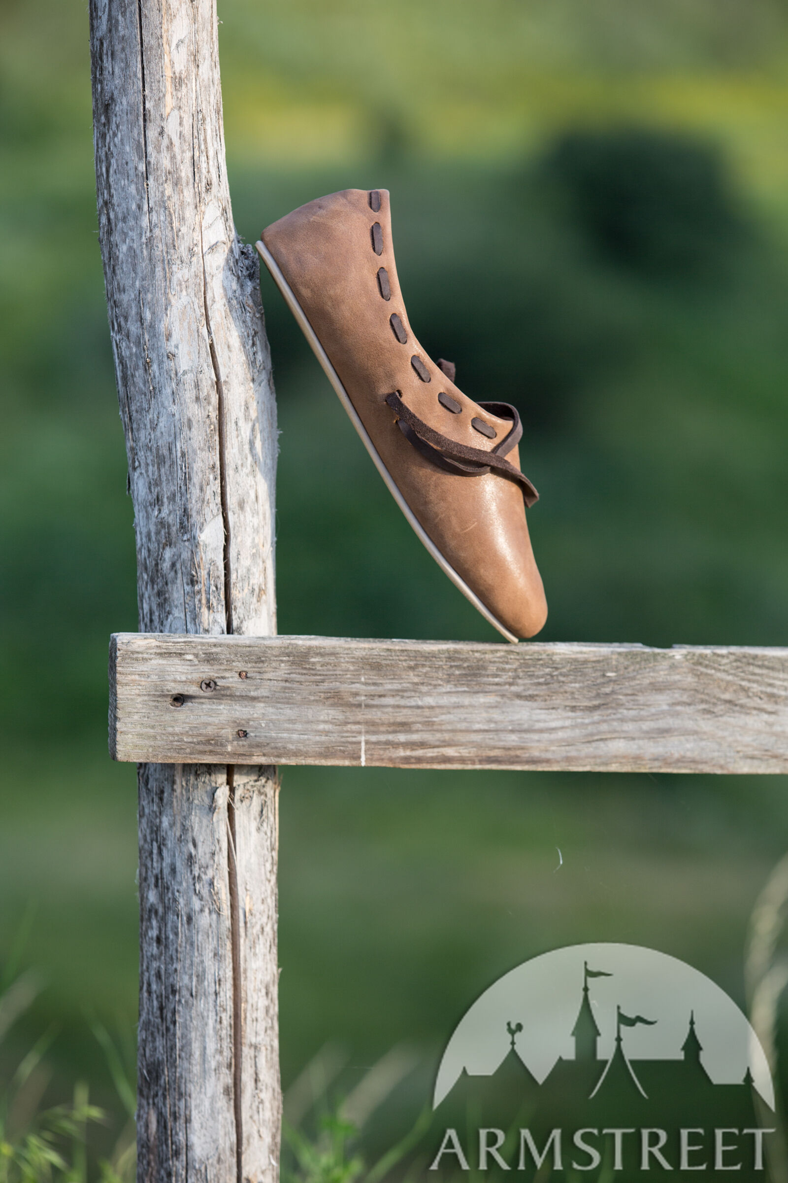 Diese Schuhe sind genau das, was Sie für den Alltag rund um Ihr mittelalterliches Lager brauchen. Vergessen Sie nicht, dass es nicht nur Abendparty-Outfits und ausgefallene Accessoires Ihren Charakter bilden, sondern auch kleine Details und die Art und Weise, wie Sie authentische Ausrüstung in Ihrem alltäglichen Eventleben verwenden.