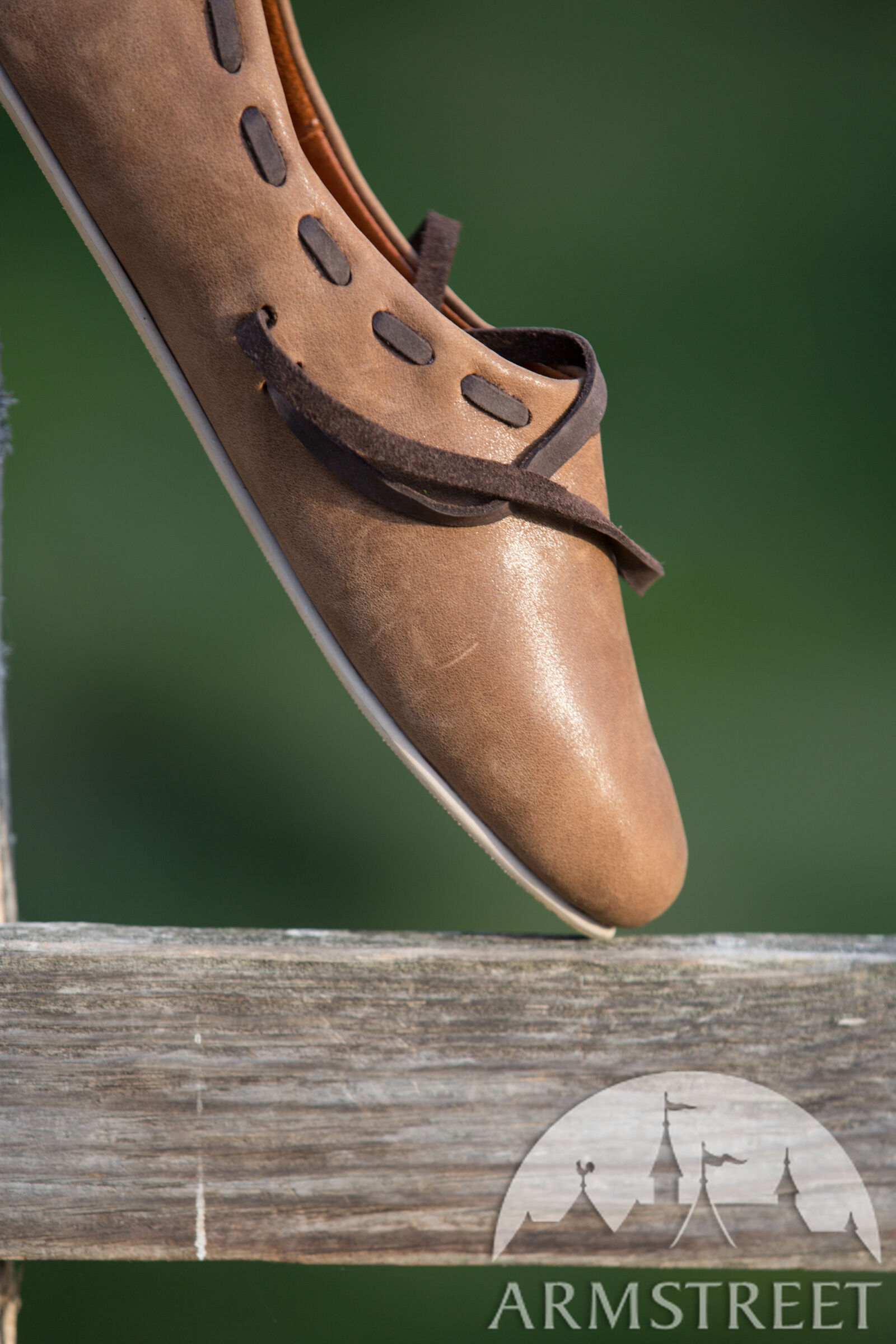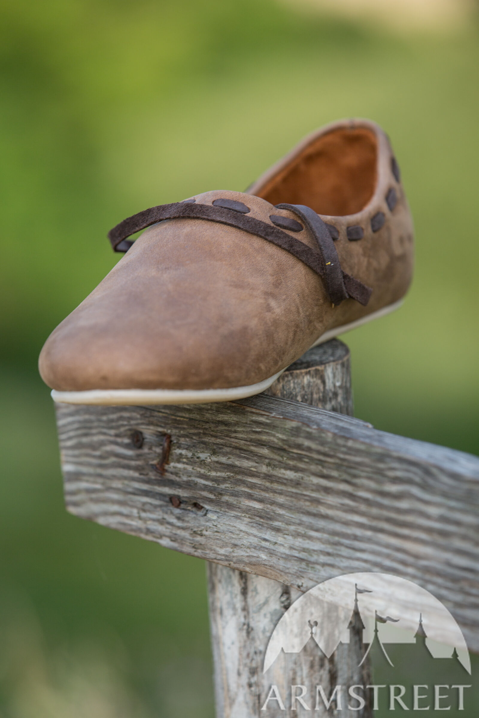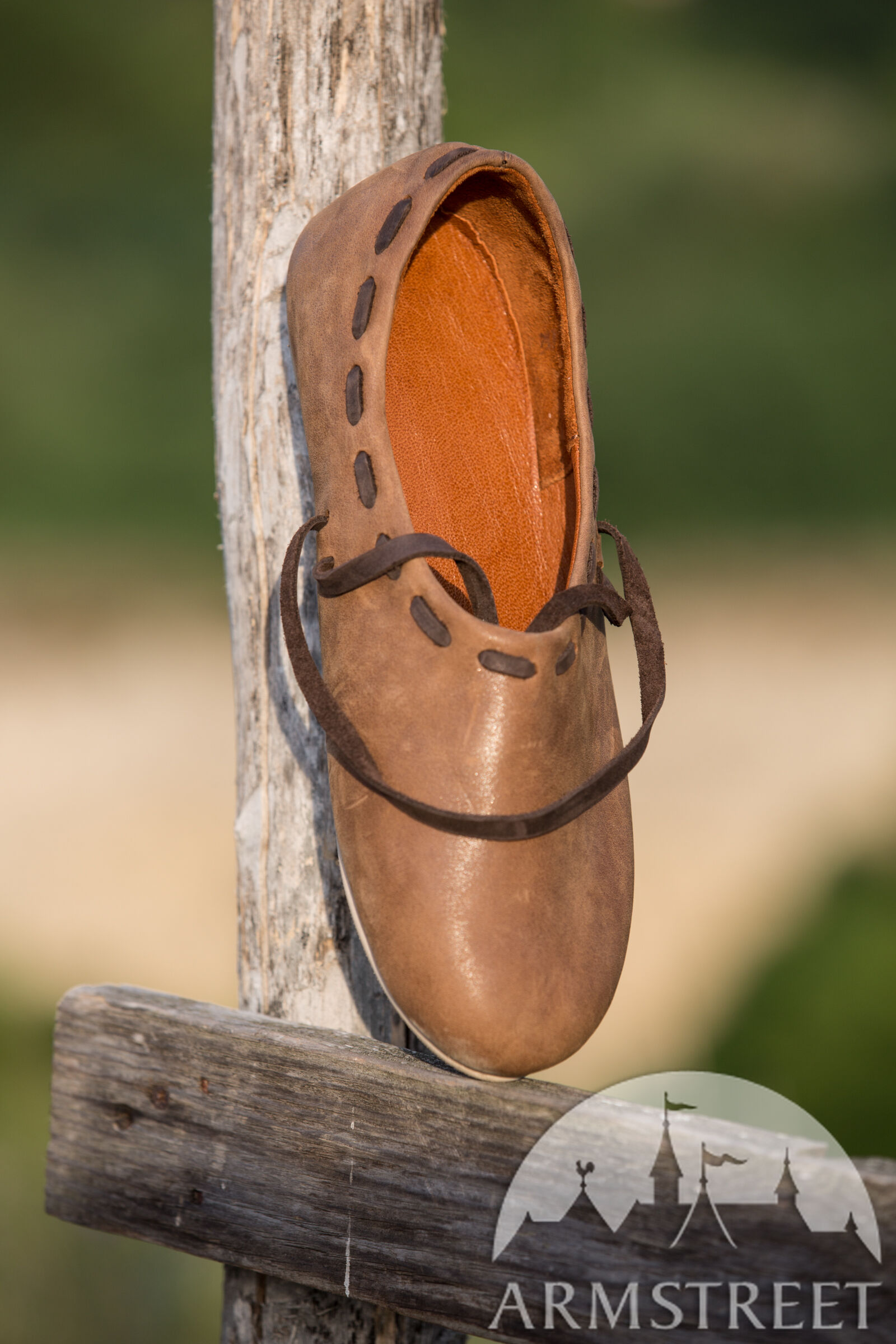 Diese Schuhe sind genau das, was Sie für den Alltag rund um Ihr mittelalterliches Lager brauchen. Vergessen Sie nicht, dass es nicht nur Abendparty-Outfits und ausgefallene Accessoires Ihren Charakter bilden, sondern auch kleine Details und die Art und Weise, wie Sie authentische Ausrüstung in Ihrem alltäglichen Eventleben verwenden.