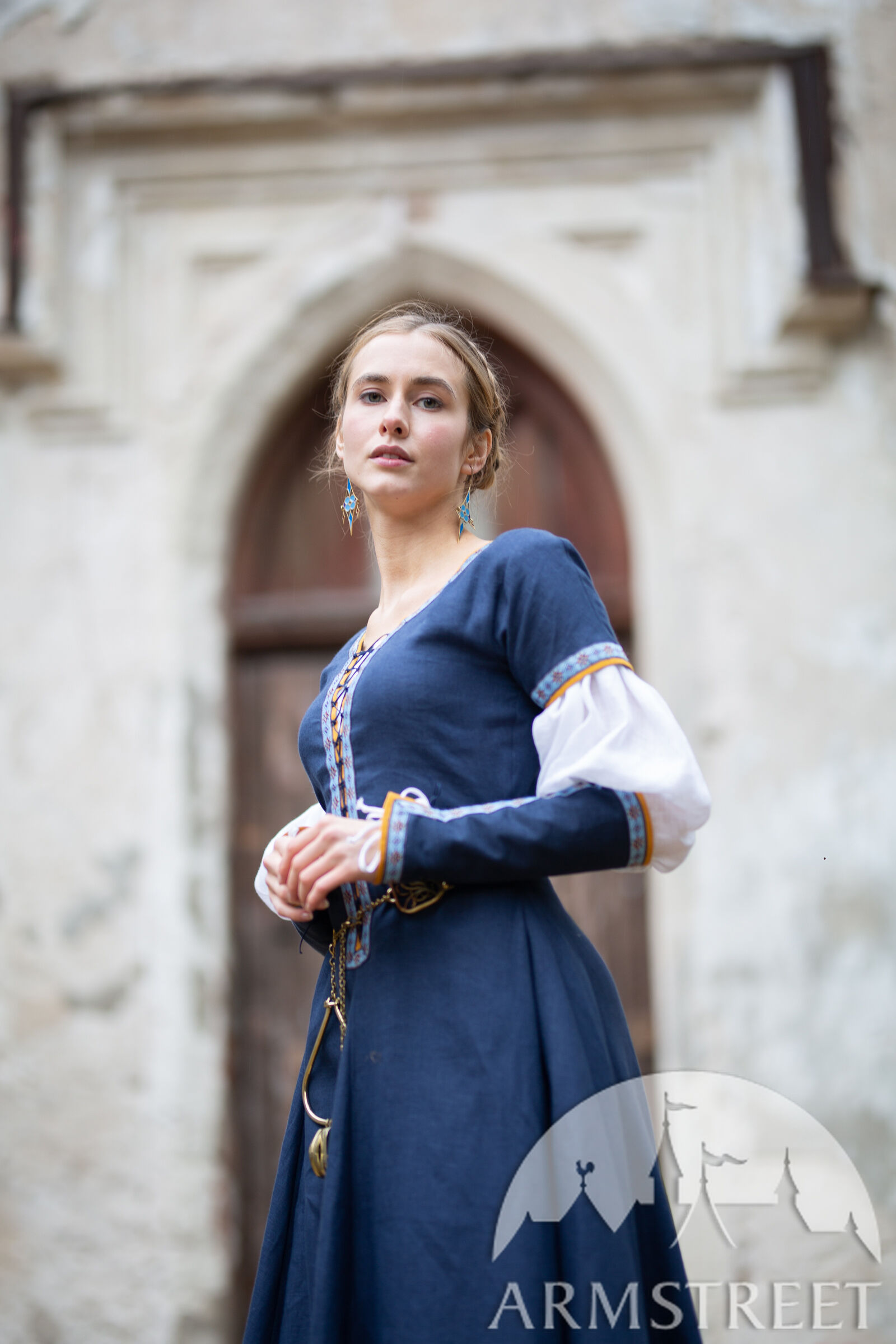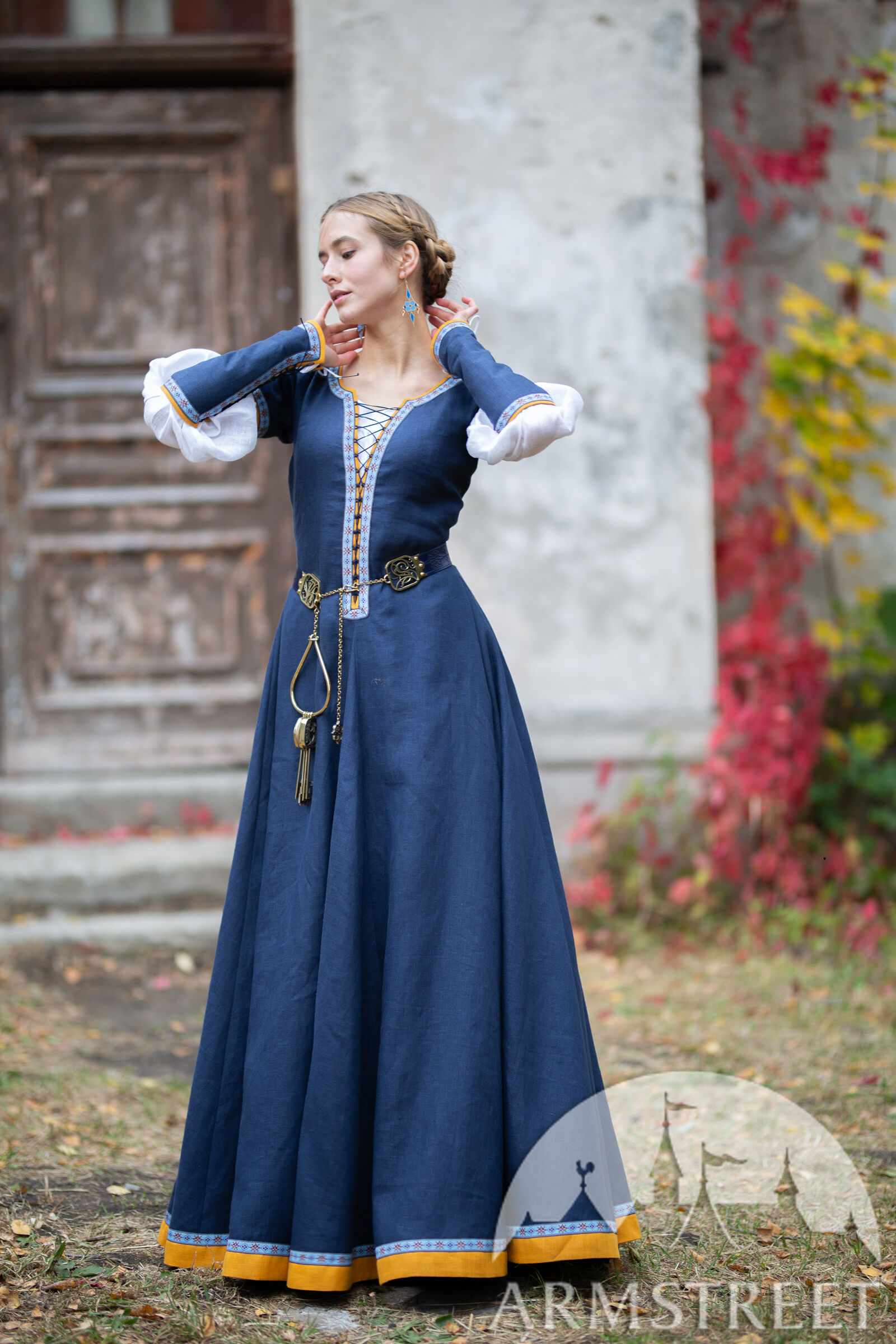 Das Kleid „Schlüsselhalterin” zeigt, dass ein Kleid gleichzeitig schön und praktisch sein kann! Diese gesamte Kollektion enthält mittelalterliche Gegenstände aus einfachen, hochwertigen Materialien. Anstatt sich auf ausgefallene Perlen und Seiden zu verlassen, drückt sie ihre Schönheit mit fachmännisch zugeschnittenen Details aus. Sie werden sich in die Silhouette dieses Kleides verlieben, das perfekt für Festivals, Feste, Veranstaltungen und andere Orte in Ihrem mittelalterlichen Leben geeignet ist!