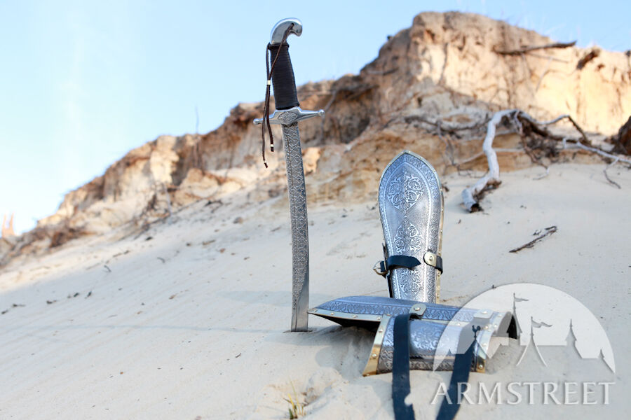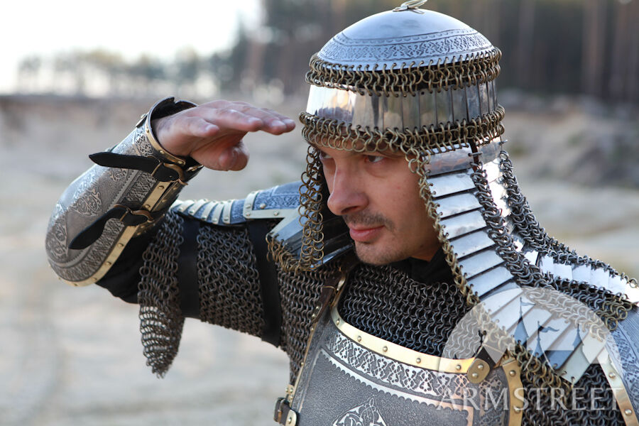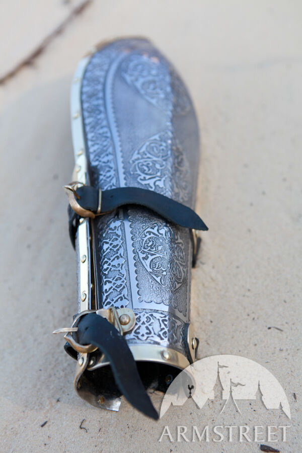 Dieser Armschutz ist ein Teil des Rüstungssets „Prinz des Ostens“ und basiert sich auf den Beispieles von XVI.-XVII. Jahrhunderten, Naher Osten die im Tower, London und Kreml Rüstkammer zu finden sind.