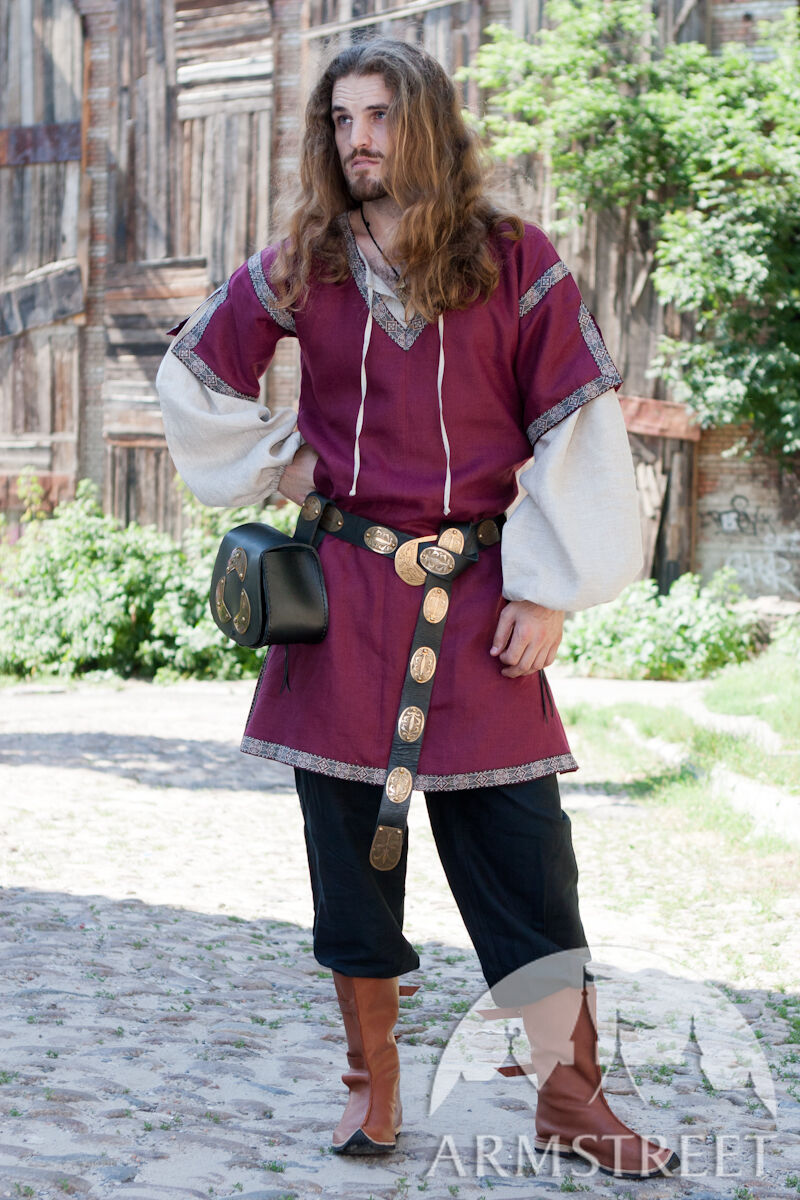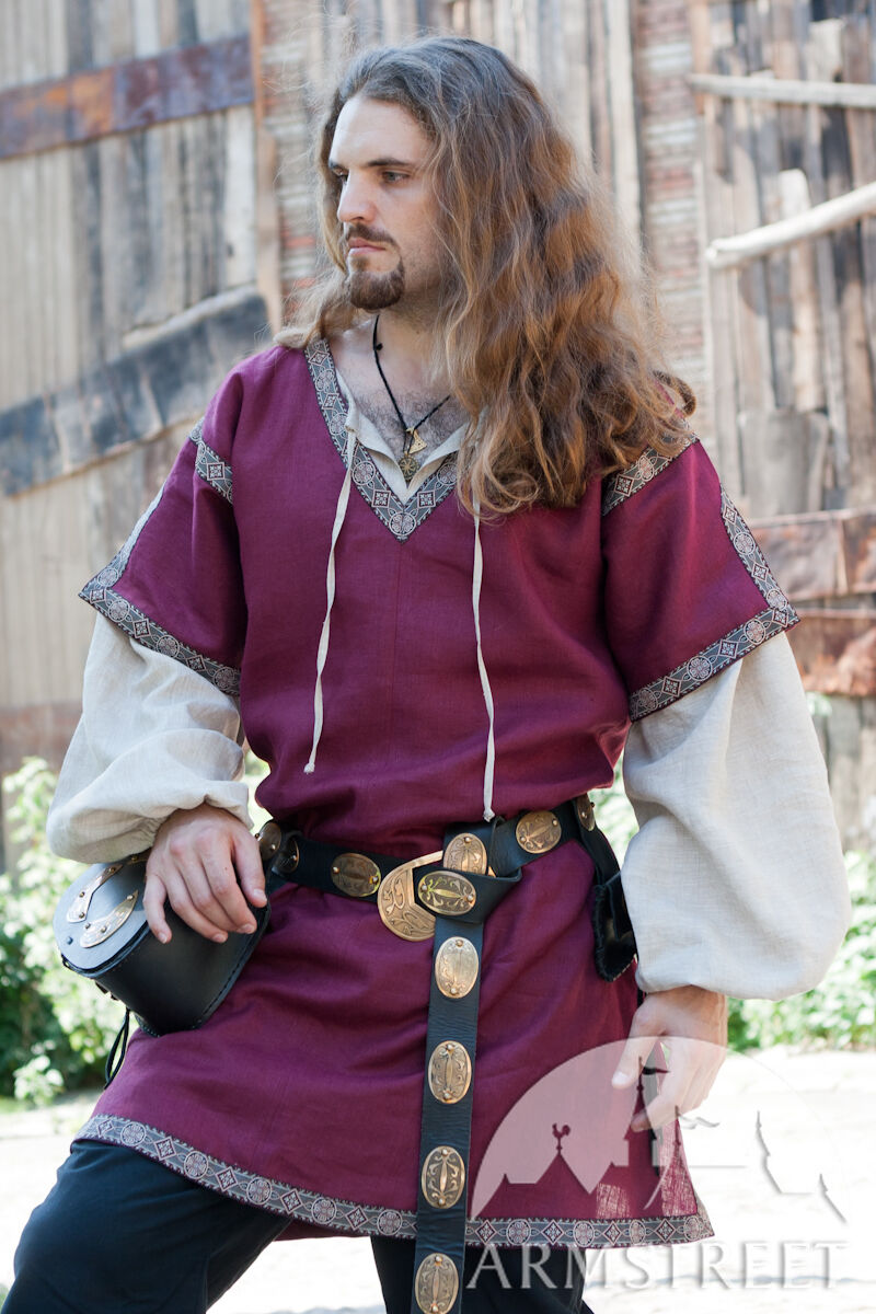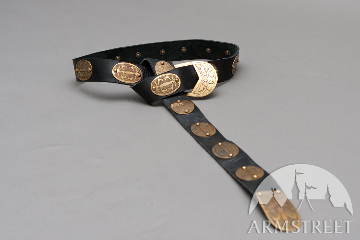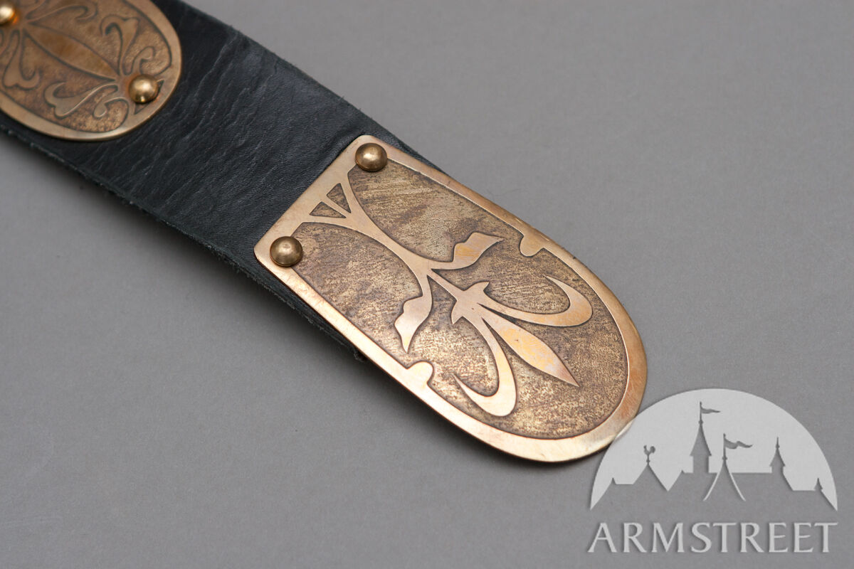 Handgefertigter Gürtel im Mittelalter Stil aus dunkelbraunem Leder mit handgeschmiedeten und geätzen Stahlverzierungen. Eine wunderbare Ergänzung für jedes Mittelalter Kleid oder Kostüm aber auch als Gürtel für jeden Tag verwendbar. Dieser Gürtel ist hervorragend kombinierbar mit dem Kettenpanzer oder Gambeson. Aus festem, echtem Leder in hervorragender Qualität gefertigt.
