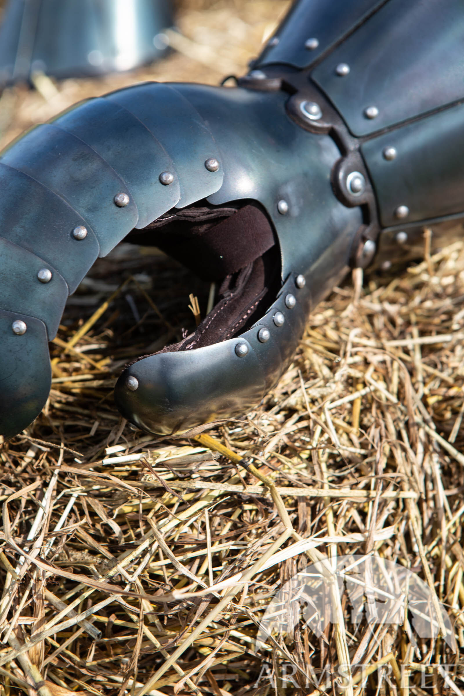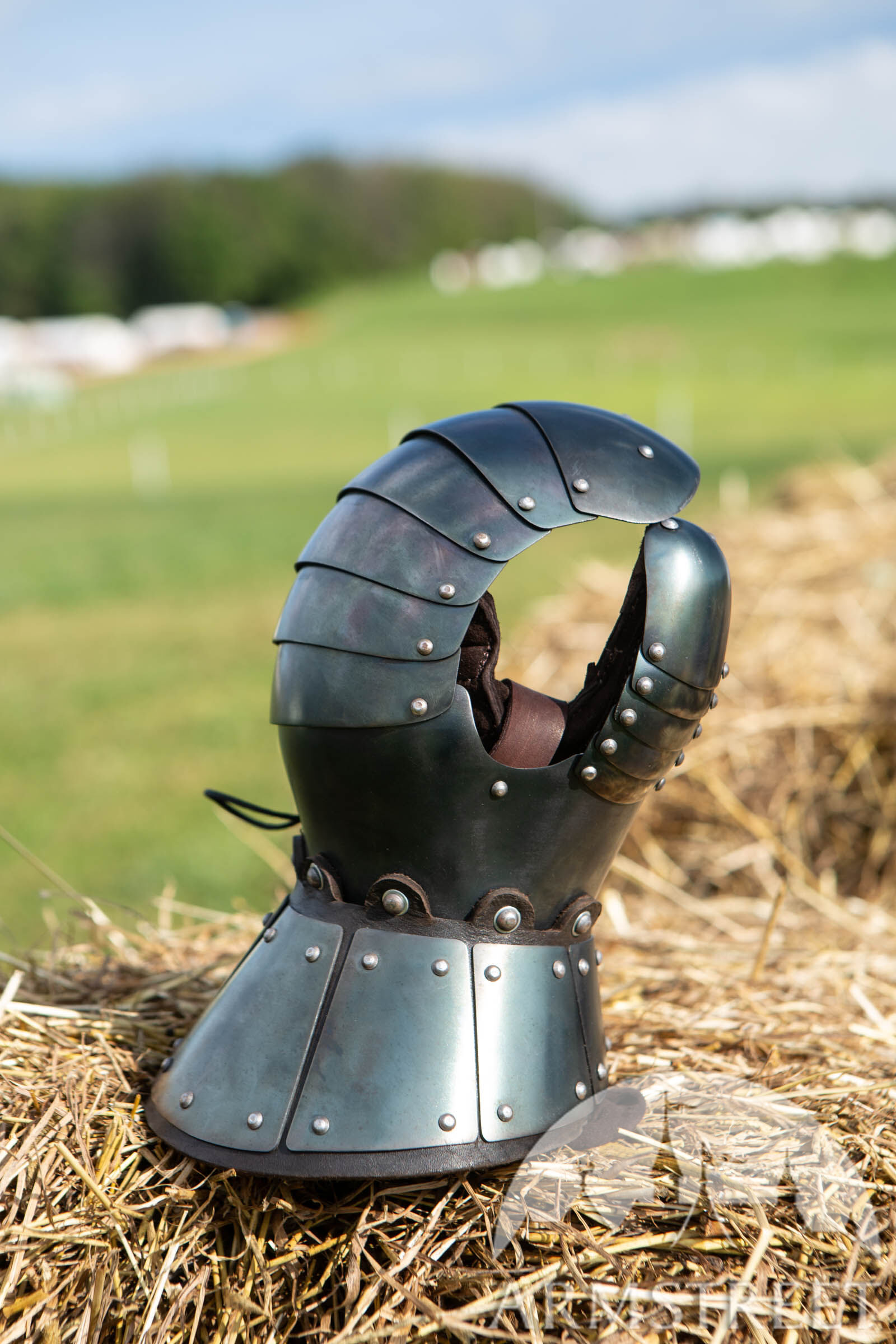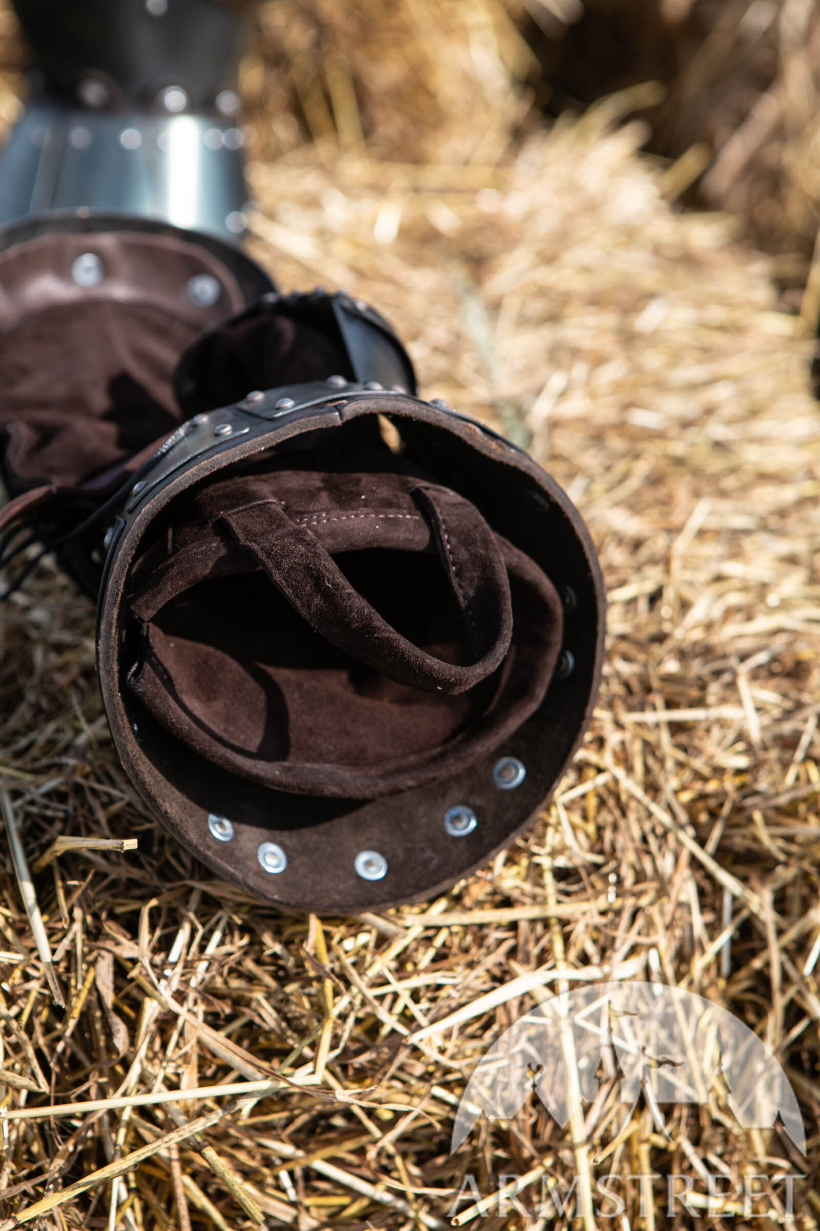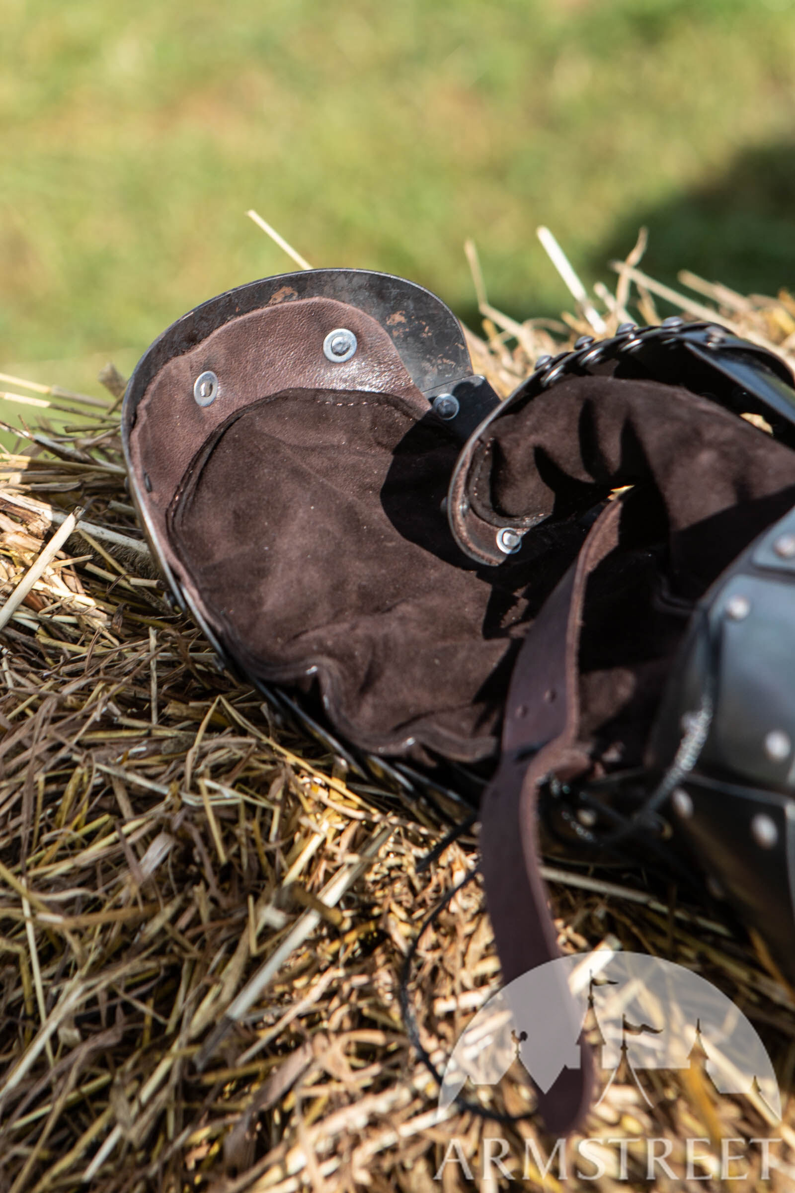 Gute Wahl für Training und mittelalterliche Kämpfe. Dieses ziemlich einfache Design ist typisch für das frühe Mittelalter - im normannischen oder slawischen Stil. Dieses Modell verfügt über eine fortschrittliche Daumenform: Nur eine geringfügig tiefere Bewegung der Fingerspitzen dieser Version führt zu einer geschlossenen Form, die Ihren Daumen vor einem frontalen Schlag schützt. Wenn Sie zuverlässige Turnier- oder Trainingshandschuhe benötigen, ist dieses Paar die perfekte Wahl. Als einer der Bestseller in dieser Kategorie lieferte die Anzahl der von ArmStreet verkauften Lamellenpanzer Handschuhen eine Menge wertvoller Rückmeldungen von Kämpfern aus aller Welt, die jahrelanger Benutzererfahrung entsprachen. Dies trägt zur ständigen Verbesserung von Funktionalität und Ergonomie bei.
