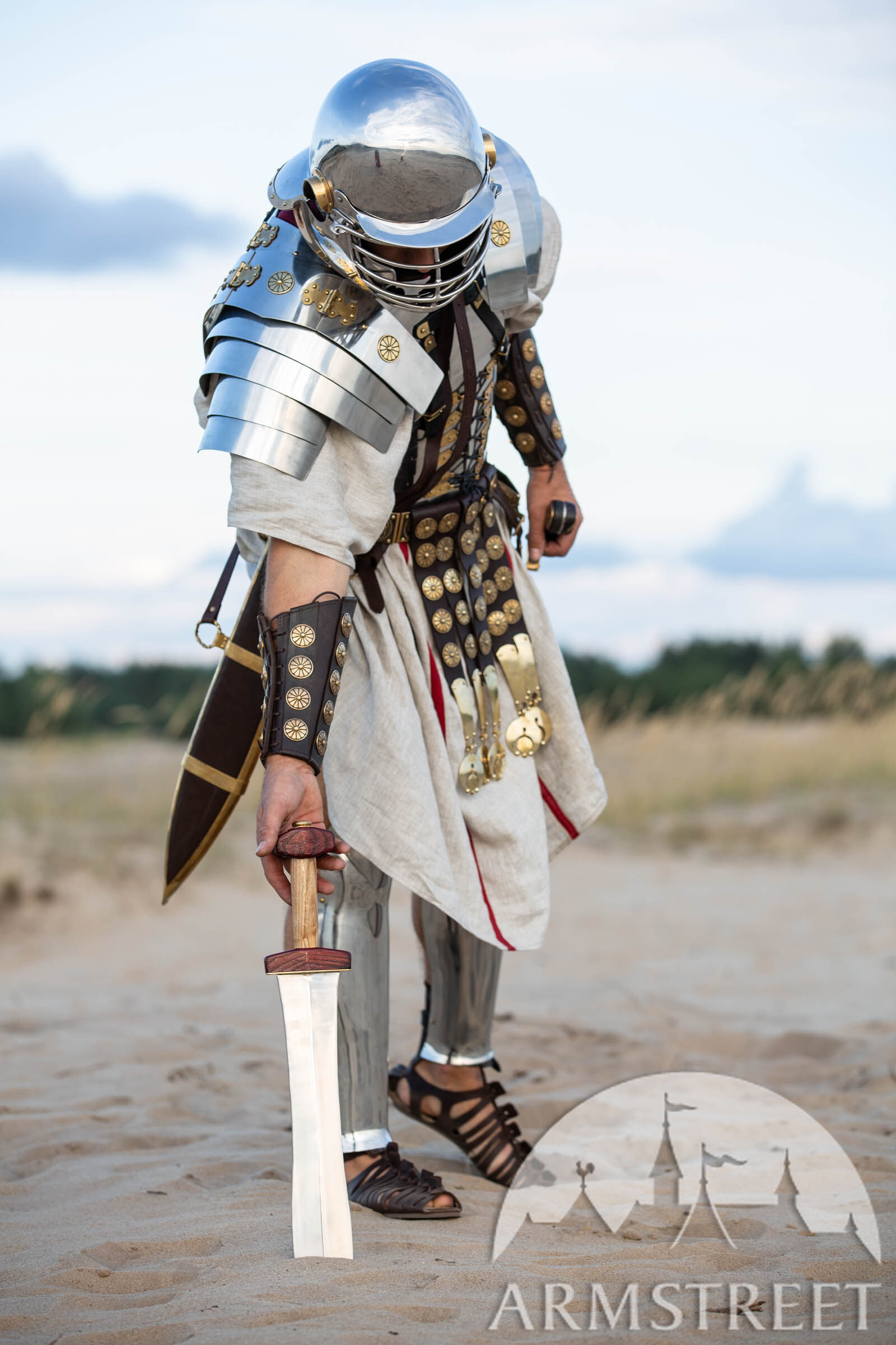 Wir wollten schon immer Gegenstände herstellen, die von alten Zivilisationen inspiriert sind, und könnten nicht erfreuter sein, dass „Cassius” unser erstes Ergebnis ist! Die Römerzeit ist zweifellos inspirierend, daher sollte es keine Überraschung sein, dass wir uns entschieden haben, unsere eigene Version dieses ikonischen Stücks römischen Designs und Ingenieurwesens herzustellen. Dieses Stück ist nicht nur ästhetisch interessant, sondern zum Glück auch sehr gut dokumentiert. Der Gladius war ein römisches Kurzschwert, das traditionell mit einer breiten Klinge und einer messerscharfen Spitze hergestellt wurde, um aus nächster Nähe zu stechen.