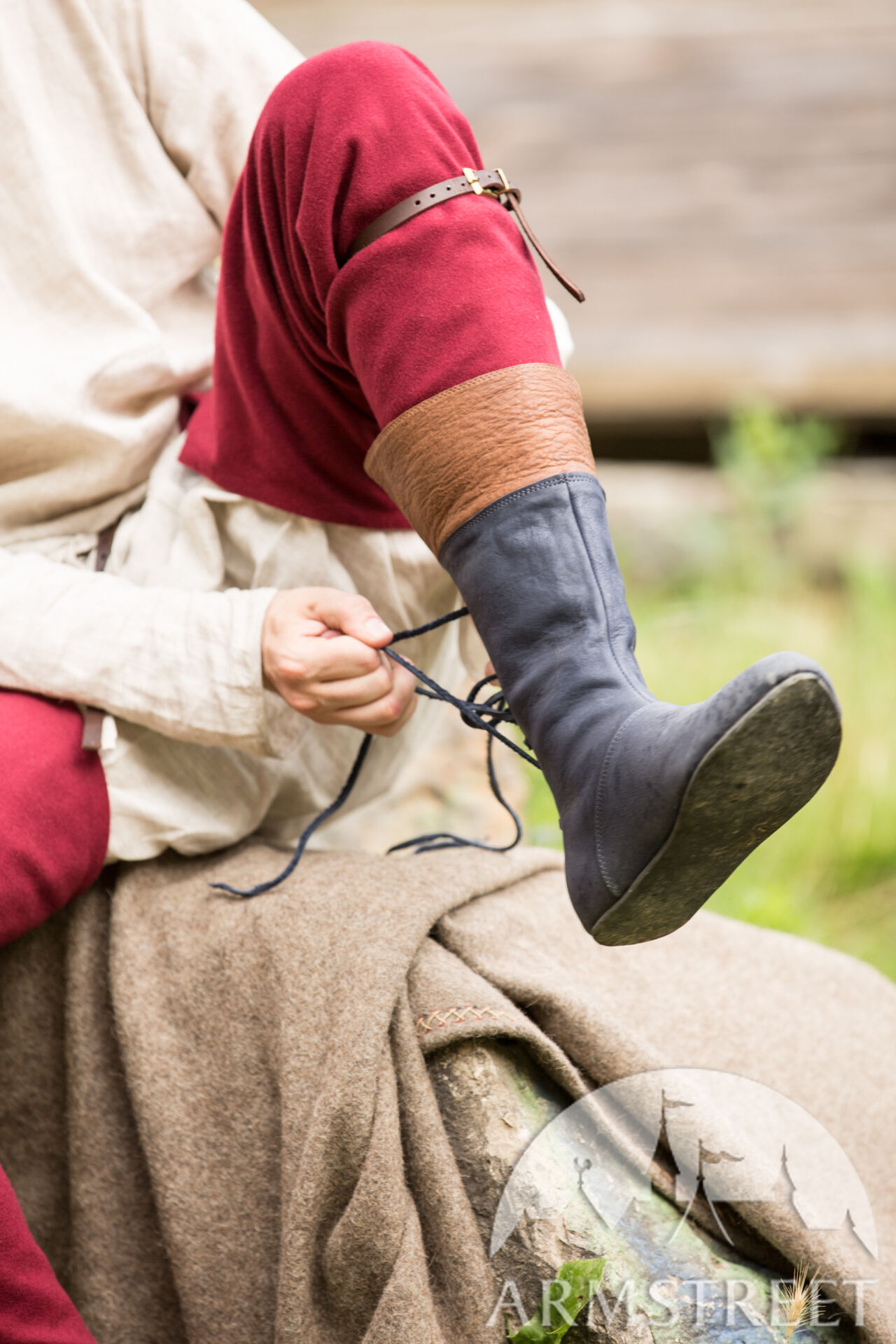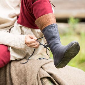 Die Stiefel bestehen aus weichem Leder. Die Flexibilität stellt sicher, dass sich Ihr Bein frei bewegen kann, wenn Sie irgendeine Art von Kampfpraxis haben, sei es Wrestling, Schwertkampf oder Bogenschießen.