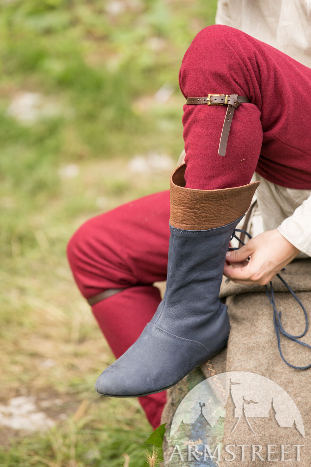 Bewundernswerte weiche Lederstiefel sind die perfekte Wahl, wenn Sie nach einer Ergänzung zu Ihrem mittelalterlichen Kostüm eines Ritters oder edlen Knappen suchen. Das Design dieser Schuhe basiert auf dem Stil des 15. Jhdt.