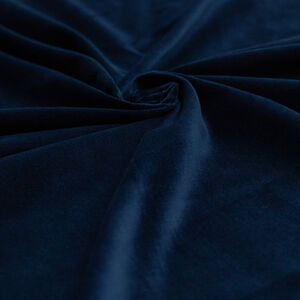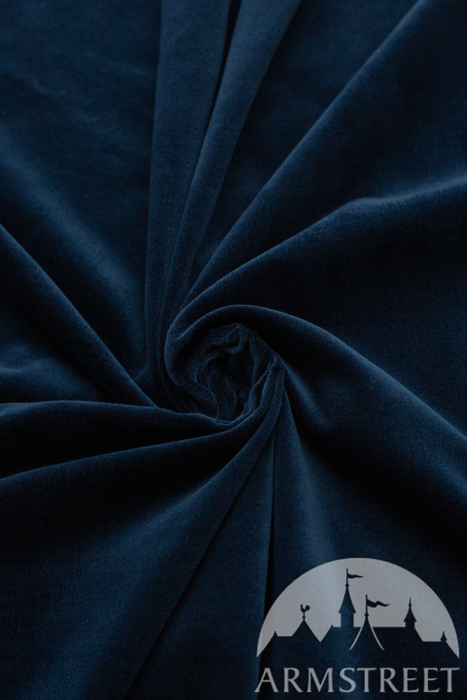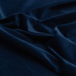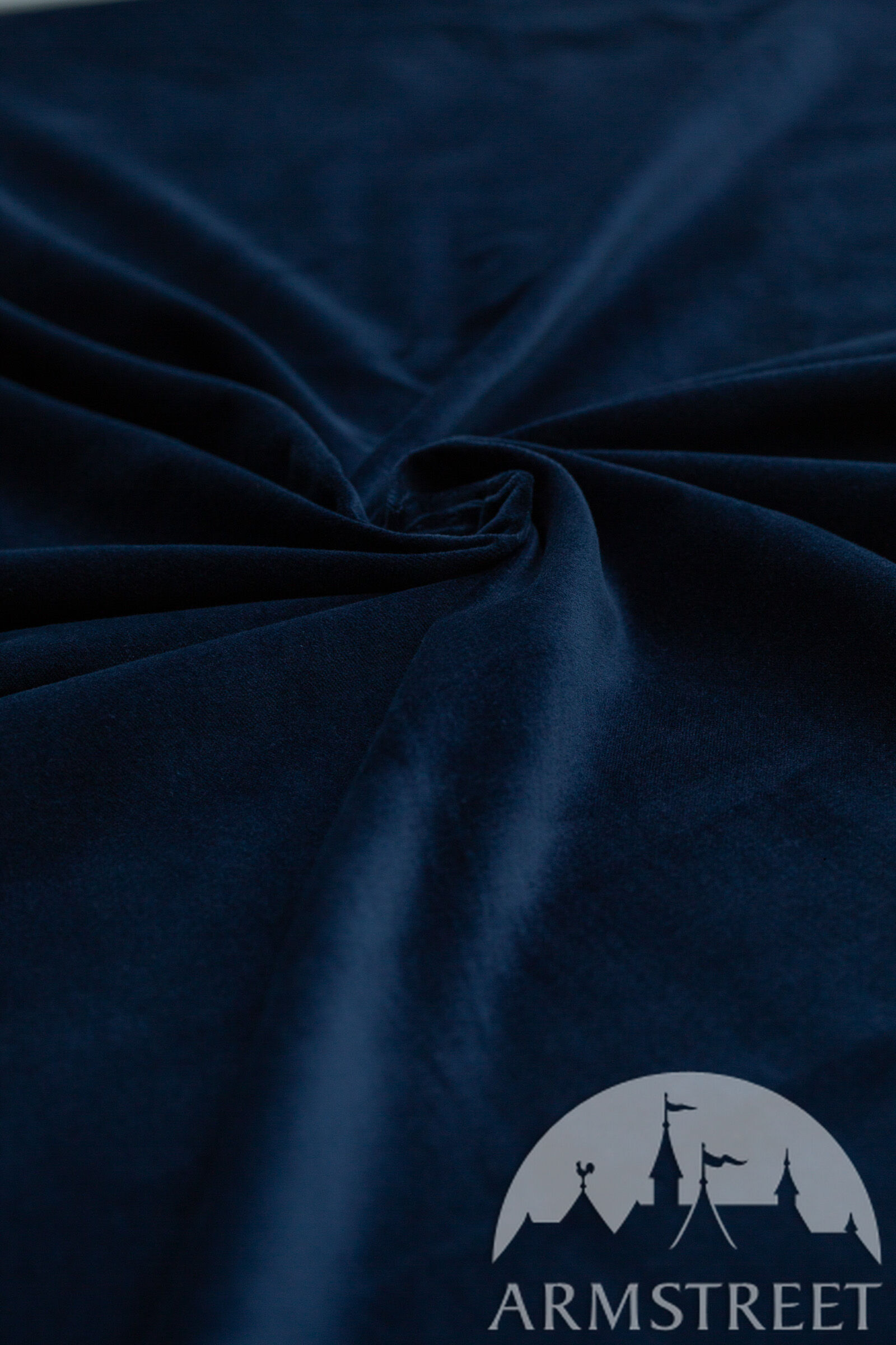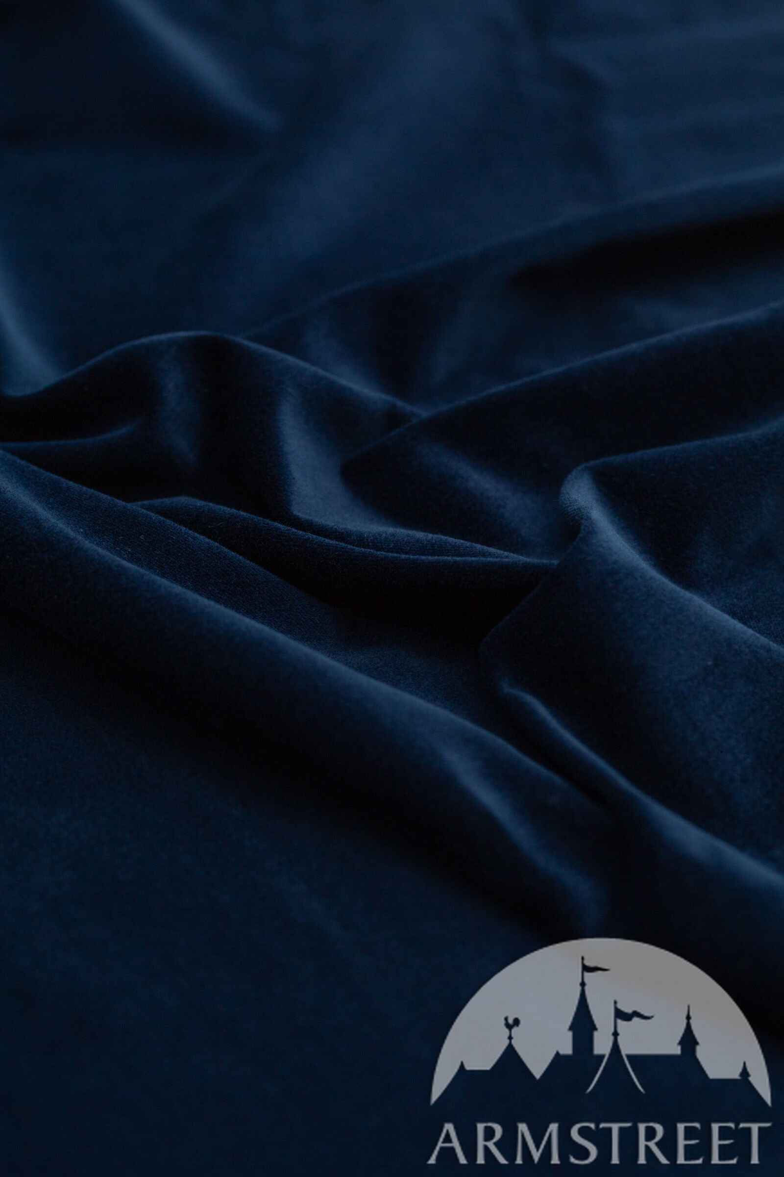 Dieser wunderschöne und dichte, 100 % natürliche Baumwollsamt in tiefem Blauton zeichnet sich durch eine Besonderheit aus: Der Flor verläuft entlang des horizontalen Schussfadens und nicht entlang des vertikalen Kettfadens. Bitte beachten Sie, dass diese Besonderheit das endgültige Aussehen Ihres Projekts beeinflussen kann, da die meisten Schnittmuster eine Ausrichtung entlang der Kettfäden voraussetzen. Dieser strapazierfähige und natürliche historische Stoff eignet sich perfekt für Korsetts, Akzente, Kopfbedeckungen und Accessoires und verleiht der Garderobe Ihrer historischen Figur ein neues Aussehen.