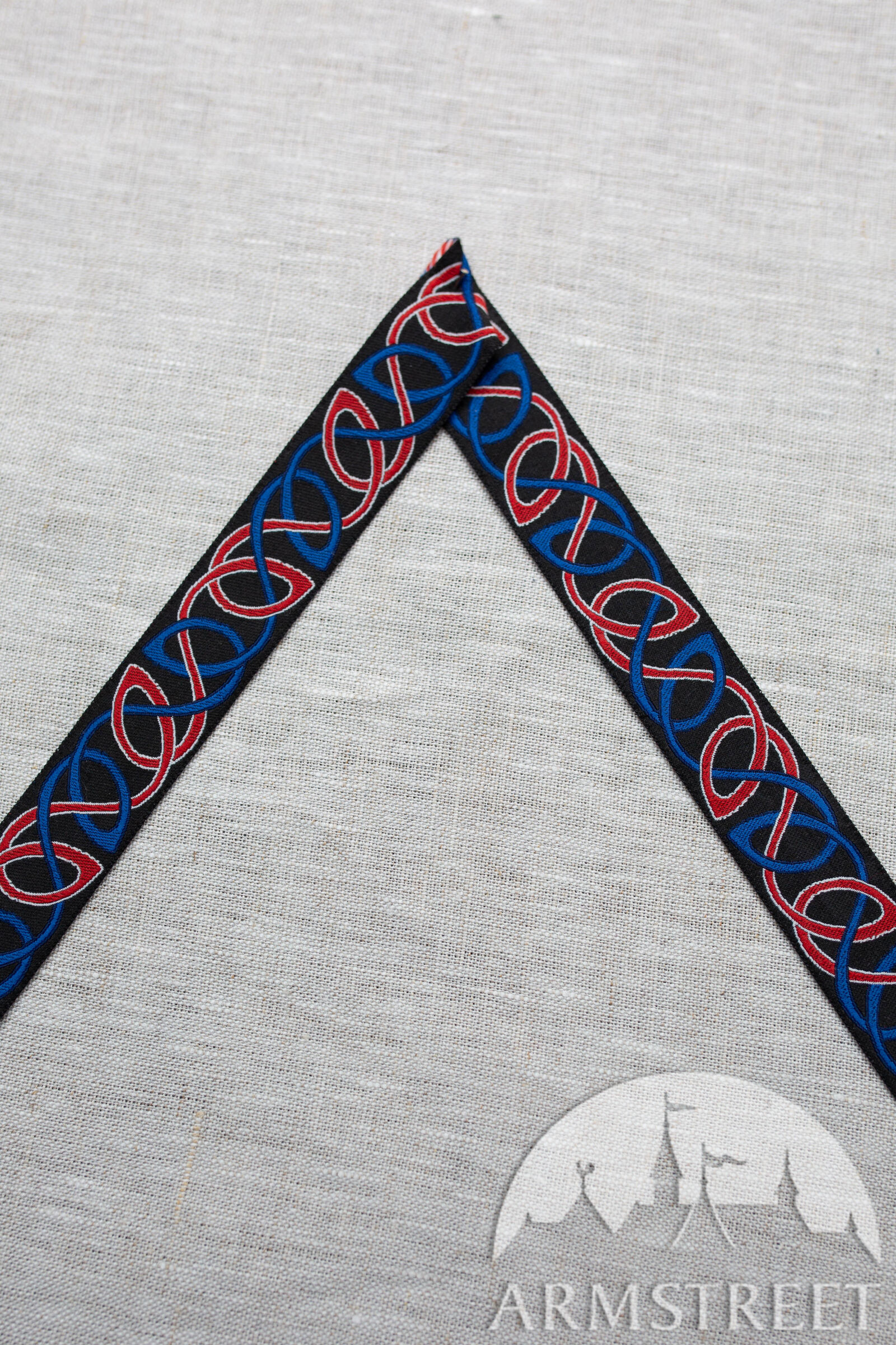 Wir konnten keine perfekte Borte für unsere ersten nordeuropäischen frühmittelalterlichen Kostüme finden, also haben wir unsere eigene entworfen! Unser talentiertes Designerteam hat gründlich keltische historische Funde recherchiert und dieses Wissen in ein authentisches, aber absolut einzigartiges Muster umgesetzt. Wer uns schon länger kennt, erinnert sich vielleicht an die Serien „Knyazhna Helga“ und „Knyaz Igor“, in denen diese Borten erstmals verwendet wurden.