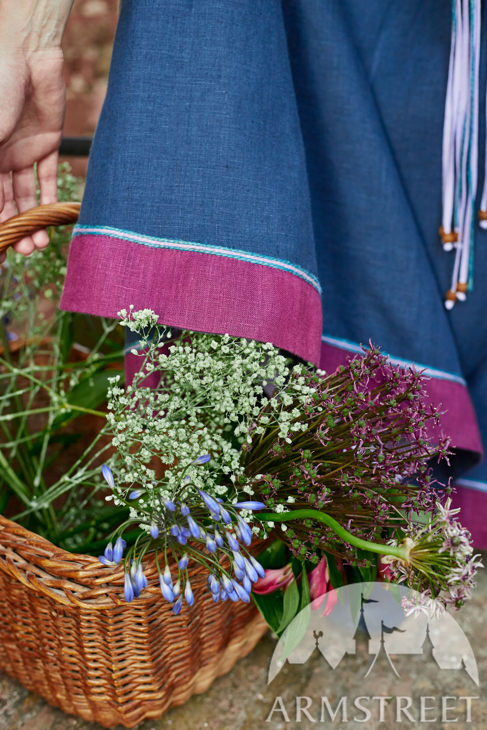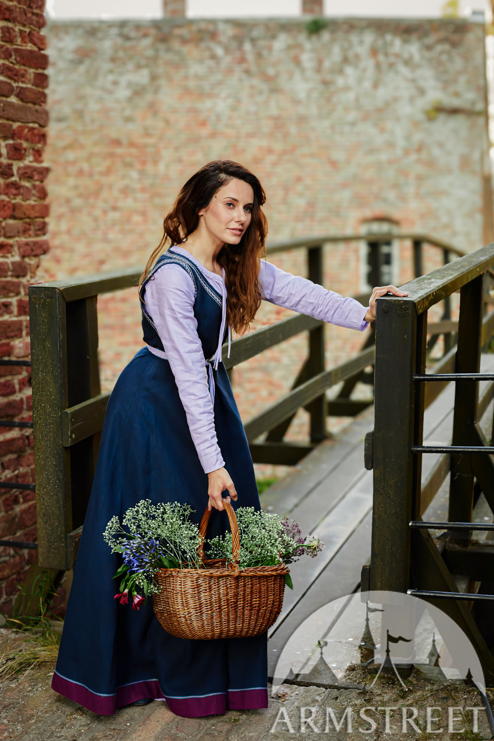 100 % Leinen, das wir für dieses wunderschöne Überkleid im mittelalterlichen Stil verwendet haben, ist weich, atmungsaktiv und hält dem Test der Zeit stand, egal in welchem Klima Sie es tragen werden. Ziehen Sie dieses ärmellose Kleid über das Hemdchen und die Tunika und fühlen Sie sich selbst in feuchten und kühlen Nächten im frühen Herbst wohl. Oder tragen Sie es an heißen Sommertagen über dem feinen Leinenhemdchen und bleiben Sie kühl, während Sie trotzdem perfekt zeitgemäß aussehen. Das charakteristische Merkmal mittelalterlicher Kleider von ArmStreet ist, dass wir gerne so viel Stoff verwenden, wie für die Rockbreite und Bodenlänge nötig ist, um das schlichte Muster in eine fließende Silhouette zu verwandeln.