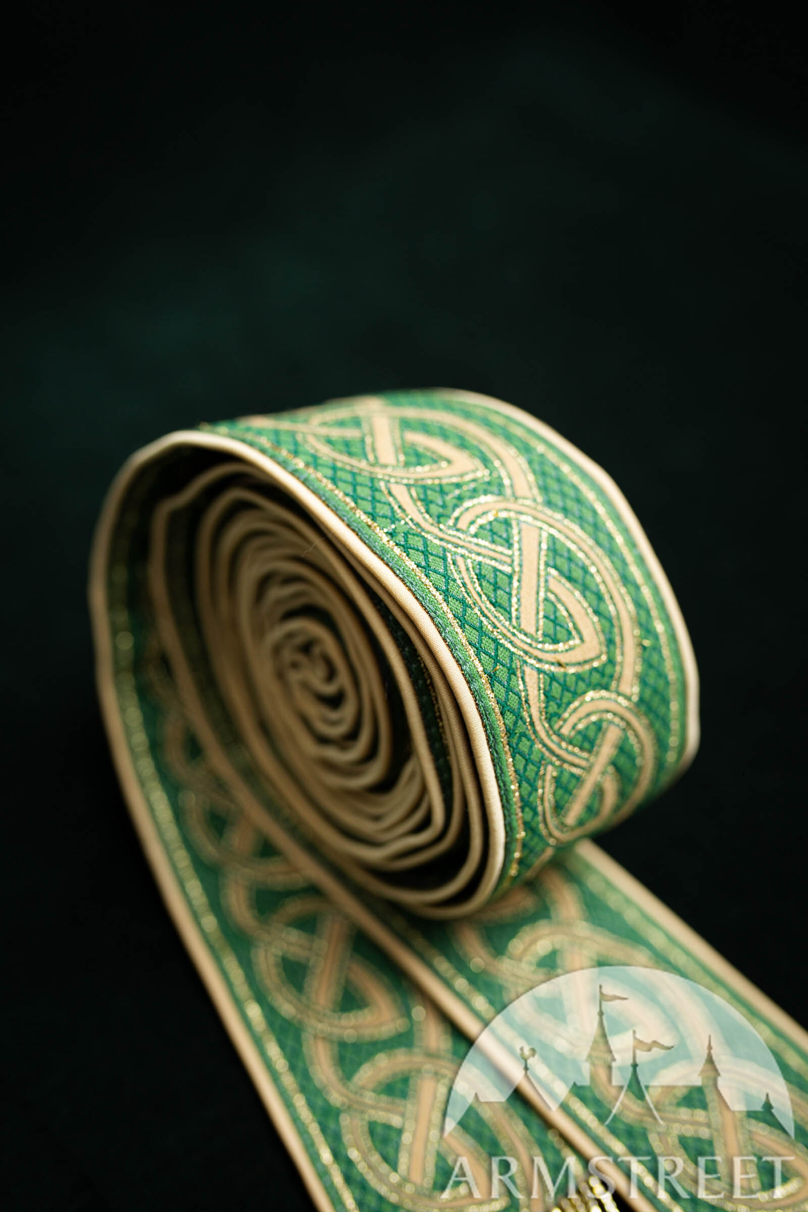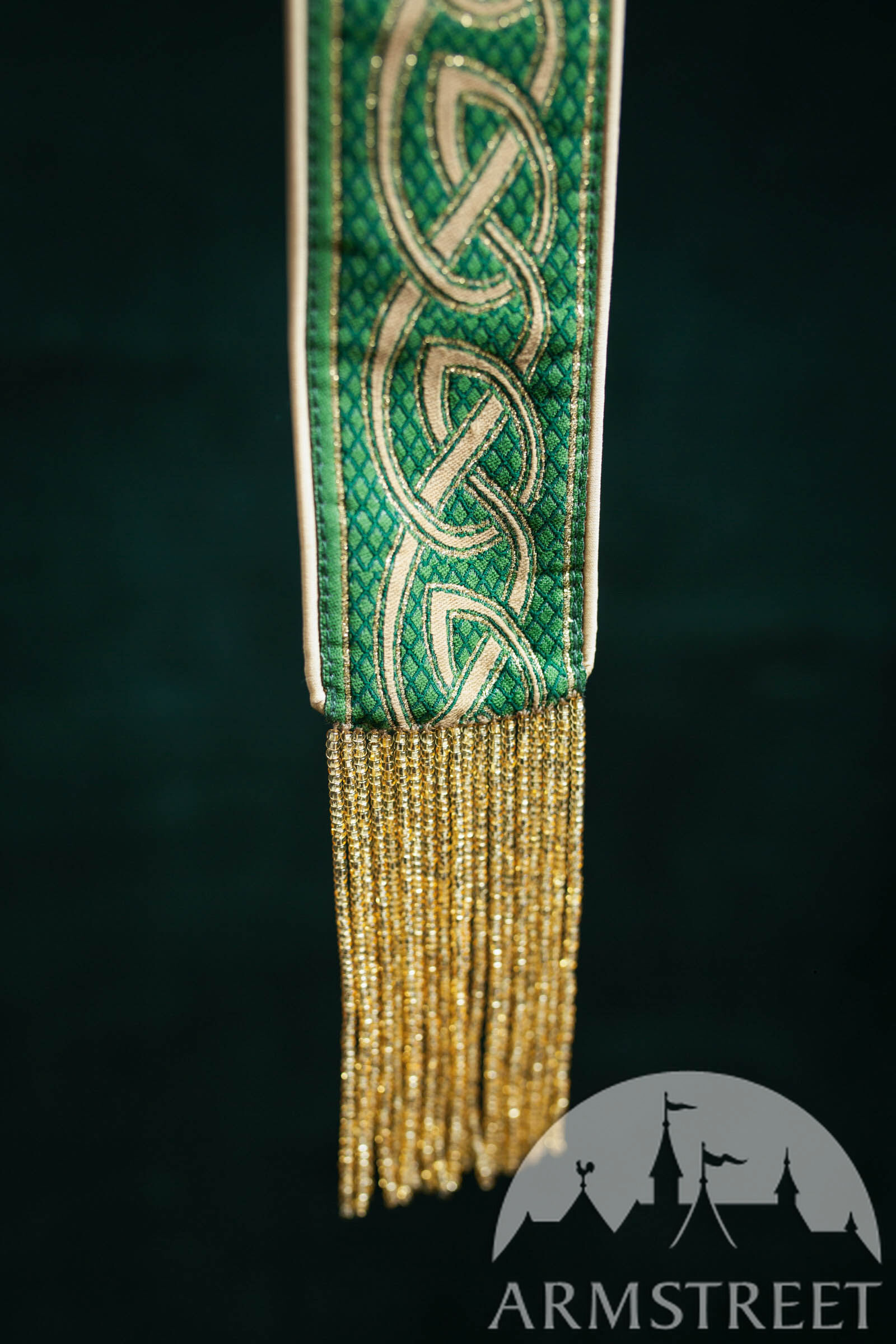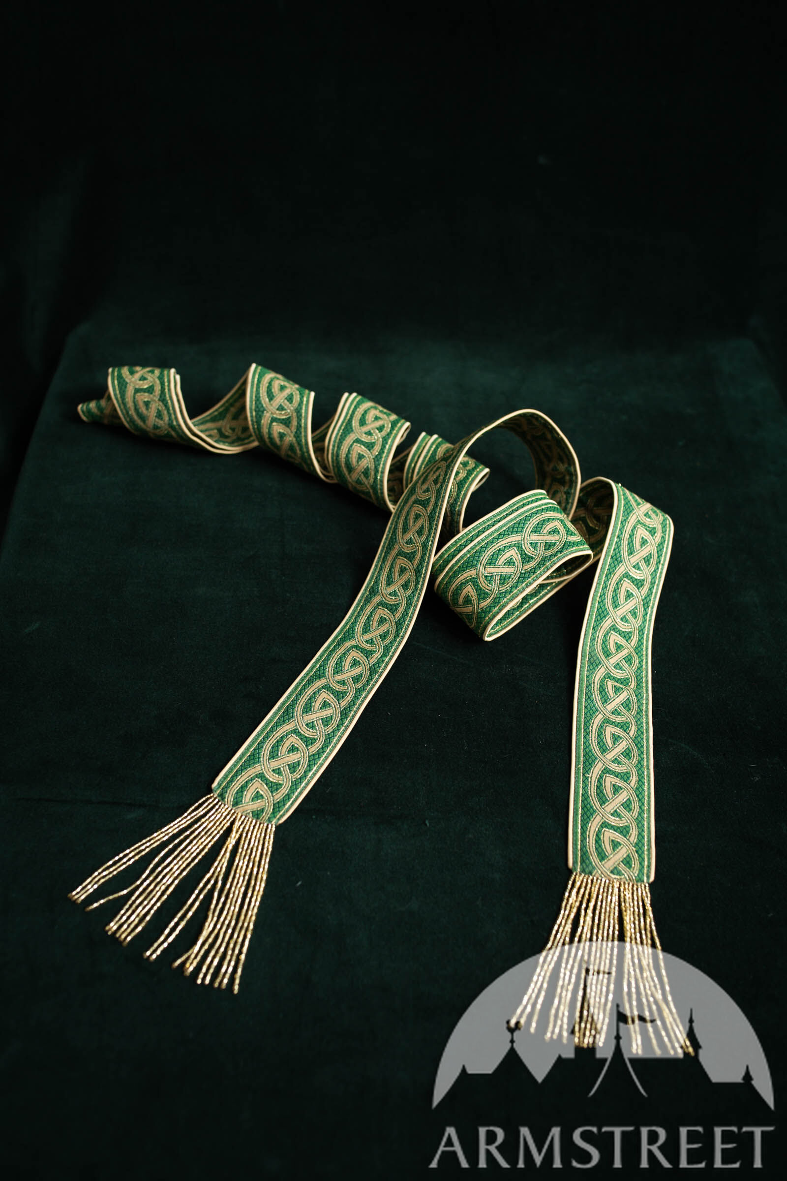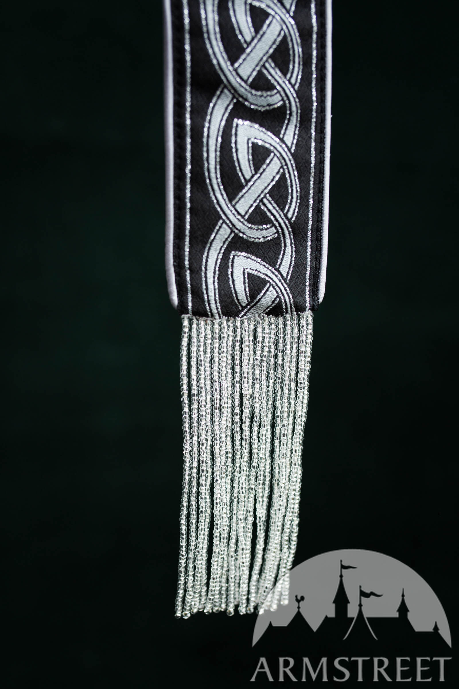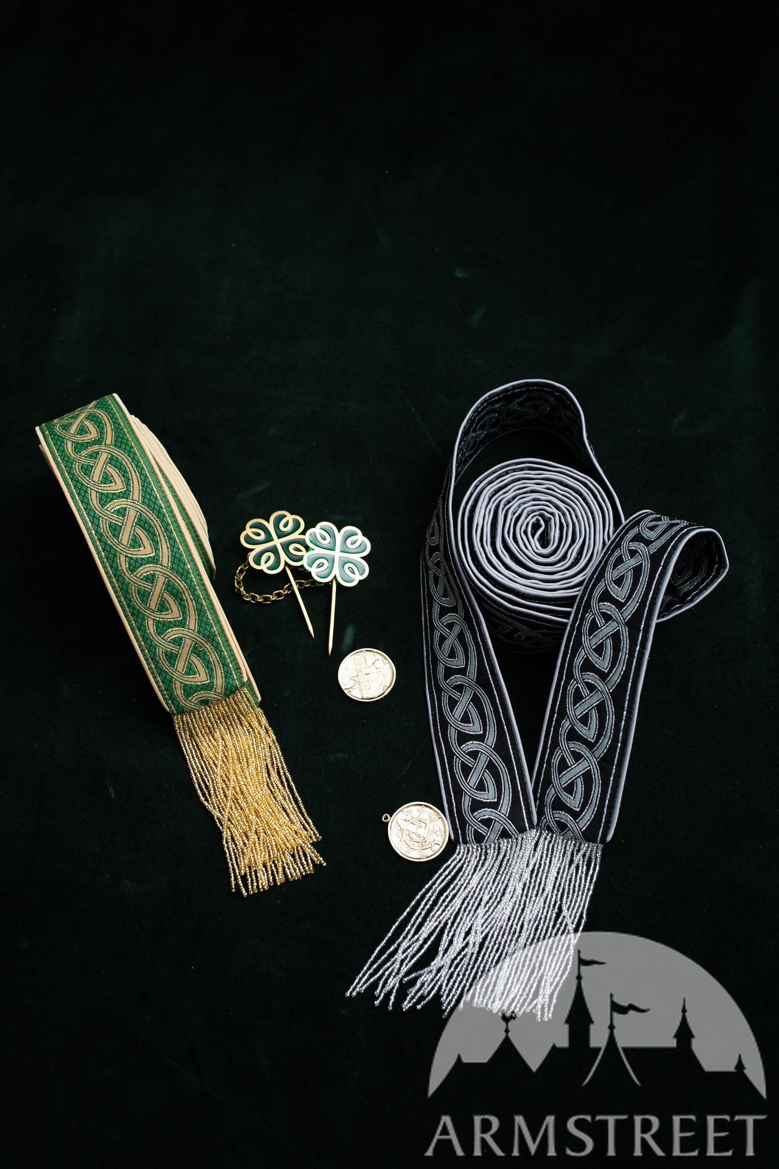 Dieses Modell ist besonders schick, breit (5 cm) und lang. Er ist beidseitig mit einer Borte verziert, was ihn sehr vielseitig macht, und verfügt über tolle Details wie Perlenfransen und eine Kordelverzierung am Rand, die die Kanten voluminöser wirken lässt und Stil und Qualität unterstreicht. Insgesamt ein perfekt universeller Gürtel, der als raffiniertes Accessoire dient und Ihrem Outfit Tiefe verleiht.