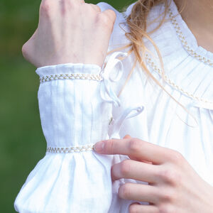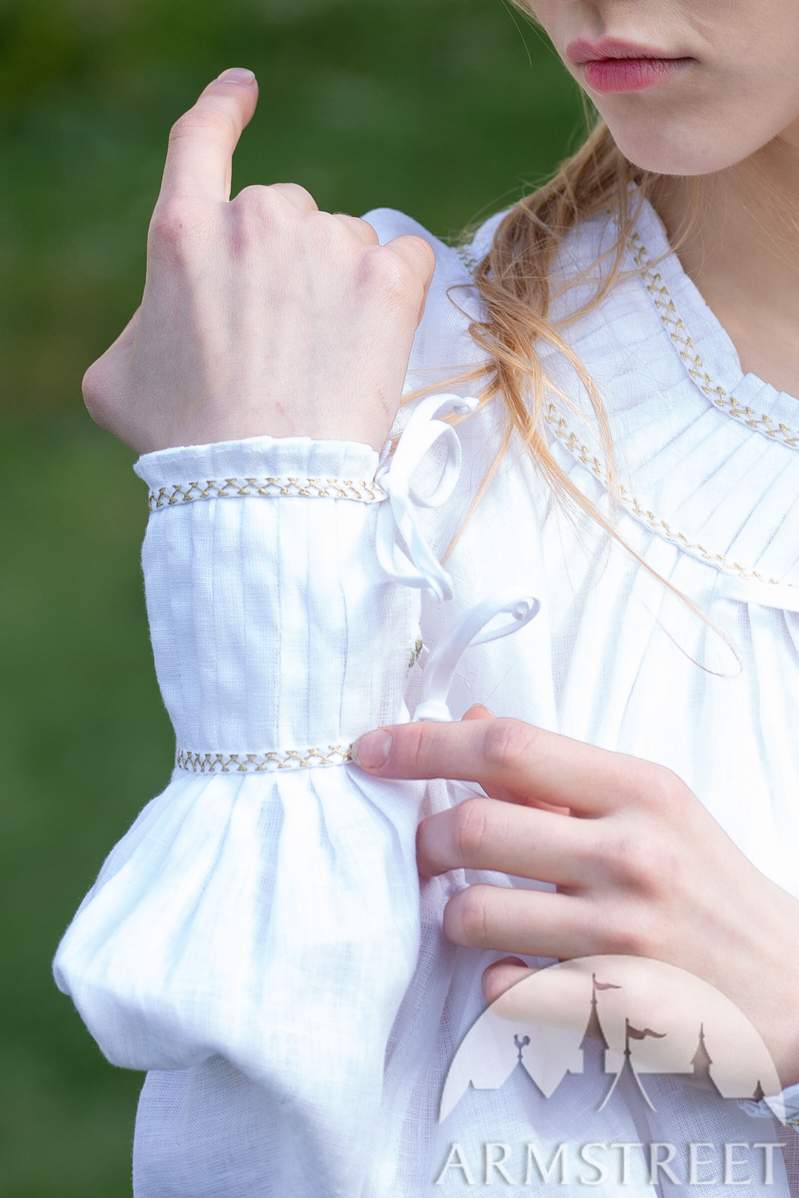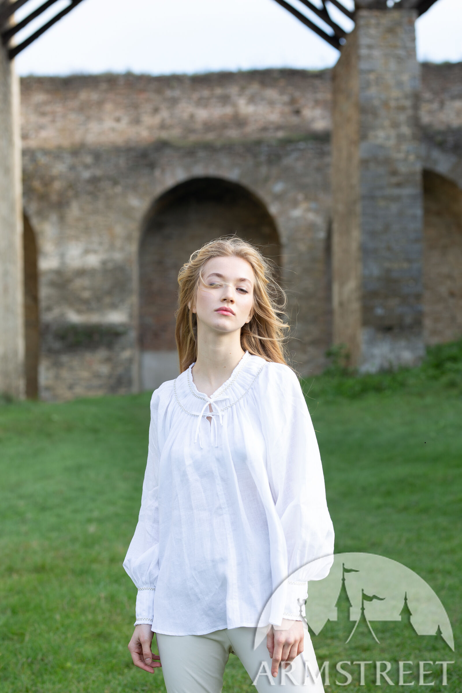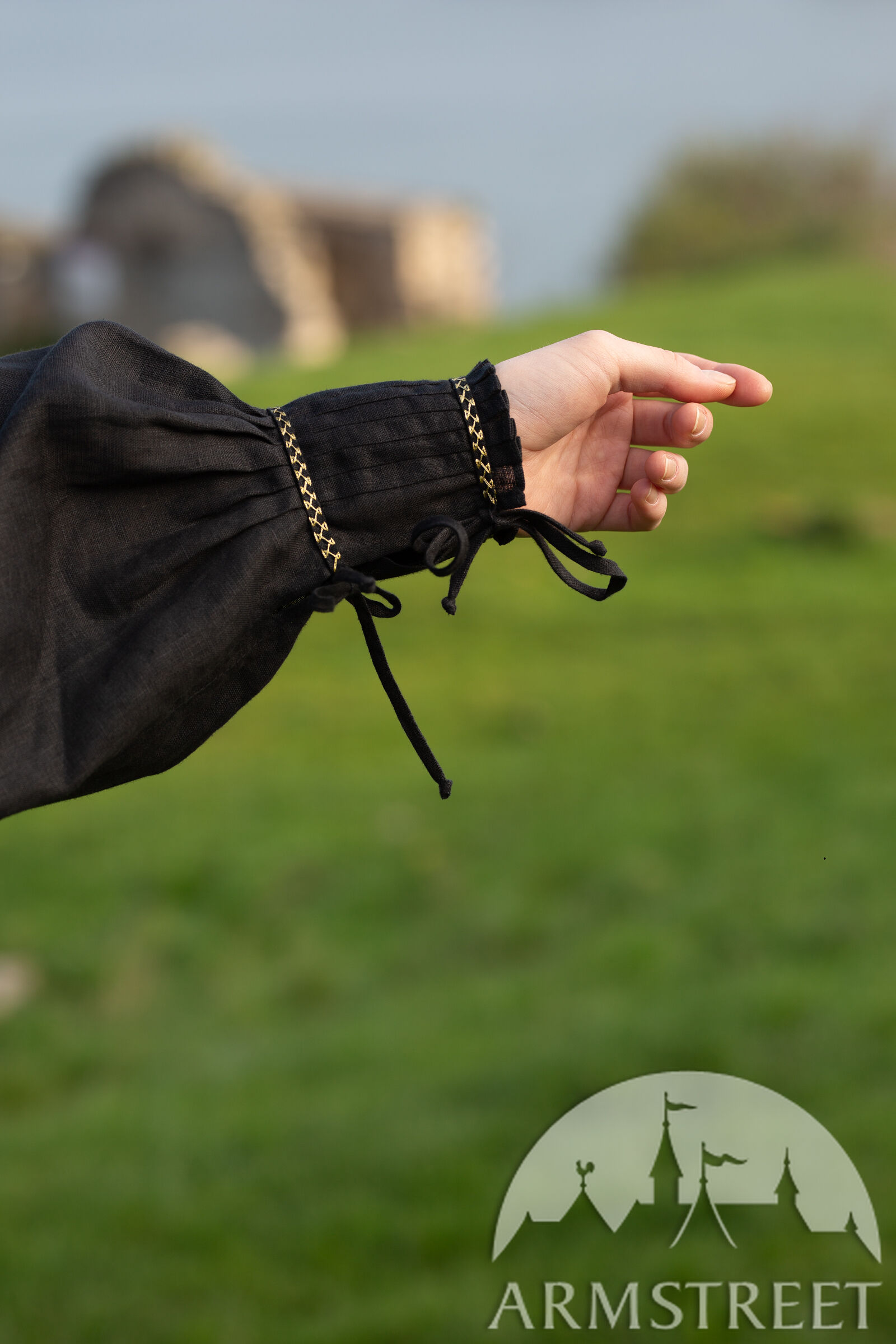 Dieses wunderschöne Shirt ist eine aktualisierte, verzierte Version unseres Bestsellers „Dunkler Stern“. Basierend auf einer Reihe historischer Beispiele aus dem 15. und 16. Jhdt haben wir historische und fantasievolle Inspirationen kombiniert, um ein vielseitiges, schmeichelhaftes Hemd zu schaffen, das Sie gerne tragen werden. Obwohl Frauen im Mittelalter keine so männliche Kleidung getragen hätten, existieren wir in diesen Zeiten nicht mehr. Deshalb sagen wir, warum nicht!