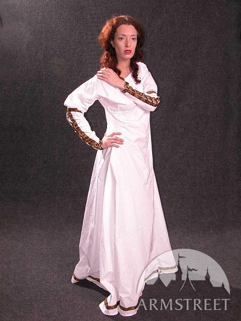 Dieses klassische, mittelalter Tunika/Hemd ist aus qualitativ hochwertigem Baumwolle hergestellt. Das Hemd ist mit Bordüren verziert und hat schöne Knöpfe an Ärmeln. Klassisches, mittelalterliches Design und eine wunderbare Stoffqualität machen aus diesem Hemd ein unentbehrliches Teil Ihrer mittelalterlichen Garderobe.