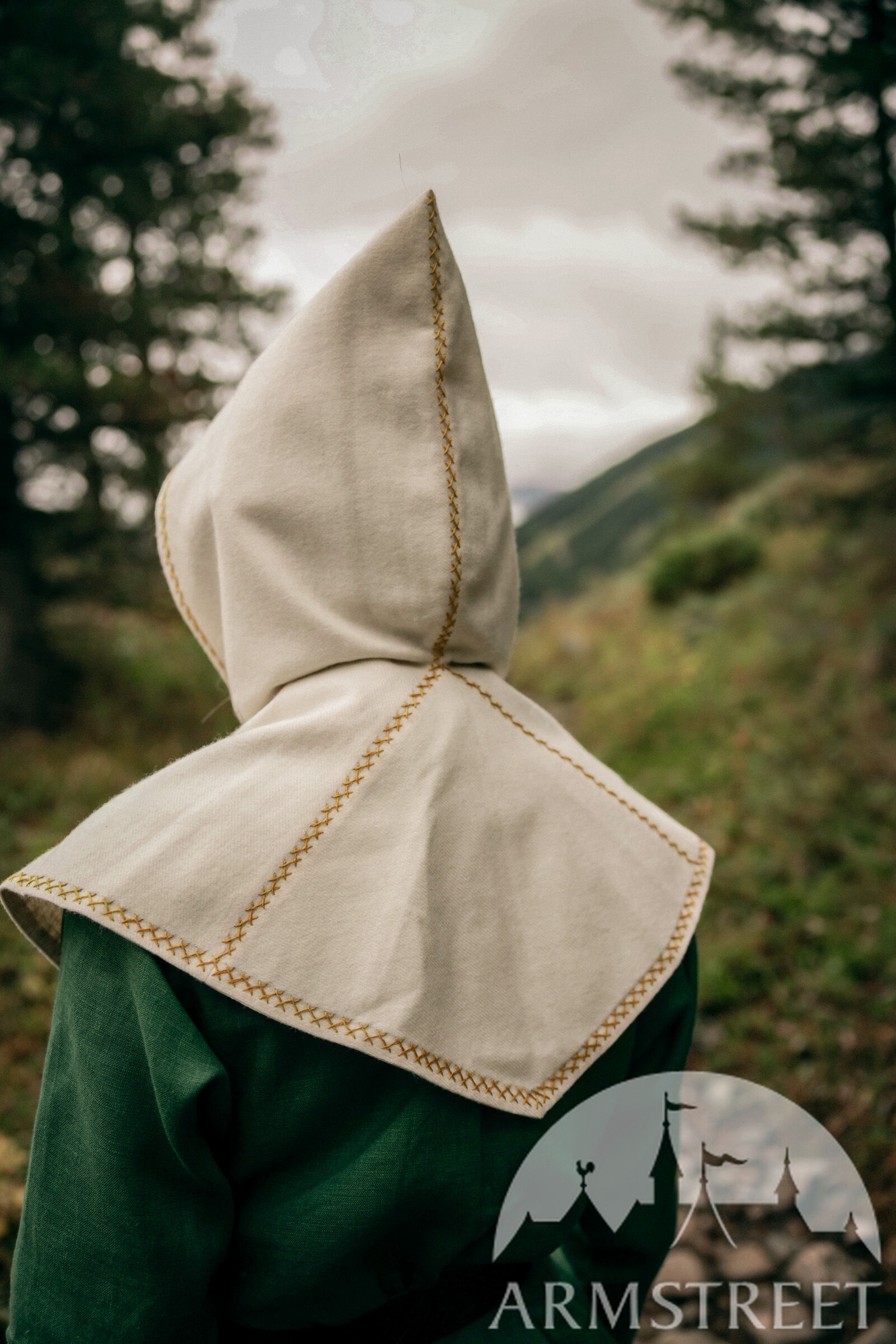 Die Haube zählt zu den vielseitigsten und praktischsten Kleidungsstücken des Mittelalters. Dieses Muster ist das Beste, was wir in puncto Einfachheit und Funktionalität anbieten können. Sie erfüllt viele Zwecke – vom Schutz vor Wind und Wetter bis hin zum Verbergen des Gesichts bei riskanten Missionen. Sie spielt auch eine wichtige Rolle als Element Ihrer Kleidung und verändert deren Stil und Authentizität, wenn sie mit schlichter Kleidung kombiniert wird. Die weiße Haube ist sogar noch mehr: Sie vereint täuschende Optik und versteckte Natur perfekt.