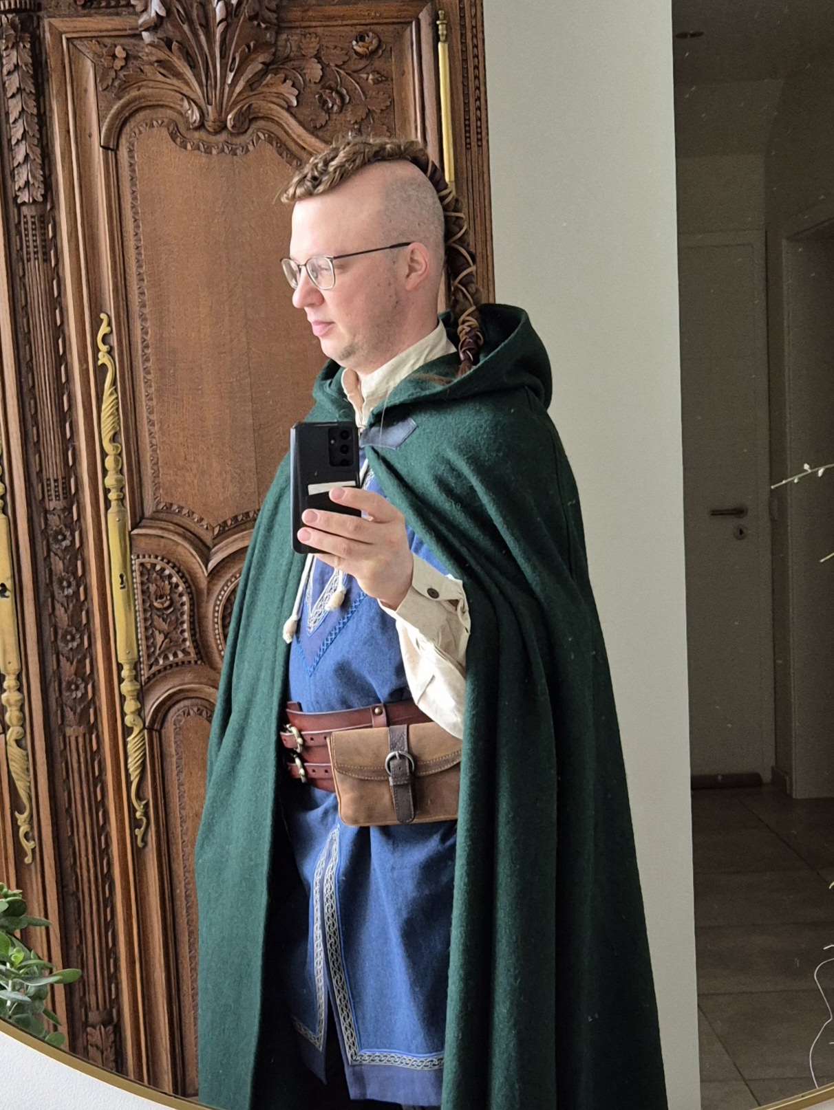Für diese Tunika haben wir die besten Kombinationen aus Wolltönen, Leinen-Akzenten, kontrastierenden Borten und Veredelungen ausgewählt. Nachdem wir für jede Farbkombination sowohl kontrastierende als auch gleichfarbige Leinenhandnähte um die Hanfschnur herum ausprobiert haben, bieten wir Ihnen nur die besten Lösungen. Diese Tunika verkörpert den Entdeckergeist der Wikinger und ist bereit, Sie auf Ihren eigenen Abenteuern zu begleiten.