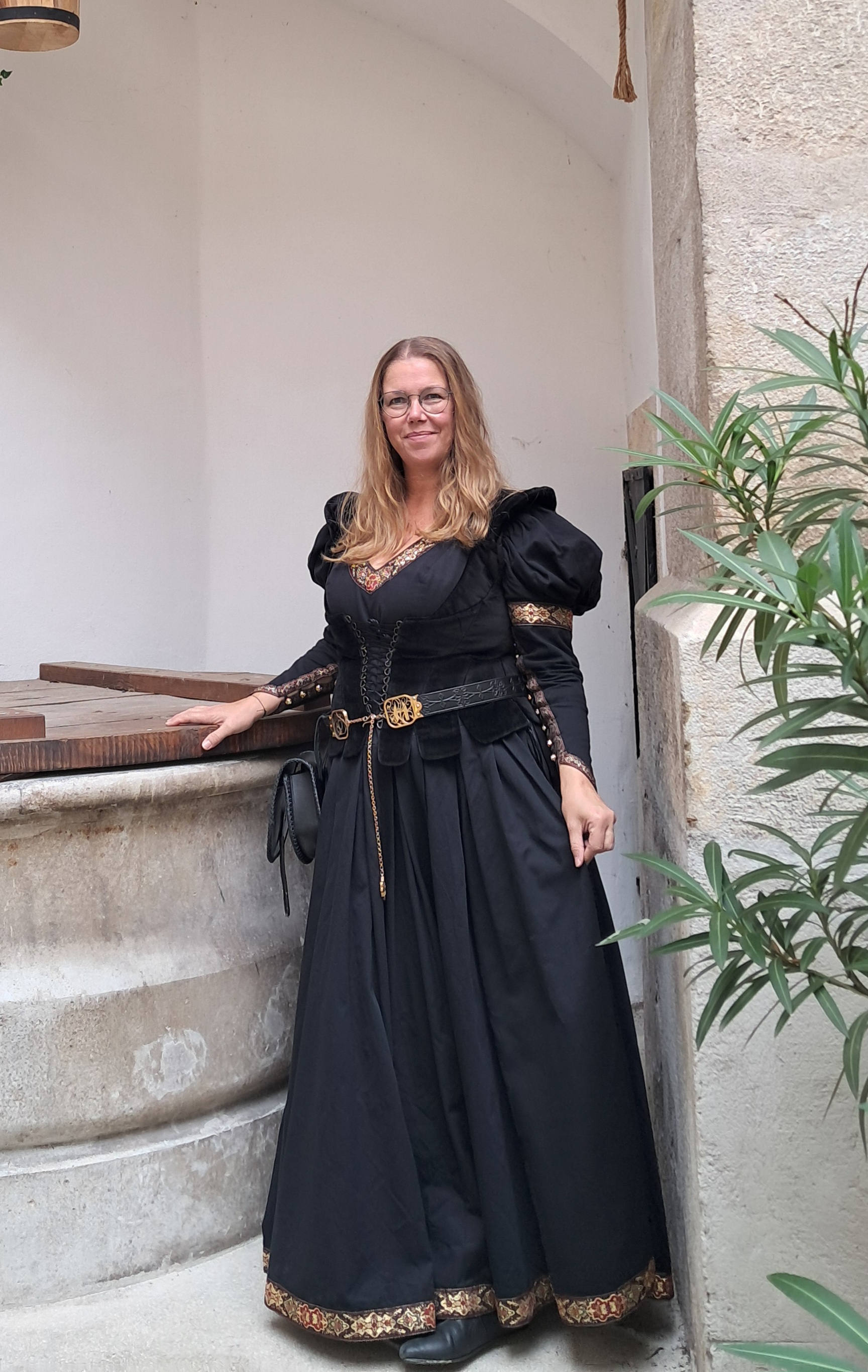 Das Modell in Weiß mit einer roten Borte finden Sie hier: https://armstreet.de/shop/gewandung/fantasy-kleid-die-gefundene-prinzessin; ein sehr schönes Kleid in Burgund mit einer bunten Borte ist hier: https://armstreet.de/shop/gewandung/mittelalter-kleid-prinzessin-im-exil