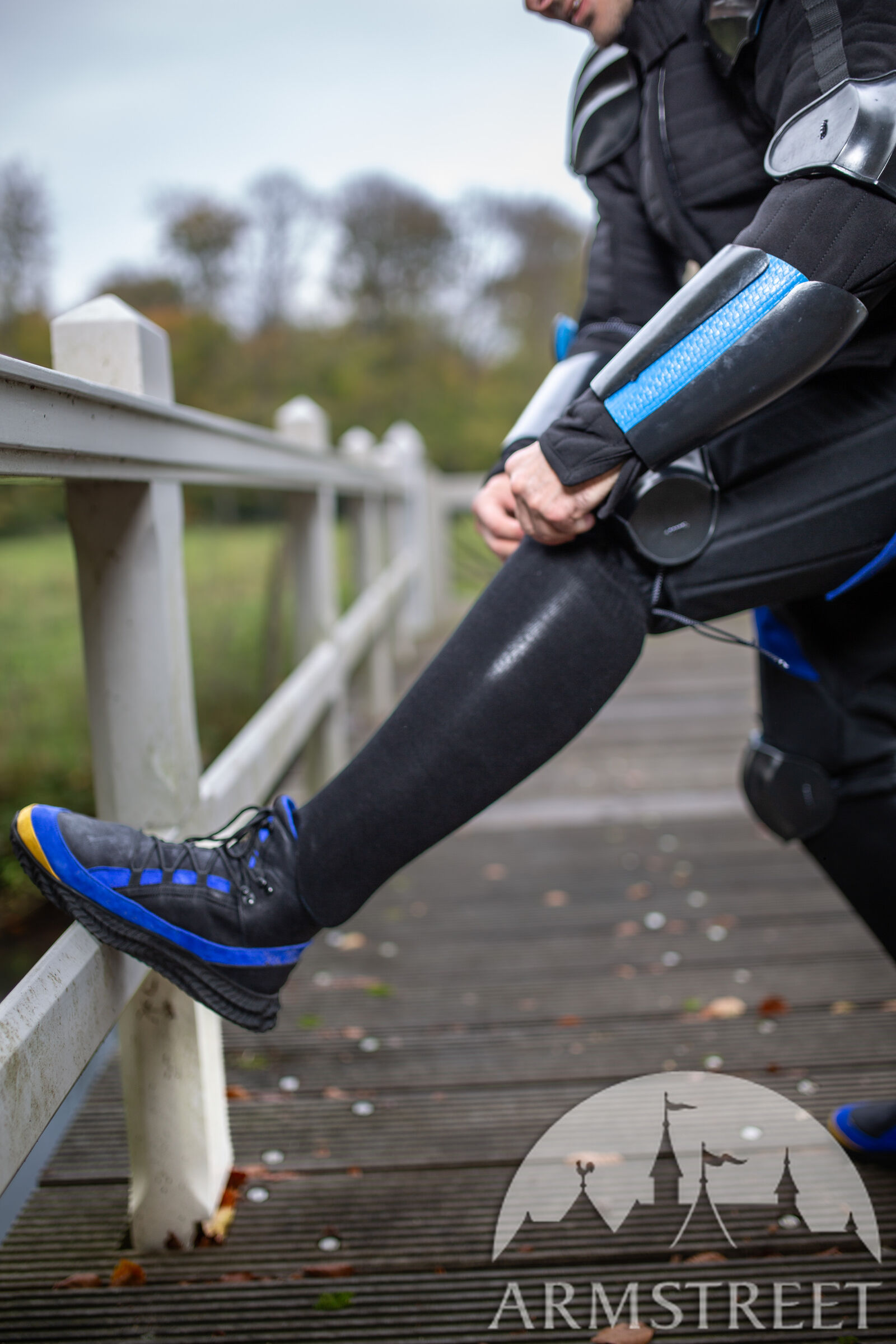 Viele Fechter tragen ihre Schienbeinschoner in Strümpfen, was eine kleine Umstellung erfordert. Zwar gibt es diverse Kniestrümpfe auf dem Markt, doch die meisten Sport-Kniestrümpfe bieten eine gewisse Kompression und lassen wenig Platz für Schienbeinschoner.