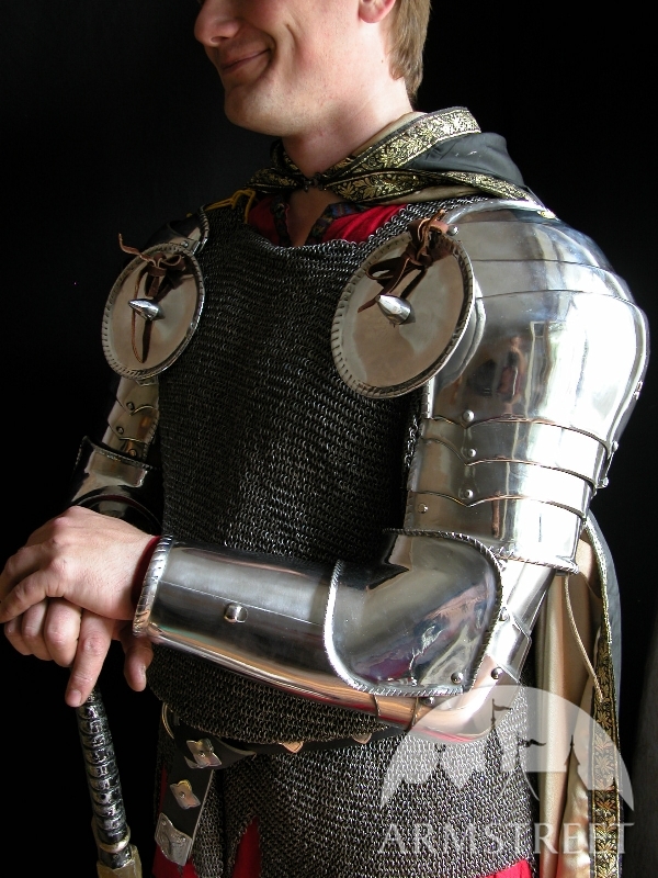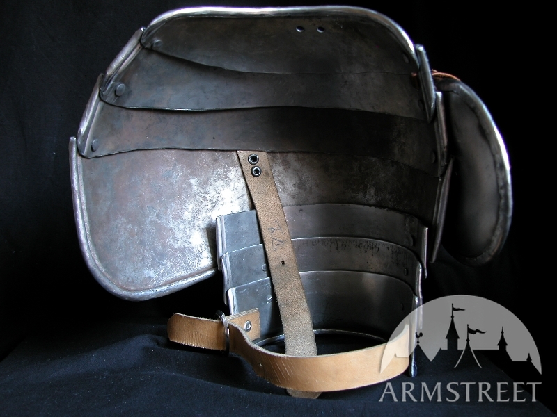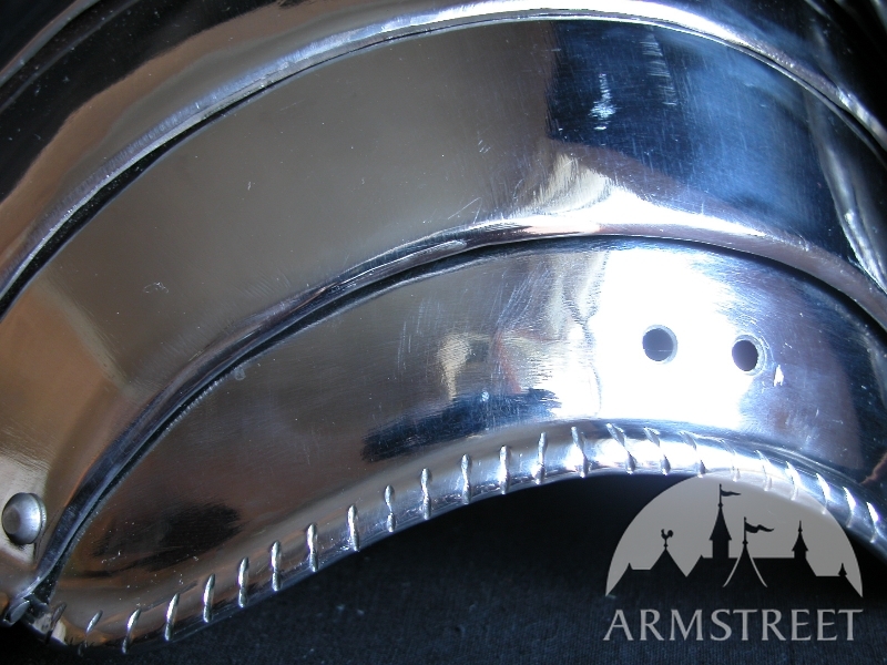 Unsere Rüstungen sind ausschließlich handgefertigt. Wir verwenden keine modernen, mechanischen Prozesse in der Fertigung. Jedes Detail der Rüstung wird aus Flachstahl komplett handgefertigt und auch von Hand poliert. Das Ergebnis ist eine Rüstung, die dem historischen Prototyp sehr nahe kommt. Handarbeit gibt uns auch die Möglichkeit die dicke von Metall an wichtigen Stellen so zu gestallten, das die Rüstung beste Schutz für Kämpfer gibt.