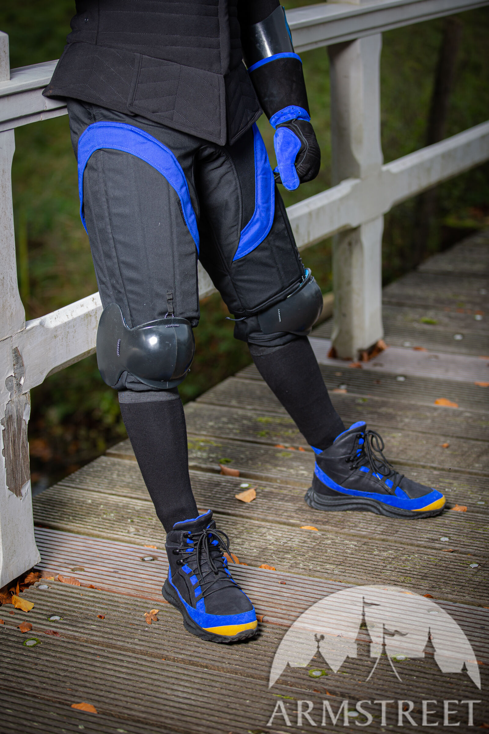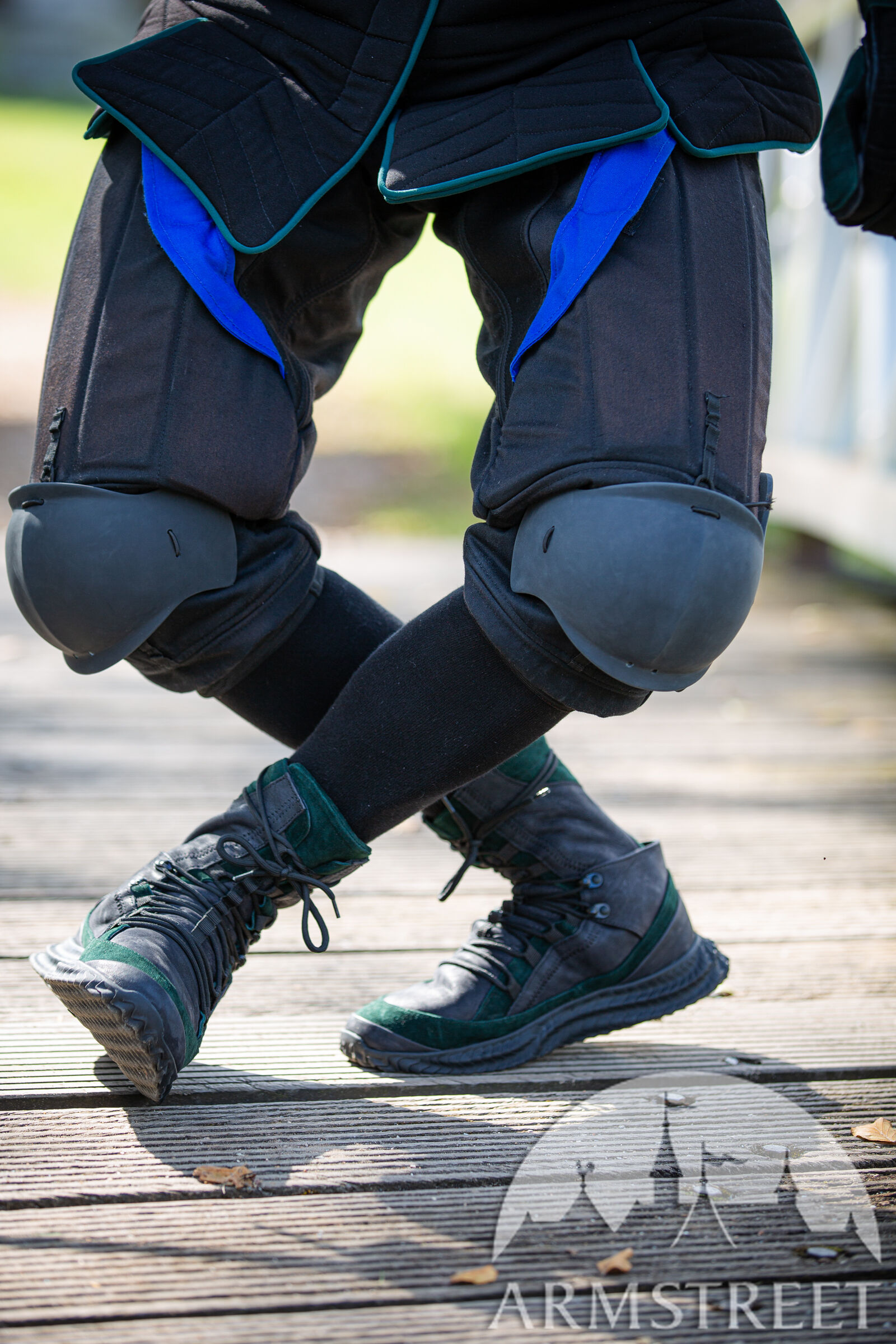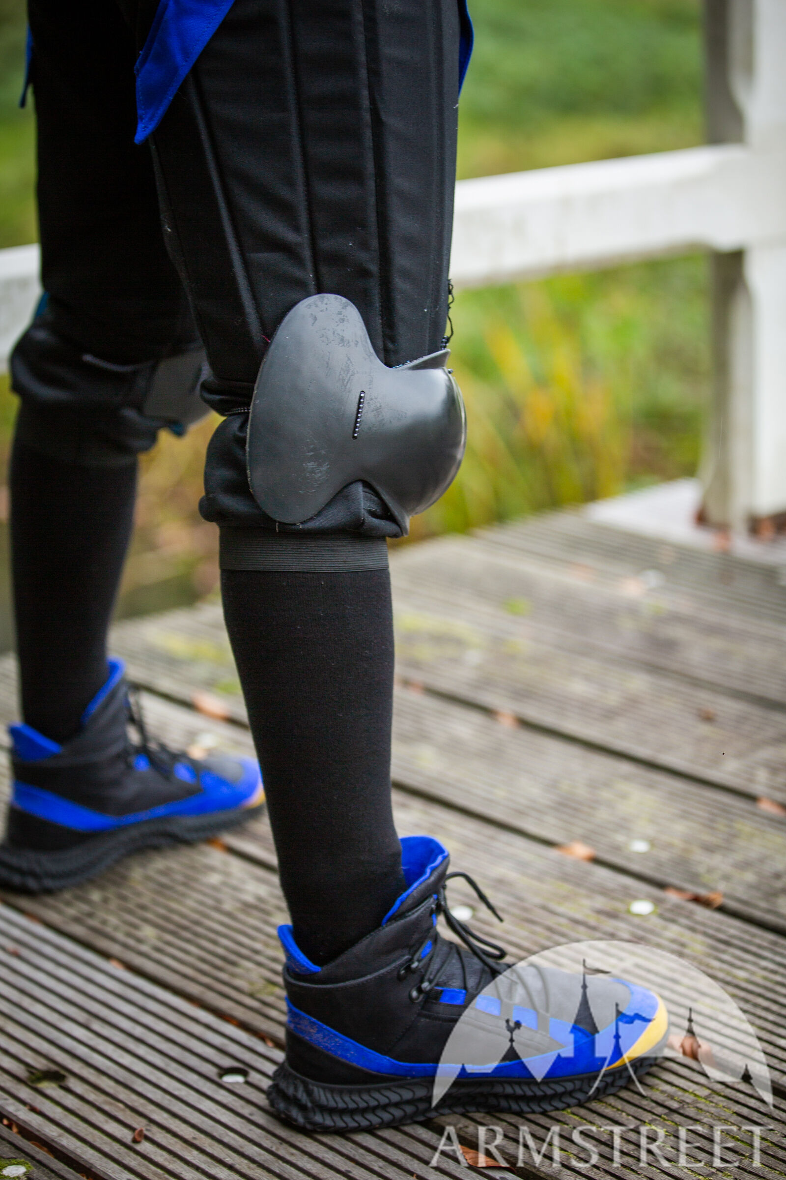 Diese Knie wurden in der rauen Umgebung osteuropäischer Turniere und in unserem eigenen Club mit den erfahrensten Ausbildern und Fechtern getestet. Wir haben auch Vorschriften zur Seitenknochenabdeckung berücksichtigt, die für viele Formate innerhalb einer US-amerikanischen Schwertkampfgemeinschaft und in einigen osteuropäischen Ländern, insbesondere Polen, typisch sind. Aus unserer eigenen Erfahrung ist es einfach, Ihre Seitenknochen zu schützen, und dort getroffen zu werden, ist schlecht, also haben unsere Knie diese Seitenelemente, die Ihre Bewegungen überhaupt nicht einschränken, aber eines Tages eine sehr wichtige Arbeit leisten werden. ArmStreet wäre nicht ArmStreet, wenn wir keine Innovationen in unser Produkt einbringen würden, also haben wir einen völlig neuen Zweikomponenten-Kunststoff verwendet, der zähflüssiger ist und hervorragende Stoßdämpfungseigenschaften bietet und niemals reißt.