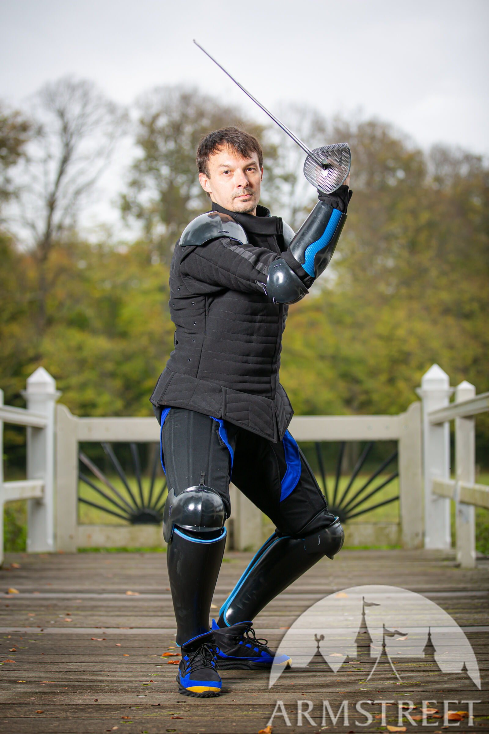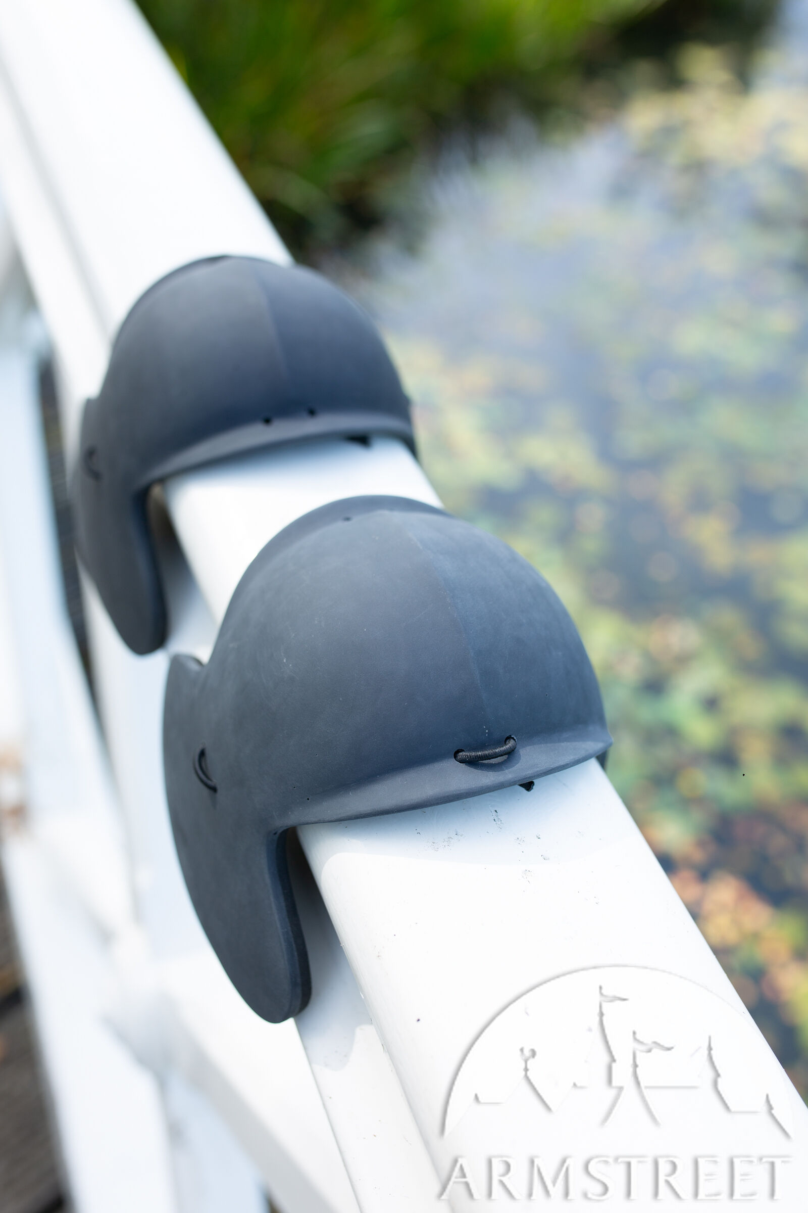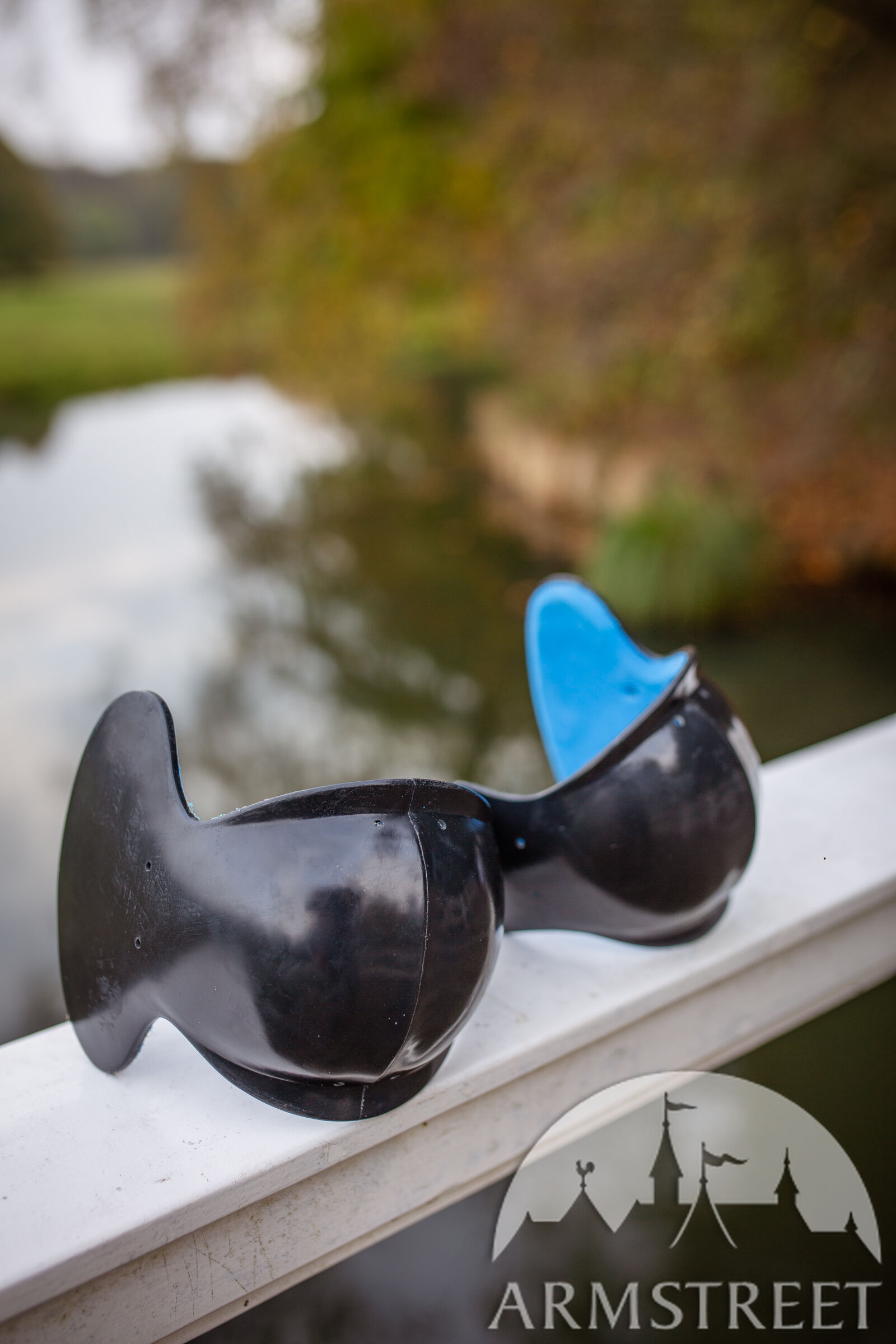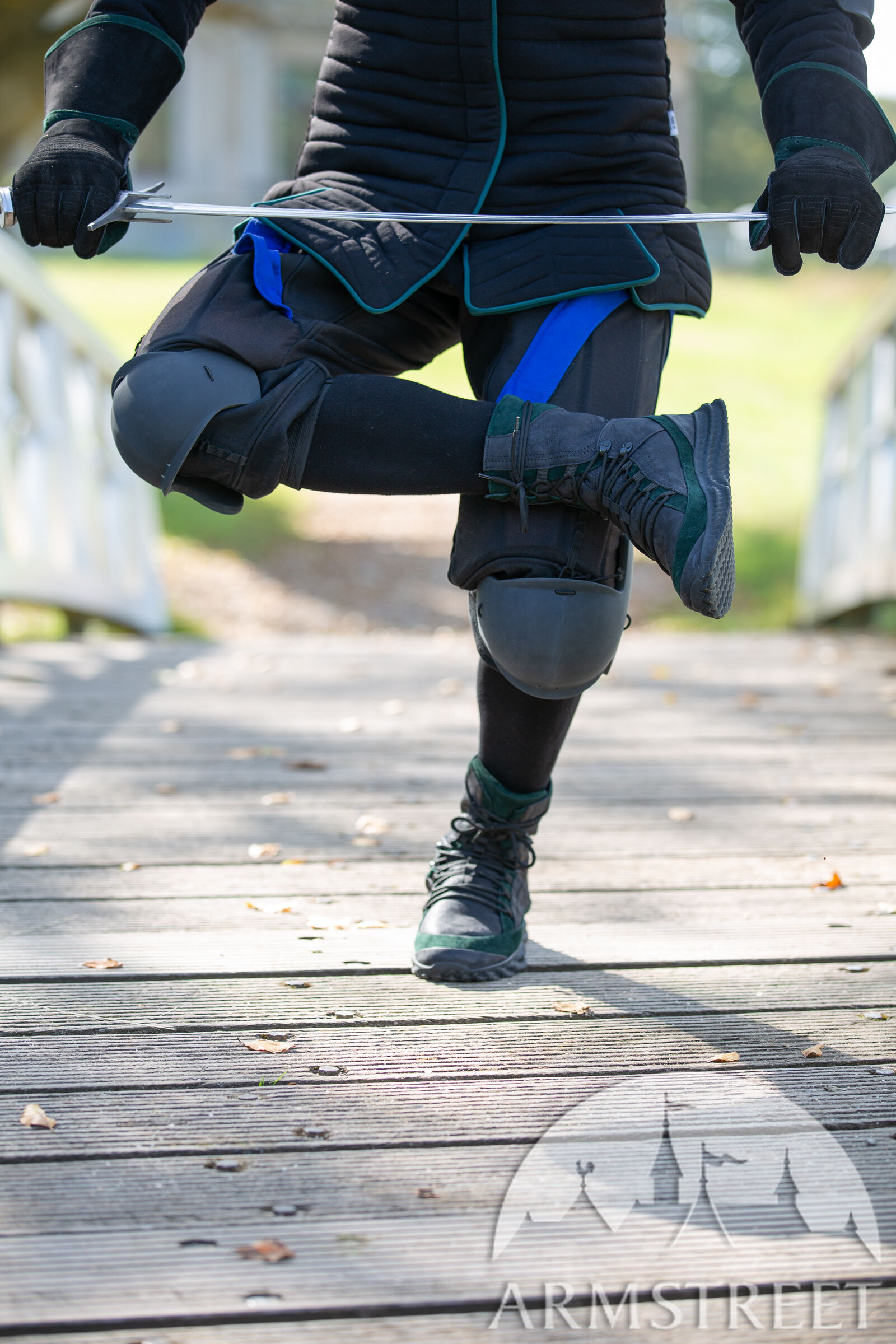Diese Knie wurden in der rauen Umgebung osteuropäischer Turniere und in unserem eigenen Club mit den erfahrensten Ausbildern und Fechtern getestet. Wir haben auch Vorschriften zur Seitenknochenabdeckung berücksichtigt, die für viele Formate innerhalb einer US-amerikanischen Schwertkampfgemeinschaft und in einigen osteuropäischen Ländern, insbesondere Polen, typisch sind. Aus unserer eigenen Erfahrung ist es einfach, Ihre Seitenknochen zu schützen, und dort getroffen zu werden, ist schlecht, also haben unsere Knie diese Seitenelemente, die Ihre Bewegungen überhaupt nicht einschränken, aber eines Tages eine sehr wichtige Arbeit leisten werden. ArmStreet wäre nicht ArmStreet, wenn wir keine Innovationen in unser Produkt einbringen würden, also haben wir einen völlig neuen Zweikomponenten-Kunststoff verwendet, der zähflüssiger ist und hervorragende Stoßdämpfungseigenschaften bietet und niemals reißt.