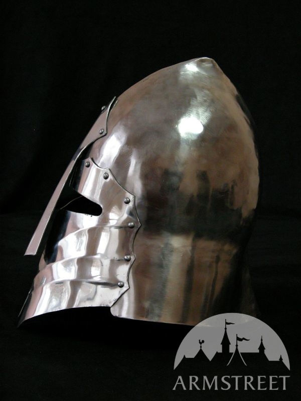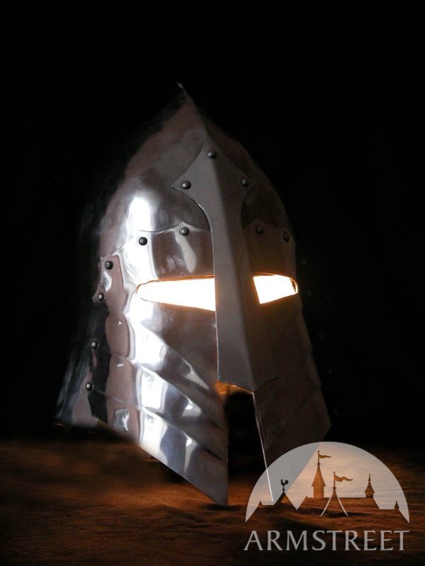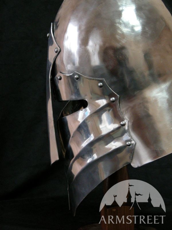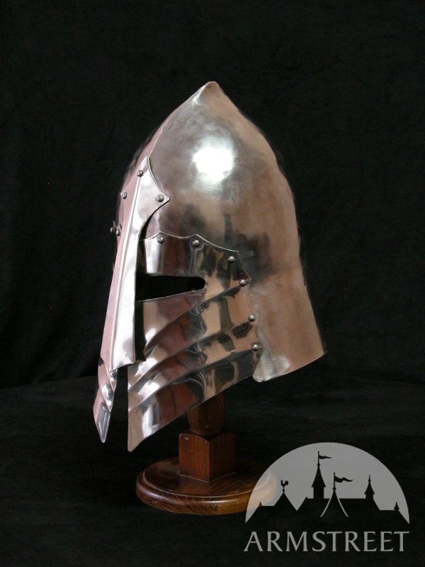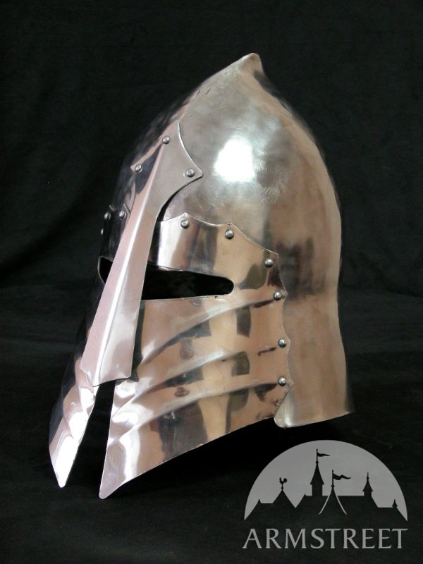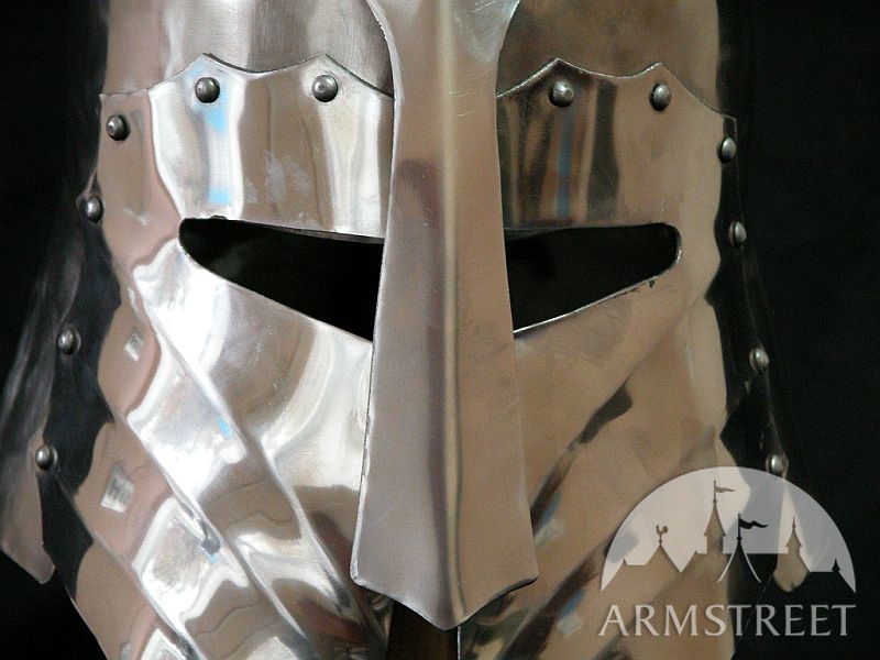 Grosartige Kampfhelm. Der Helm entspricht in Design den klassischen mittelalterlichen Barbuta Helm, ist aber in Fantasie Stil gefertigt. Dieser Helm wird aus 1,5 mm starkem, kaltgewalztem Stahl handgefertigt