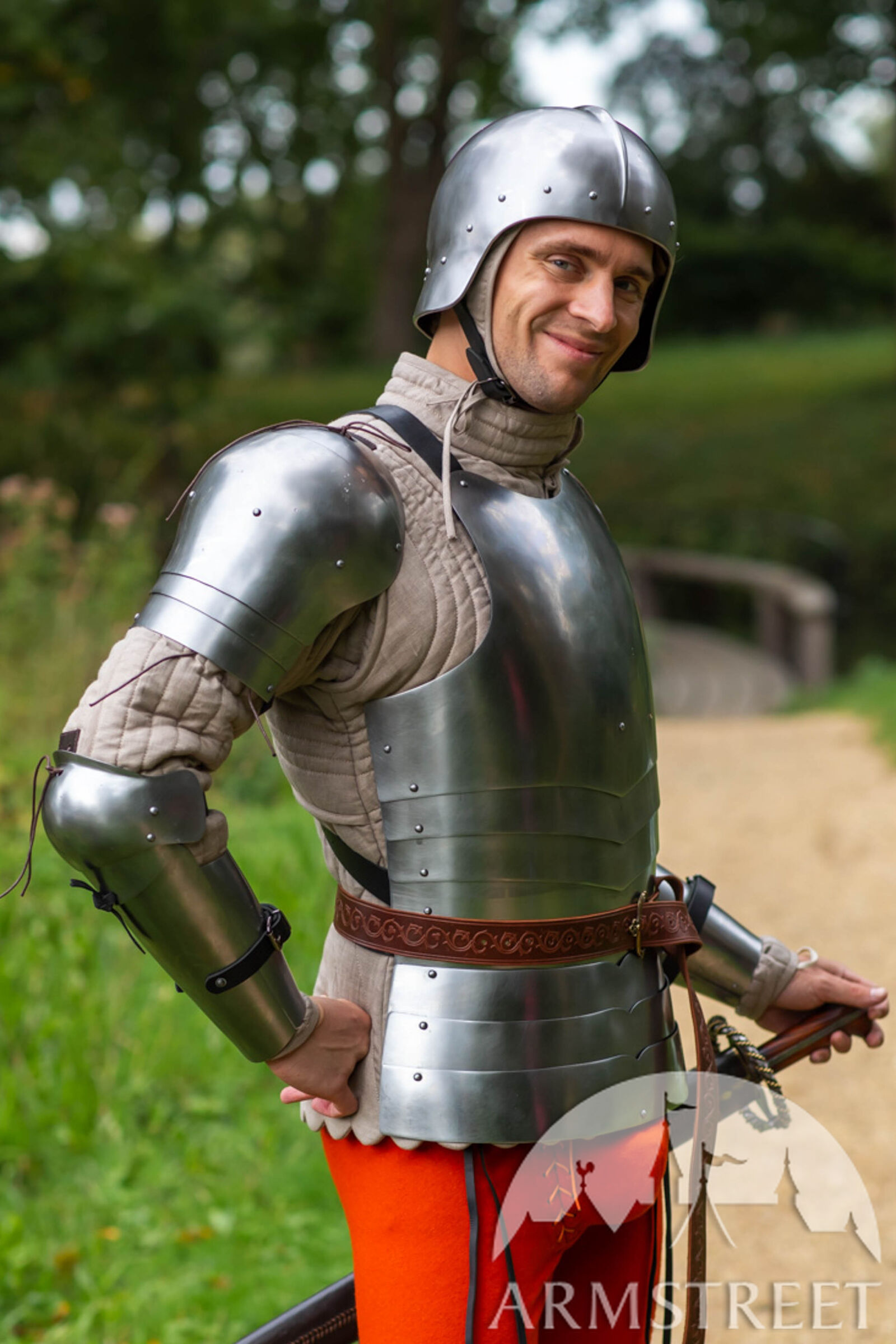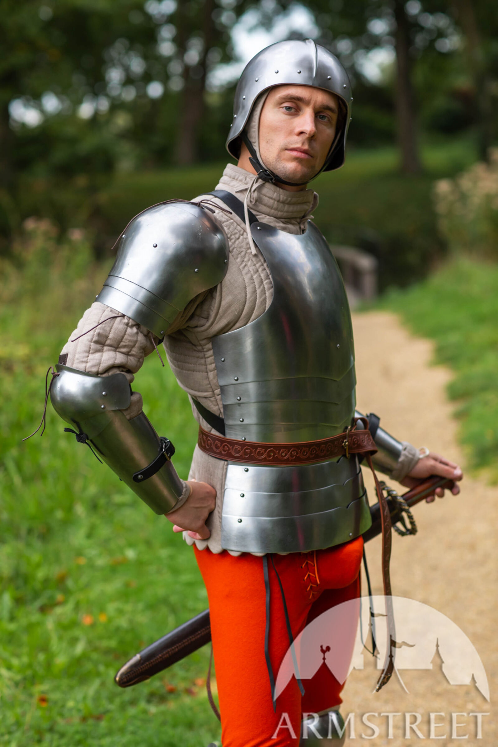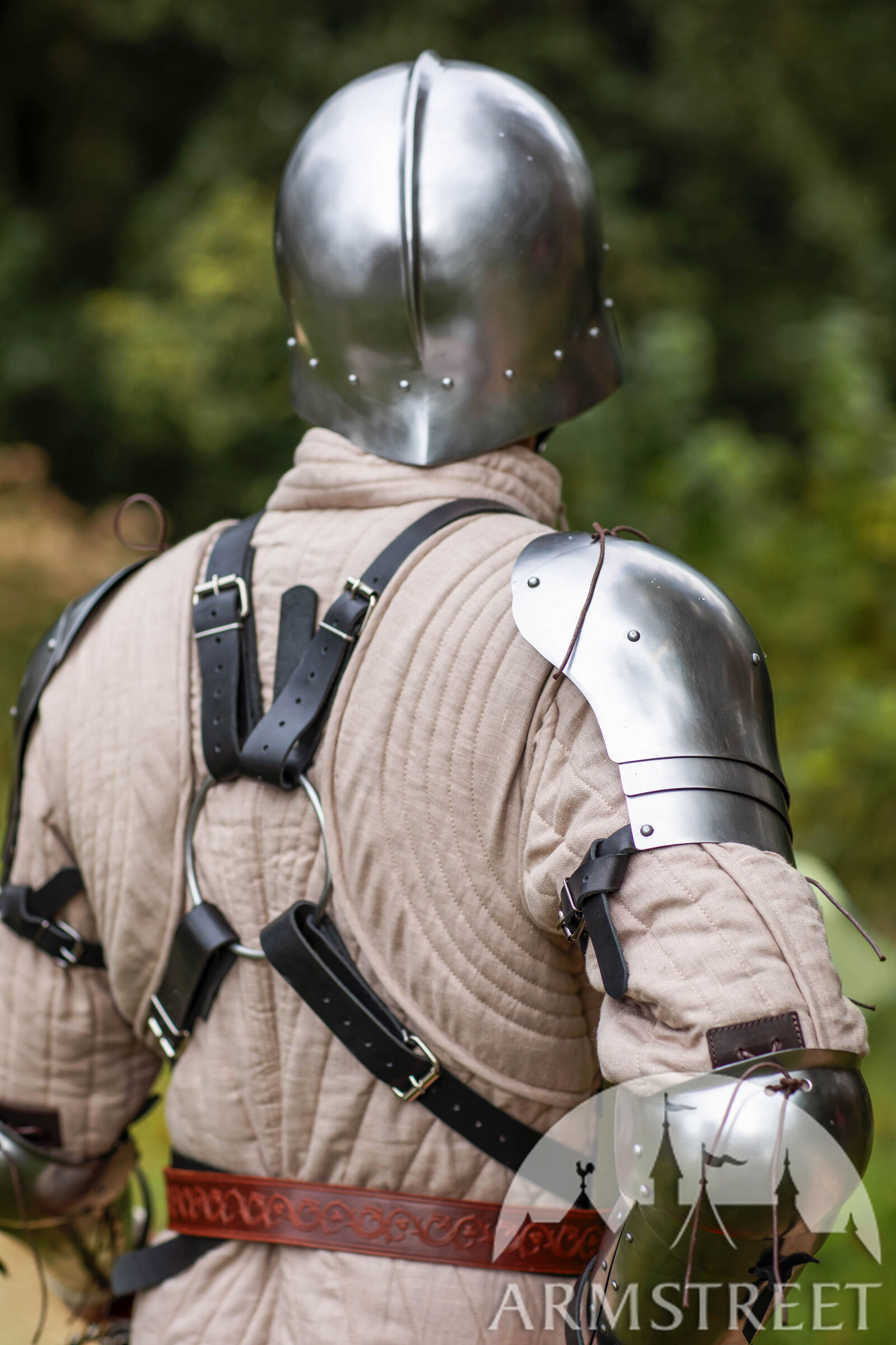 Mittelalterliche Kampfkünste sind naturgemäß gefährlich, und ArmStreet übernimmt keine Haftung für Verletzungen, die sich Personen beim Tragen unserer Rüstungen während solcher Aktivitäten zuziehen. Die Bedeutung von angemessener Ausbildung, Schutzausrüstung, Waffen und sachkundiger Aufsicht bei diesen Aktivitäten kann nicht genug betont werden. Letztendlich tragen sowohl der Träger als auch sein Gegner die Verantwortung für die Sicherheit der Teilnehmer.