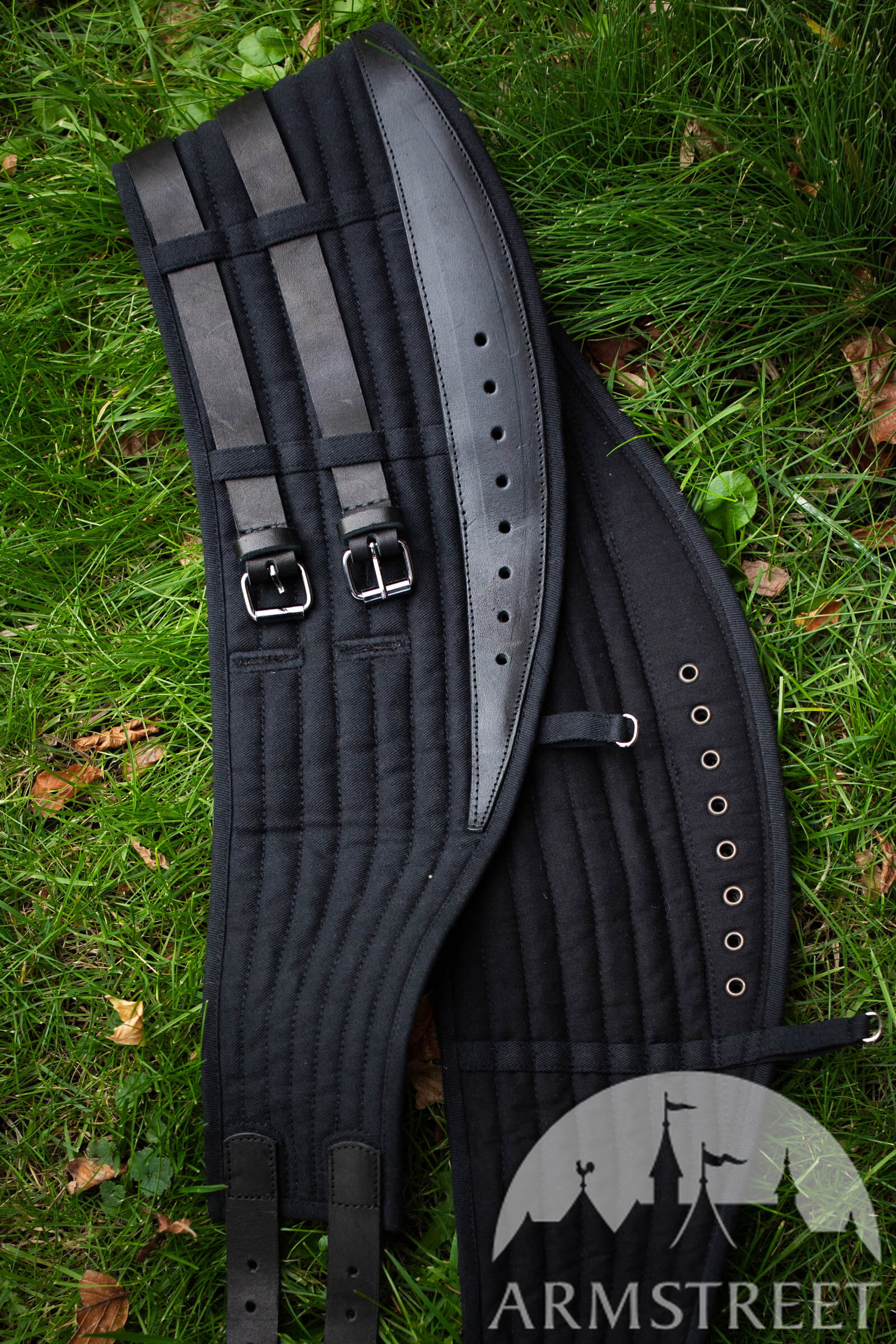 Wir haben dem Design etwas Stil und Funktionalität verliehen und ihn dadurch weniger sperrig, eleganter und anatomisch geformt gestaltet. Vier Riemen ermöglichen die Anpassung an die individuelle Körperform und das Gewicht der Rüstung. Zusätzliche Schnürsenkel sorgen dafür, dass die Befestigungslöcher oder Stützriemen der Beinpanzerung optimal mit dem Gürtel ausgerichtet sind.