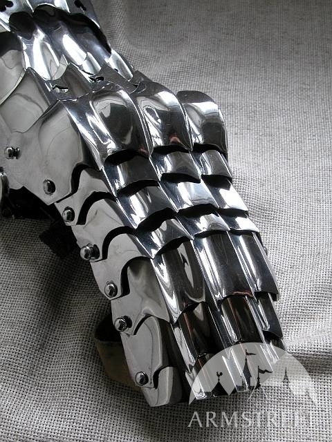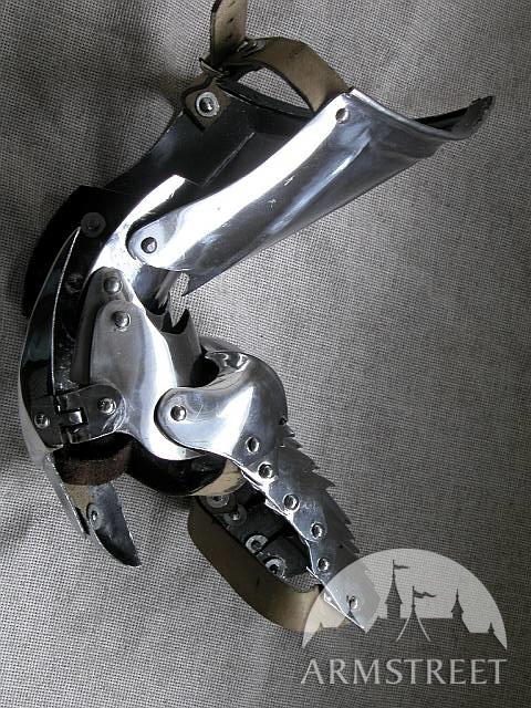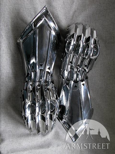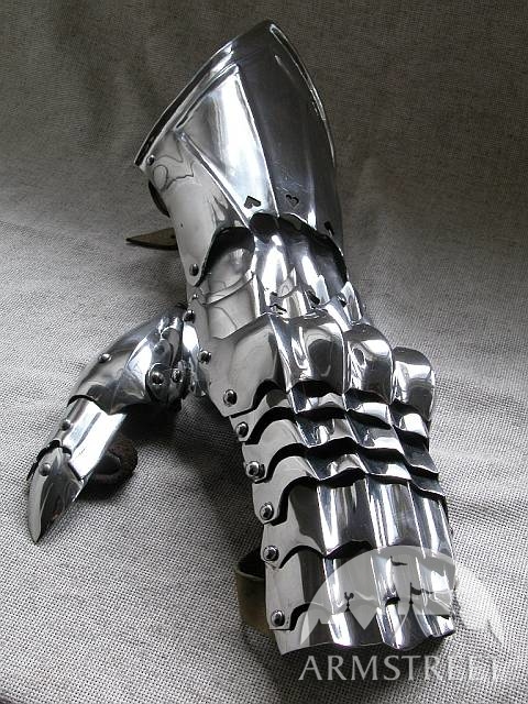 Diese Panzerhandschueh sind aus 1,5 mm starkem, kaltgewalztem Stahl handgefertigt. Sie ähneln den Gotischen Panzerhandschuhe, aber eigentlich ist ein Phantasieentwurf.