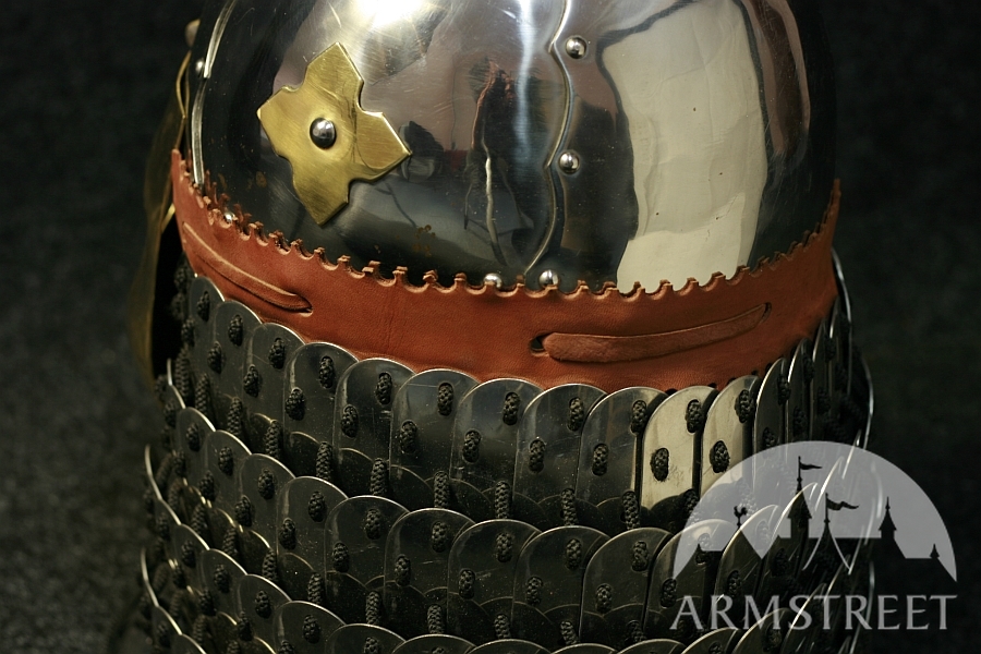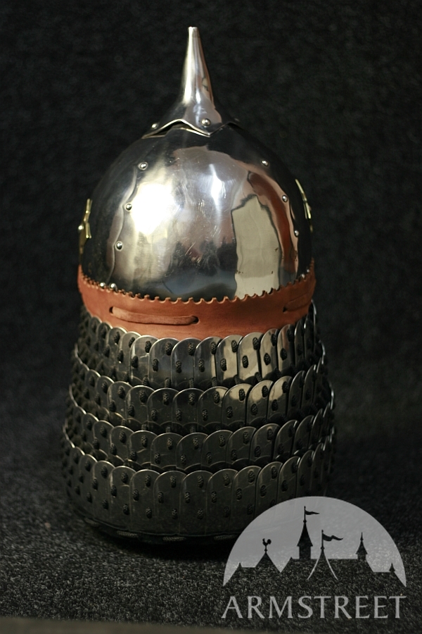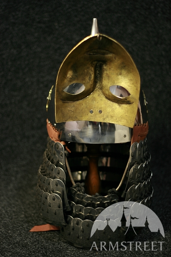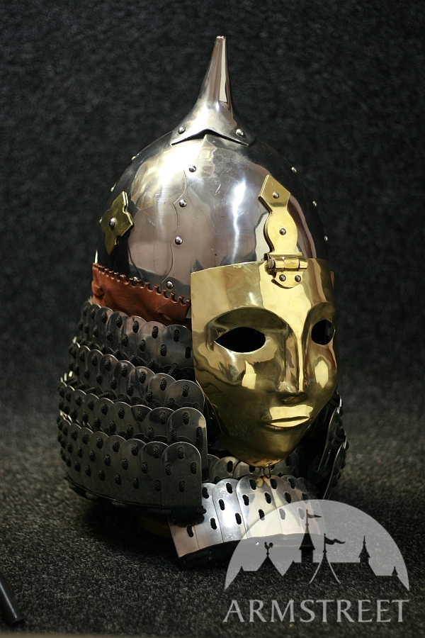 Dieser Helm wird in Übereinstimmung mit dem ursprünglichen, slawischen Design hergestellt. Die Gesichtsmaske entspricht eher den Südnomadischen Masken. Historisch gesehen ist dieser Helm ein Ergebnis des mongolischen Einflusses auf das slawische Rüstungsdesign.