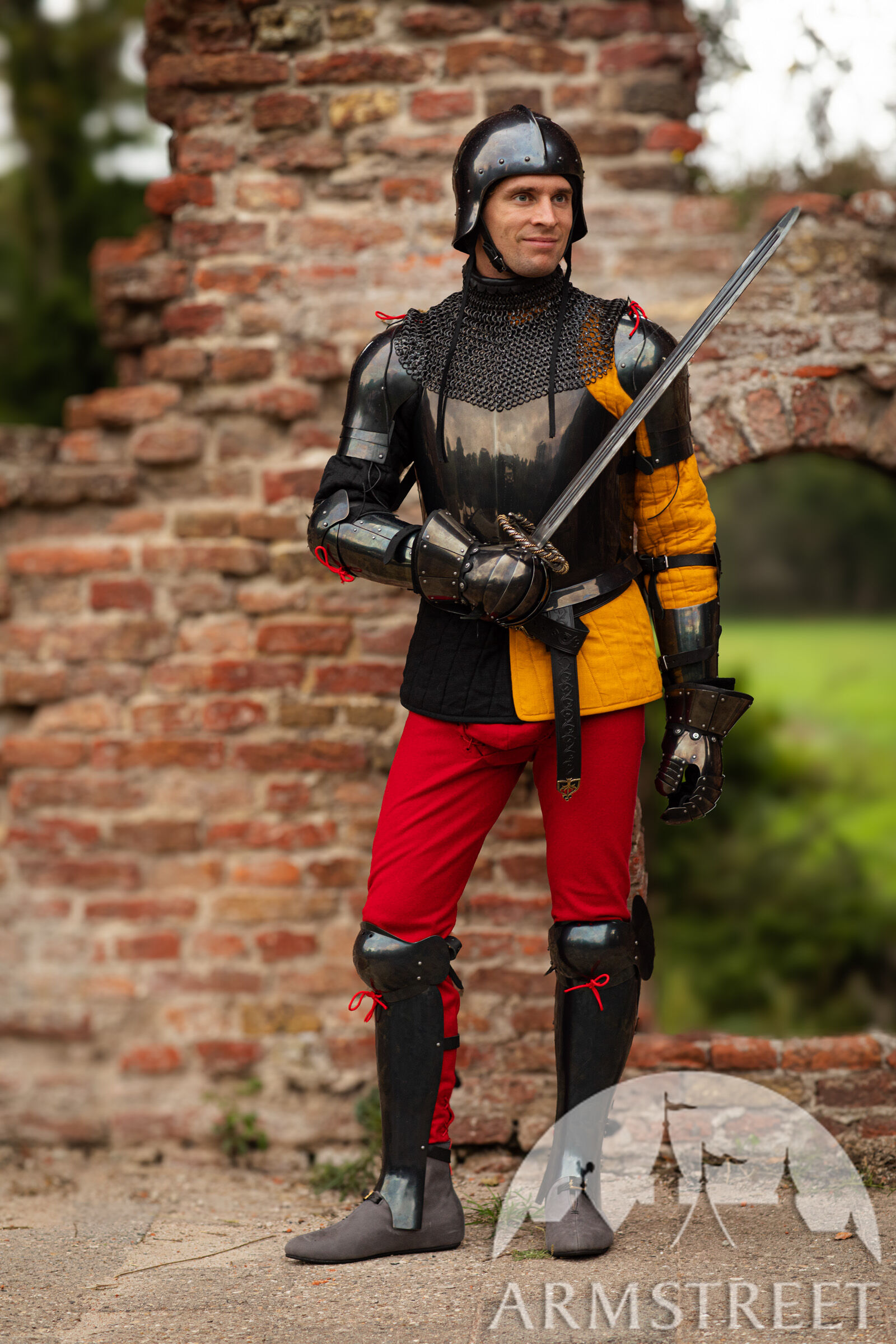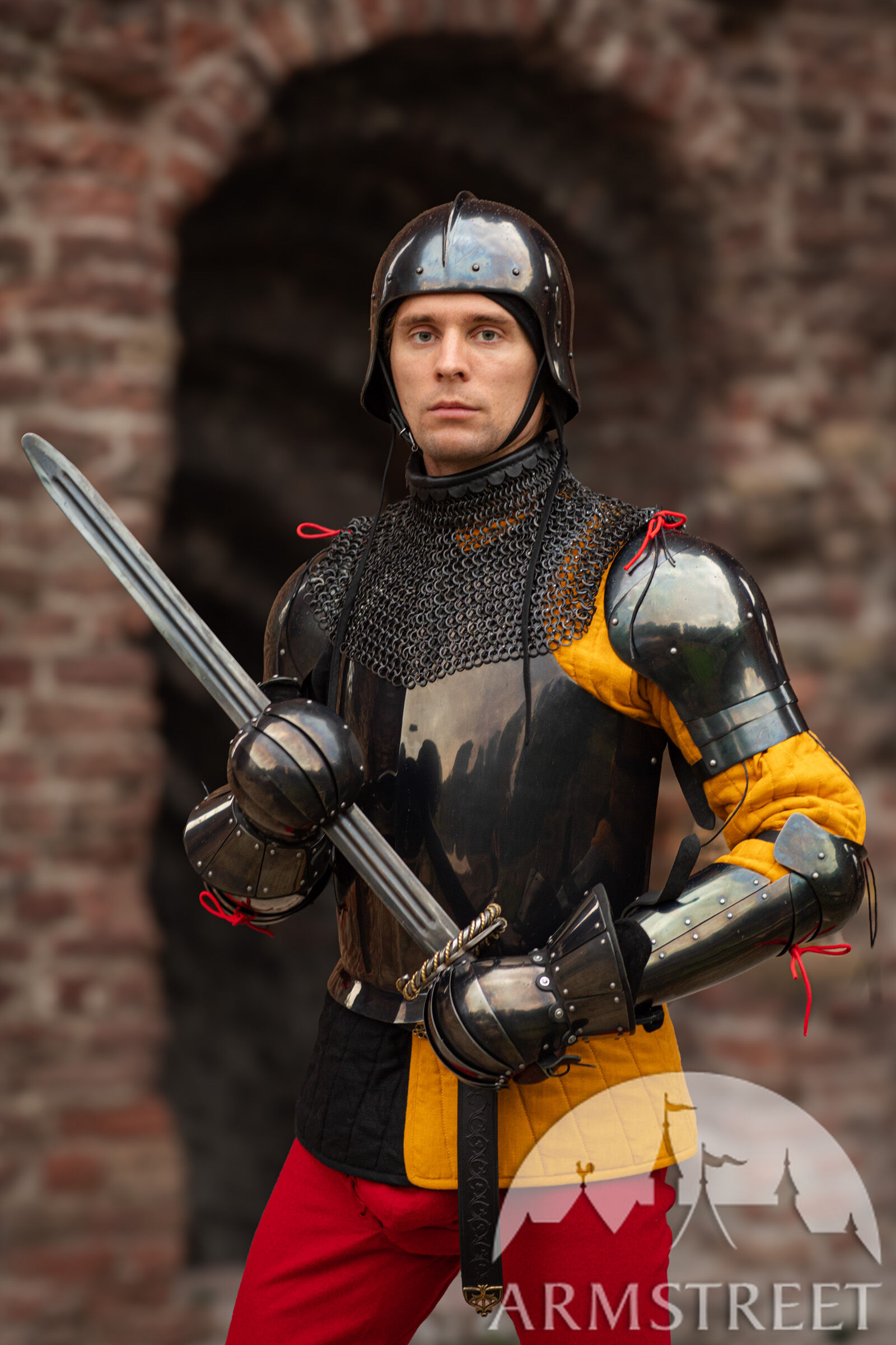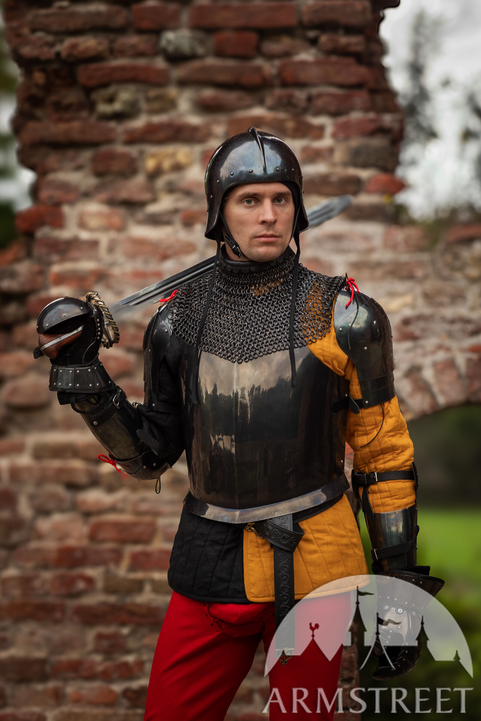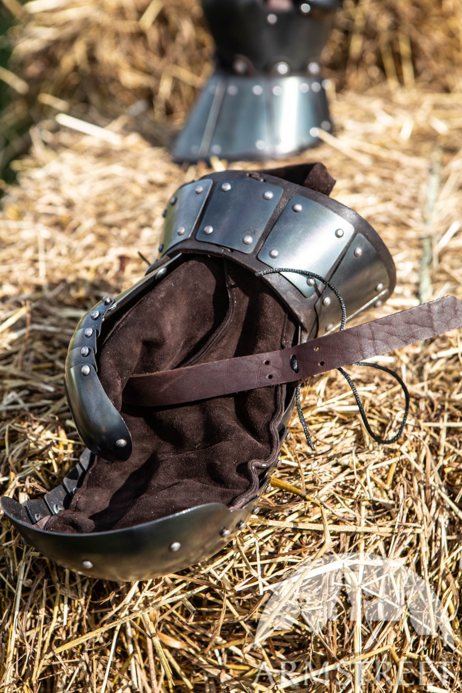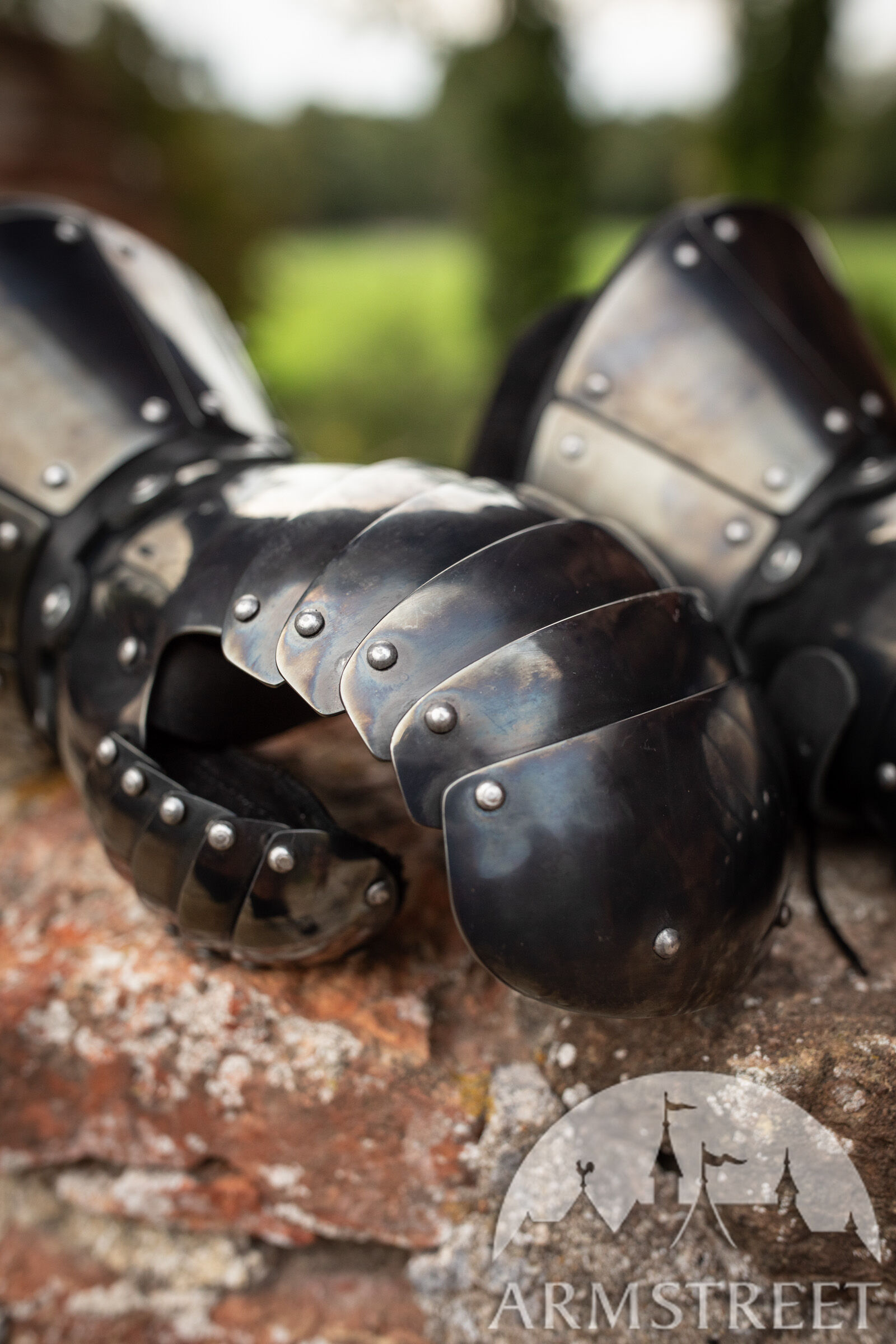 Gute Wahl für Training und mittelalterliche Kämpfe. Dieses ziemlich einfache Design ist typisch für das frühe Mittelalter - im normannischen oder slawischen Stil. Dieses Modell verfügt über eine fortschrittliche Daumenform: Nur eine geringfügig tiefere Bewegung der Fingerspitzen dieser Version führt zu einer geschlossenen Form, die Ihren Daumen vor einem frontalen Schlag schützt. Wenn Sie zuverlässige Turnier- oder Trainingshandschuhe benötigen, ist dieses Paar die perfekte Wahl. Als einer der Bestseller in dieser Kategorie lieferte die Anzahl der von ArmStreet verkauften Lamellenpanzer Handschuhen eine Menge wertvoller Rückmeldungen von Kämpfern aus aller Welt, die jahrelanger Benutzererfahrung entsprachen. Dies trägt zur ständigen Verbesserung von Funktionalität und Ergonomie bei.