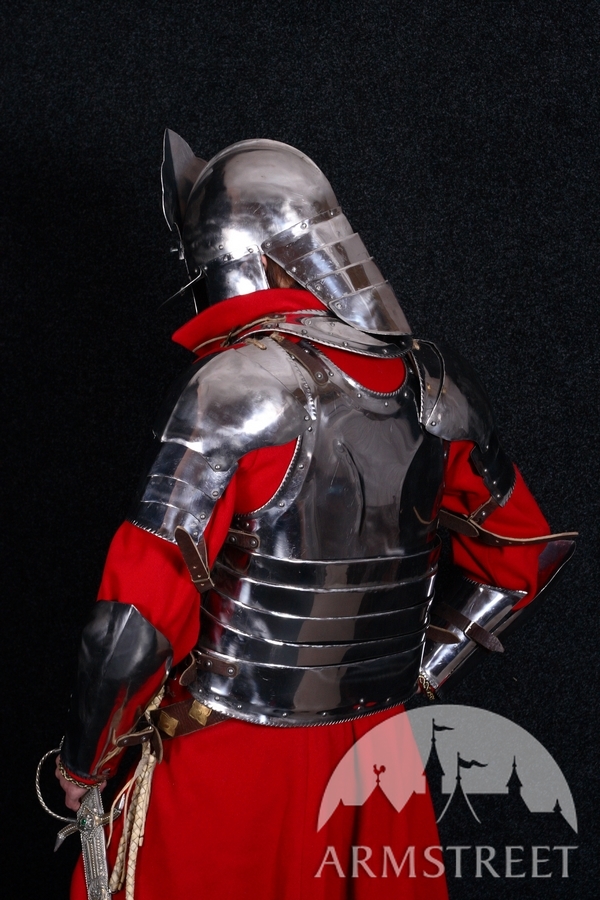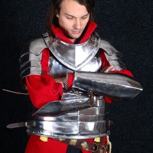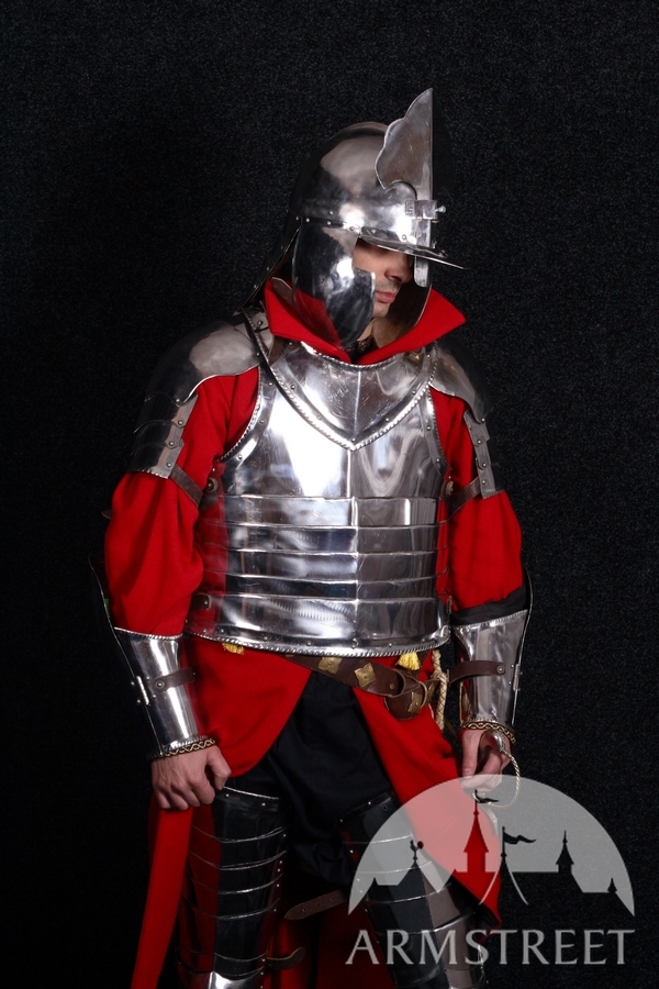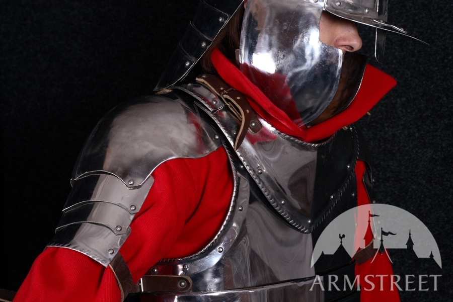 Unsere Rüstungen sind ausschließlich handgefertigt. Wir verwenden keine modernen, mechanischen Prozesse in der Fertigung. Jedes Detail der Rüstung wird aus Flachstahl Stück komplett handgefertigt und auch von Hand poliert. Das Ergebnis ist eine Rüstung, die dem historischen Prototyp sehr nahe kommt.