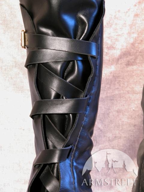 Dieser Stiefel ist ein Artikel unserer neuen, mittelalterlichen Fantasie-Schuh-Kollektion. Er wurde von uns zunächst für unsere eigenen Zwecke entworfen. Dieser Stiefel ist multifunktionell, sehr bequem und optisch sehr ansprechend. Er wird aus 100% echtem Leder hergestellt, und passt sich der Form der Beine wie ein Handschuh an. Es kann mit oder ohne Absatz gemacht werden.