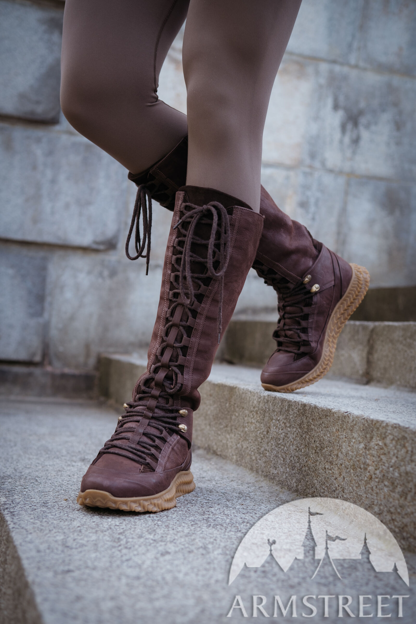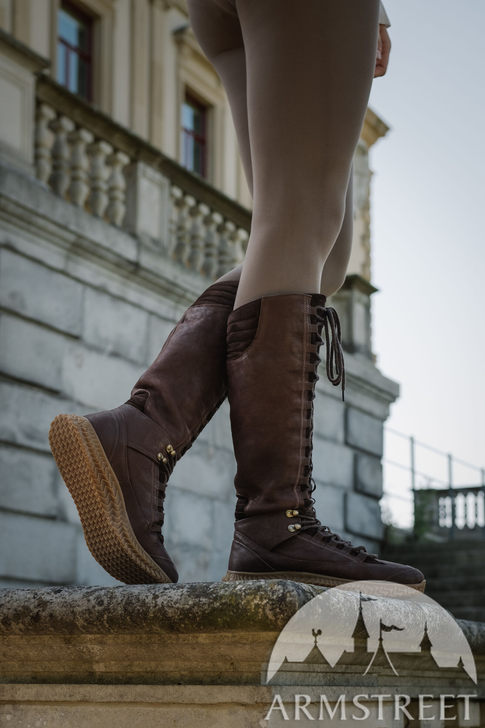Hohe Schwertkampf Stiefel für Damen „Drachen”, Heritage Edition für WMA zum Verkauf. Vorhanden in: mattes braunes leder, mattes schwarzes leder :: im mittelalter Shop ArmStreet