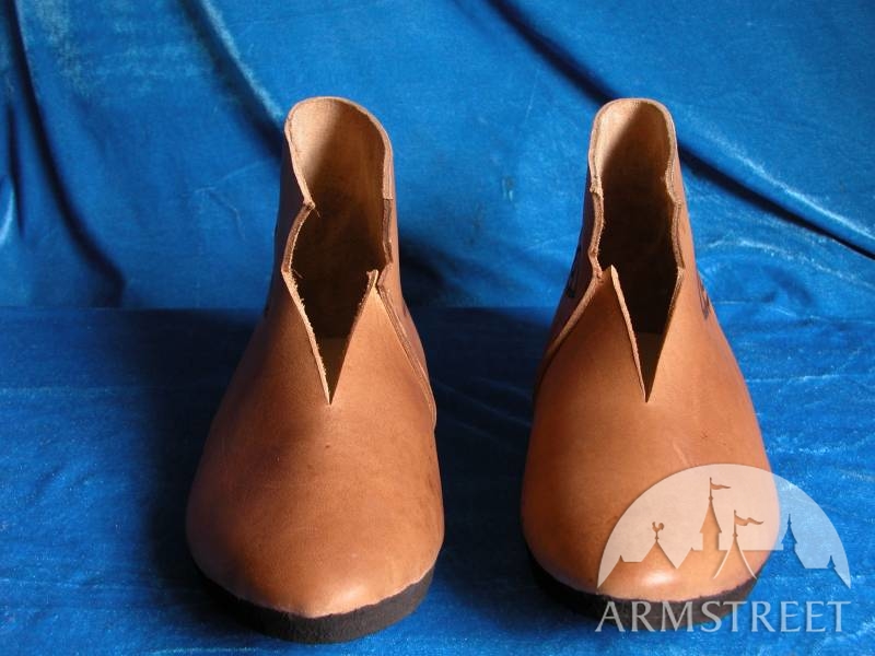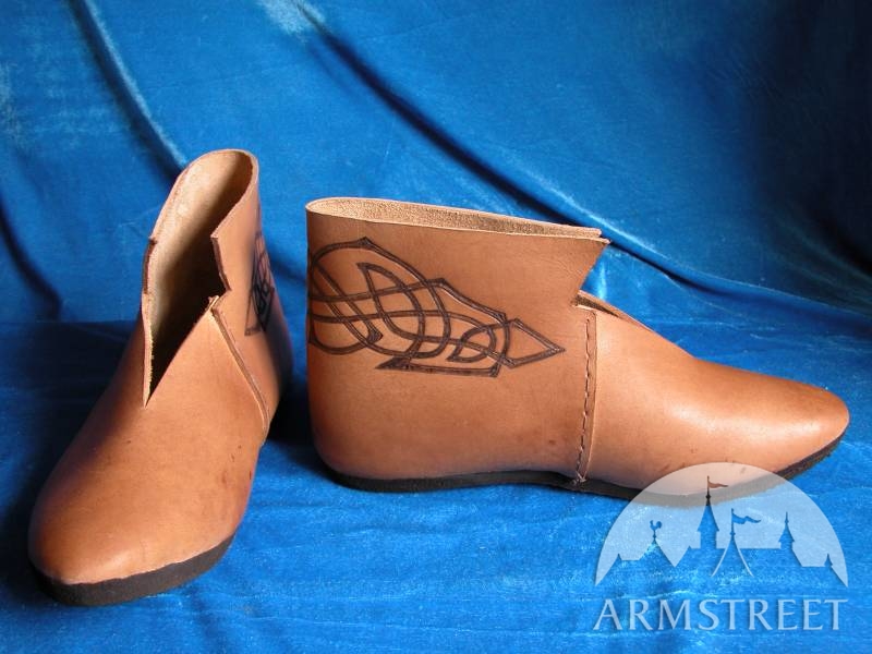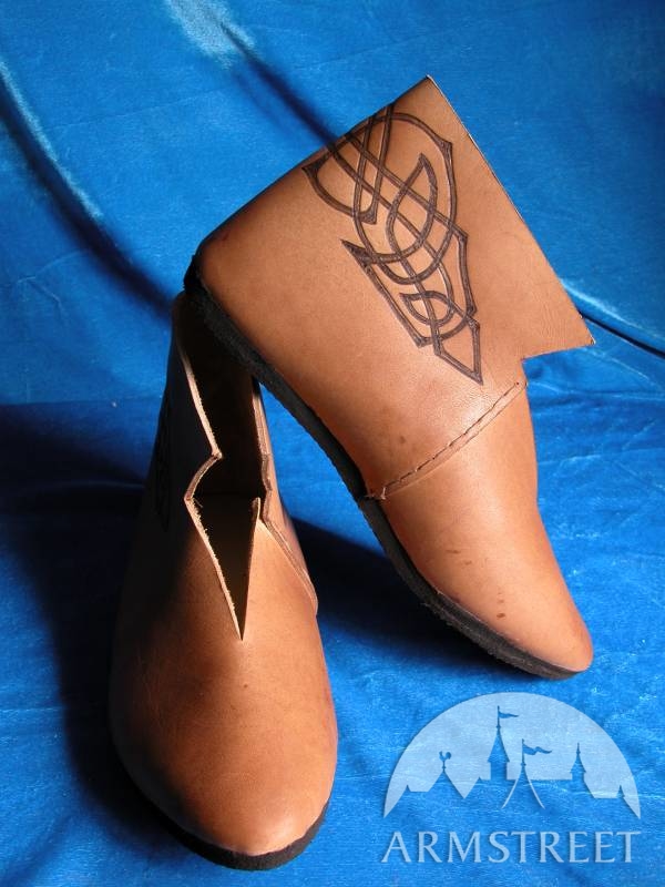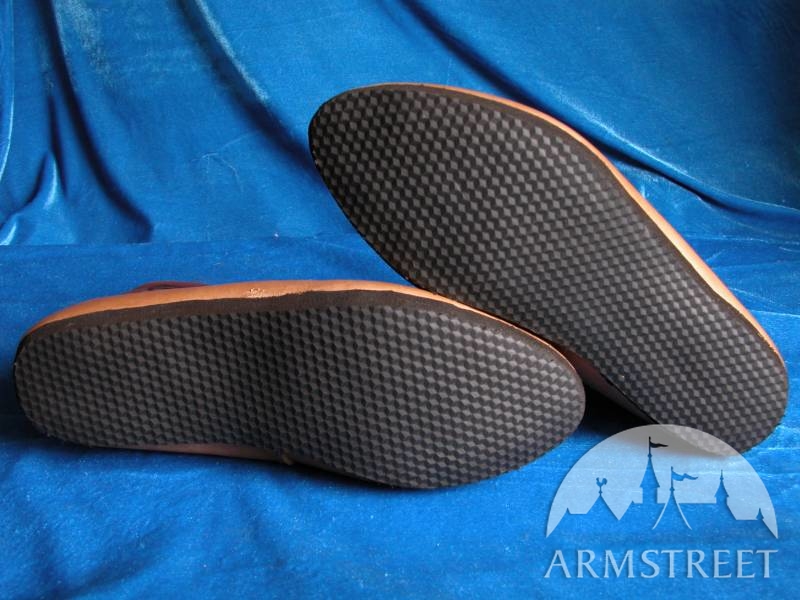 Diese Schuhe sind eine hervorragende Ergänzung zu jedem mittelalterlichen Kostüm oder Gewand. Sie werden in Übereinstimmung mit den ursprünglichen Vorlagen gefertigt. Die Originale wurden im Jahr 1994 bei „Rurikovo gorodische“, Novgorod, einer der ältesten und stärksten Zitadellen Nordeuropas, gefunden.